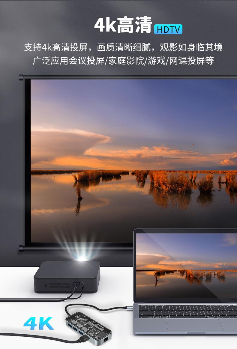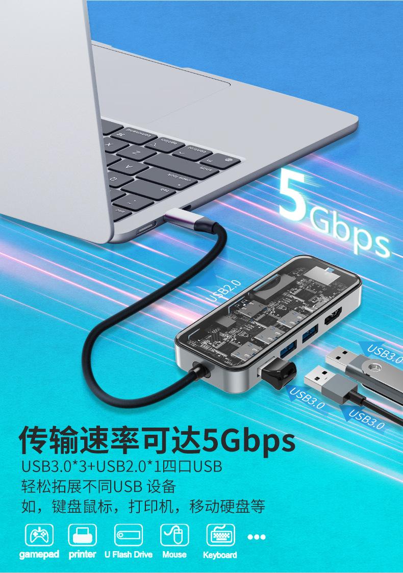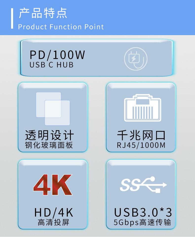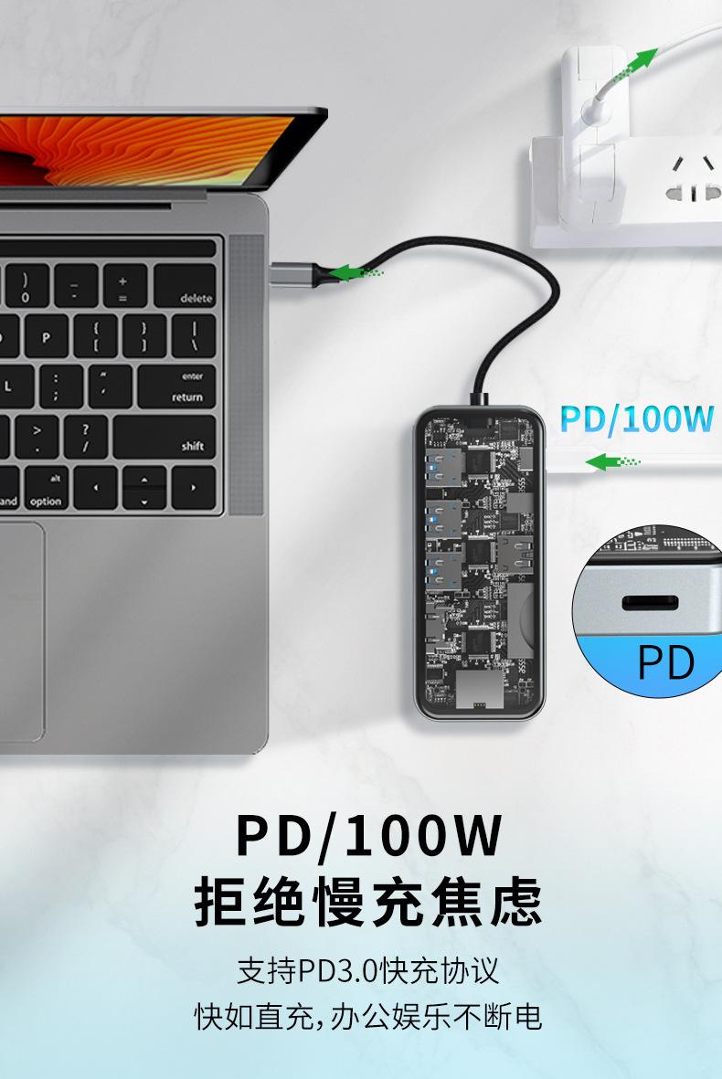 Vidrio Templado Transparente Laptop Tipo C Pd100W HDMI Gigabit Rj45 Tarjeta de Red Estación de Acoplamiento
