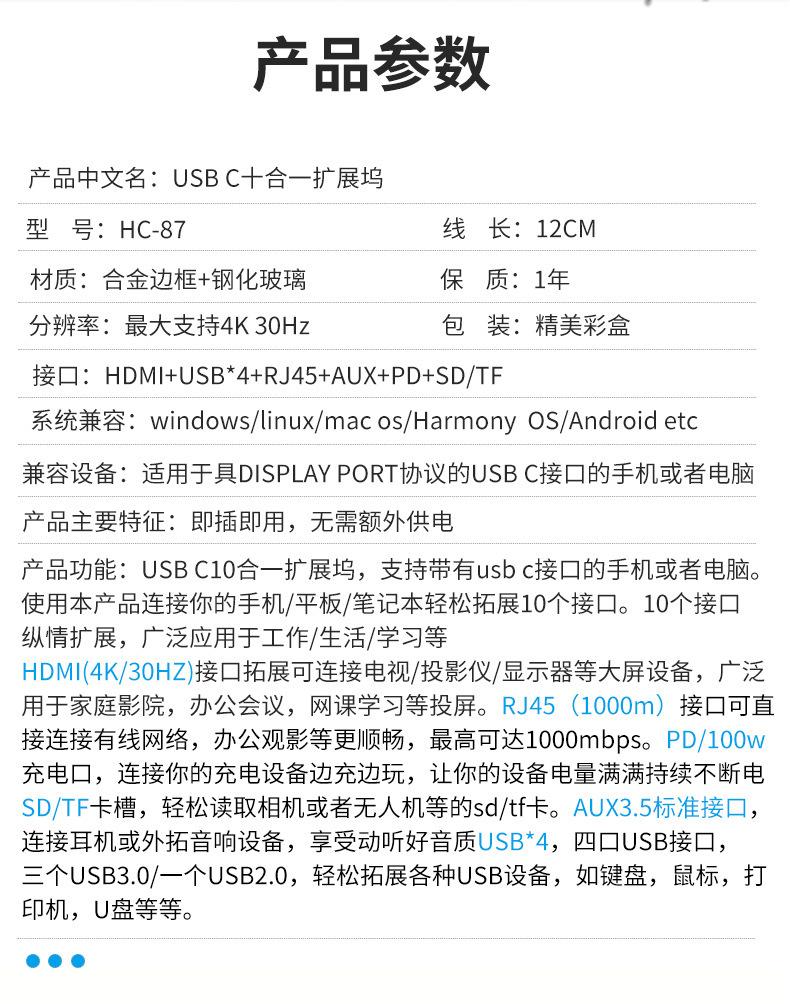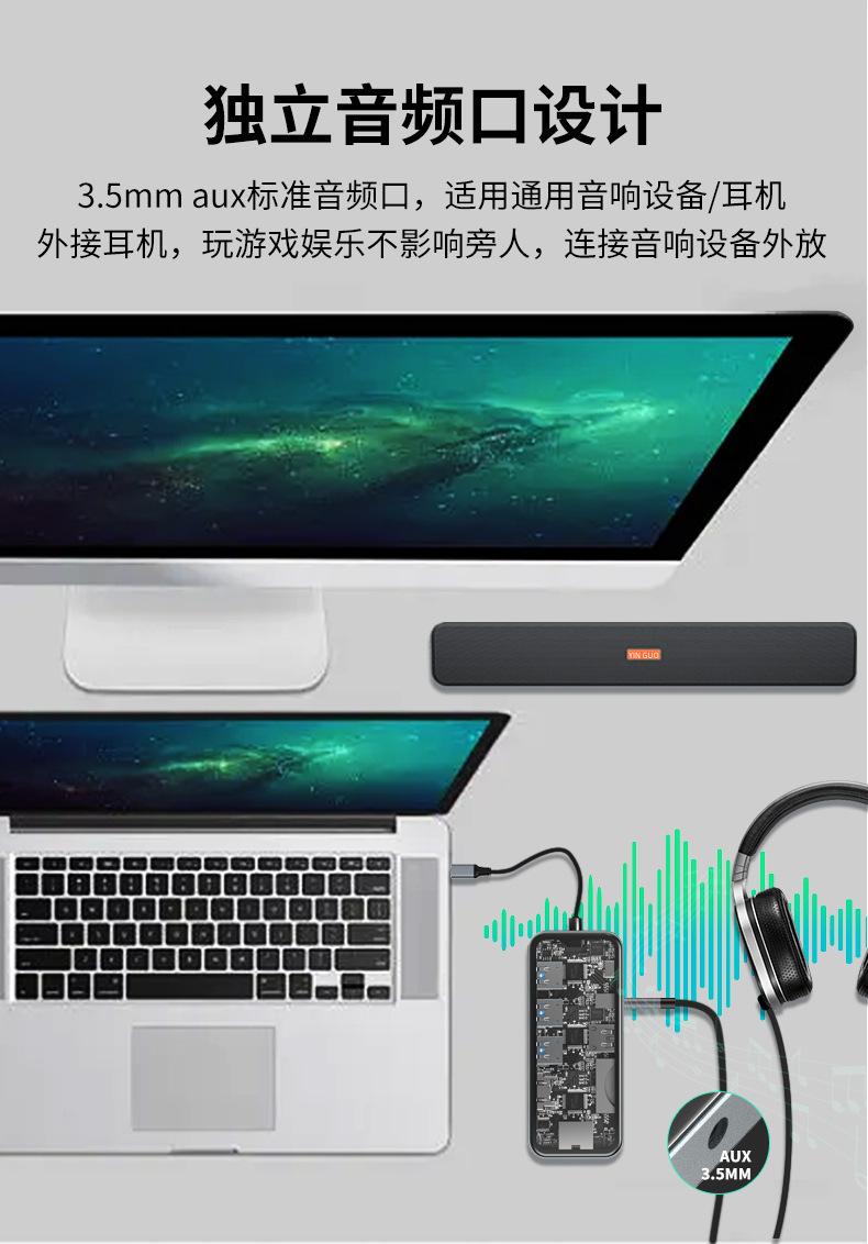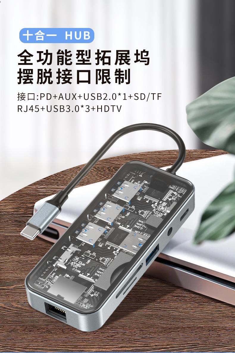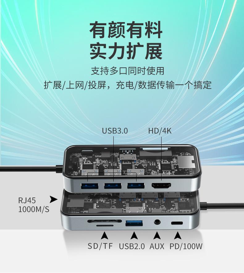 Vidrio Templado Transparente Laptop Tipo C Pd100W HDMI Gigabit Rj45 Tarjeta de Red Estación de Acoplamiento