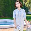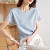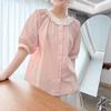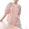2025 Nuevo Estilo de Verano Encaje Empalmado Casual Reductor de Edad Elegante Cuello Redondo Manga Corta Camisa para Mujer Holgada con Aspecto Adelgazante Top