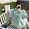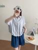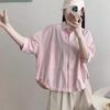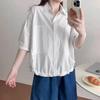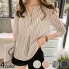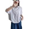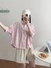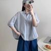Verano Nuevo Estilo Coreano Suelto Adelgazante Solapa Rayada Camisa de Mujer Dobladillo Cordón Camisa Casual Tops Venta al por Mayor