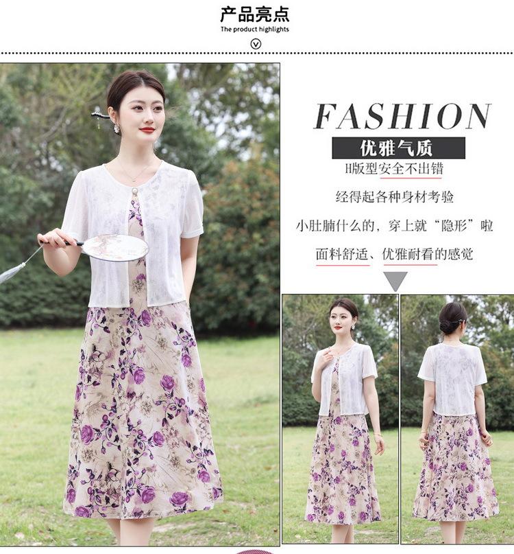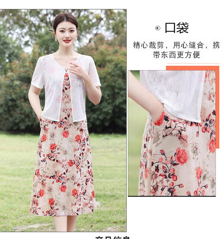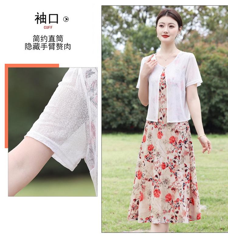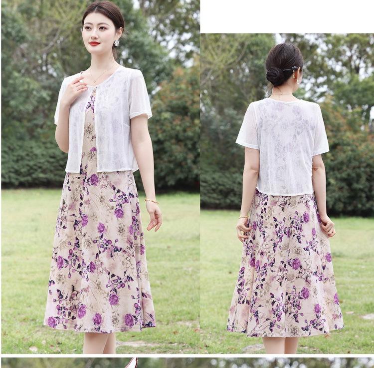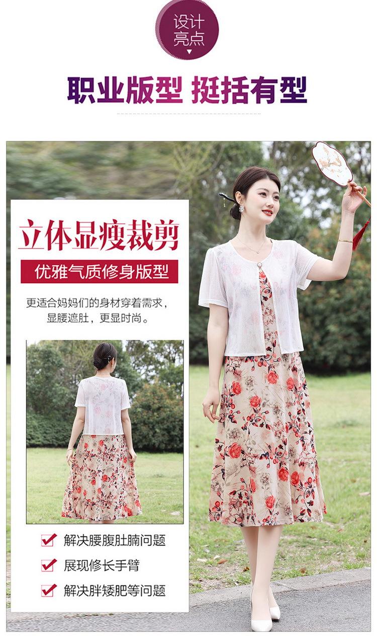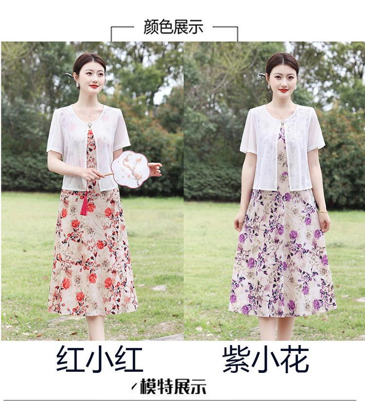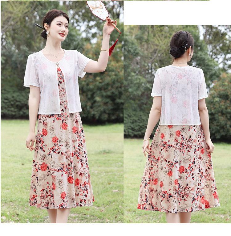 Vestido elegante de dos piezas falsas de alta gama para mujer, nueva moda de verano 2025, falda adelgazante para madres de mediana edad y mayores, que reduce la edad
