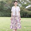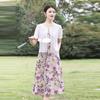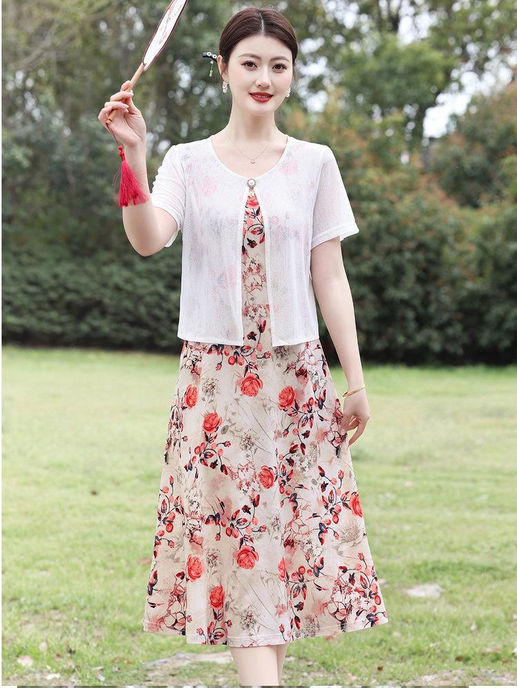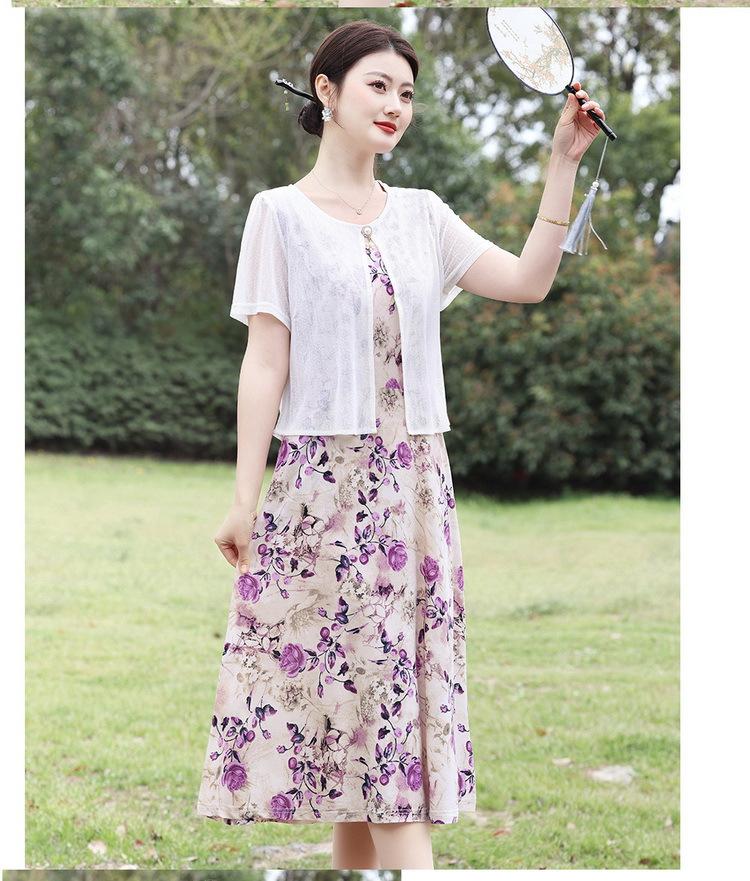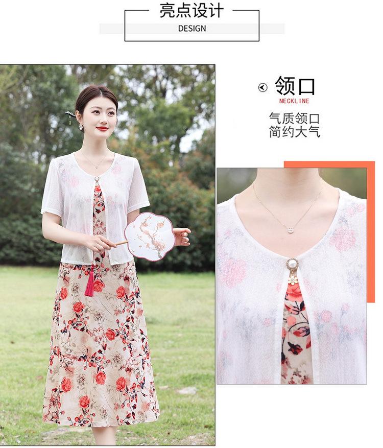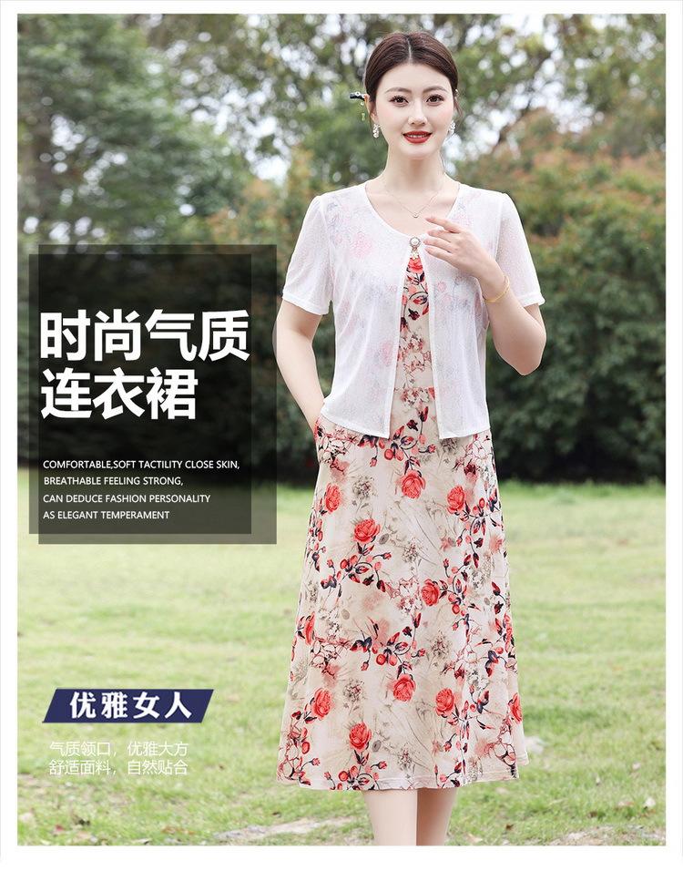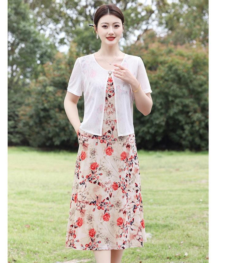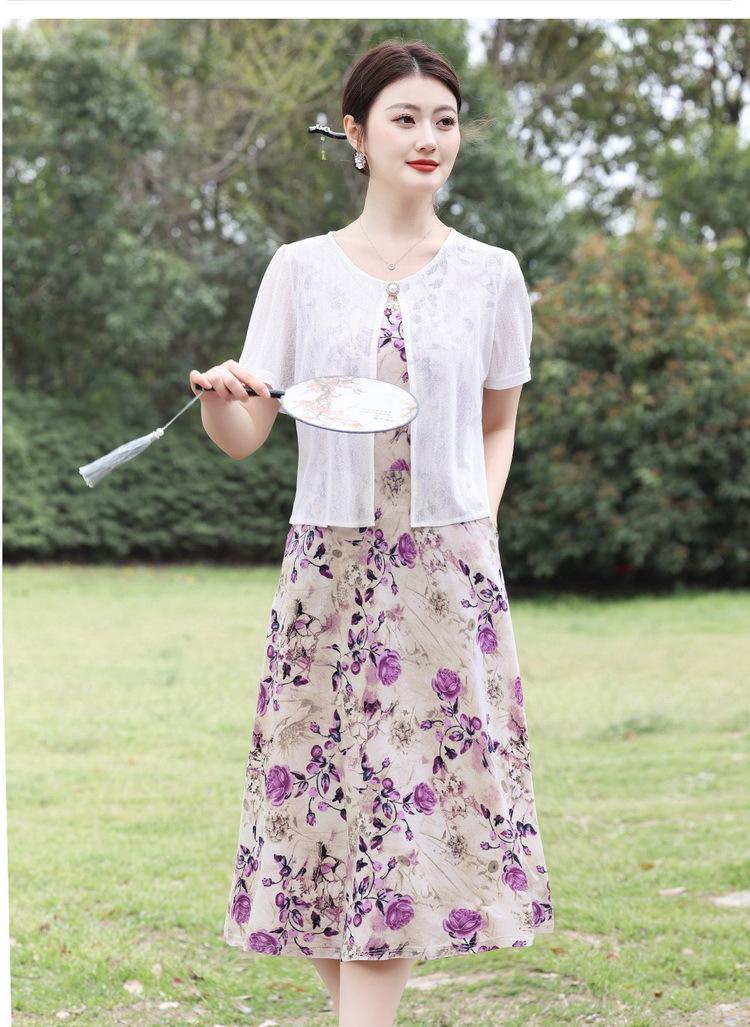 Vestido elegante de dos piezas falsas de alta gama para mujer, nueva moda de verano 2025, falda adelgazante para madres de mediana edad y mayores, que reduce la edad
