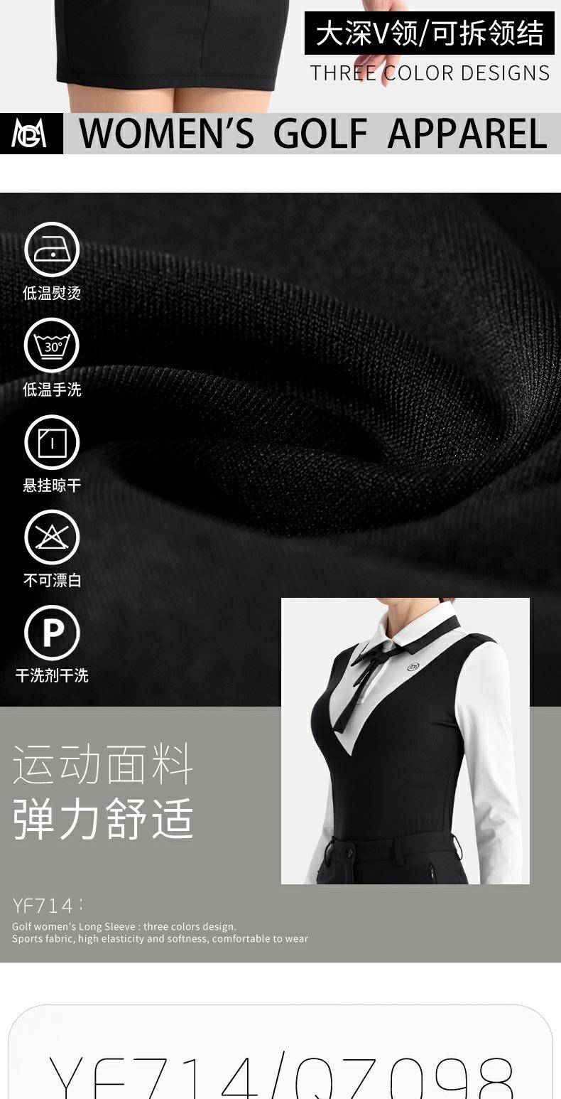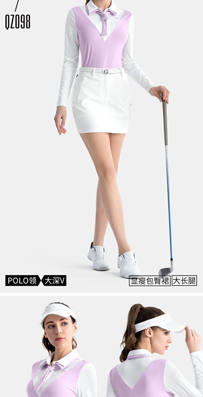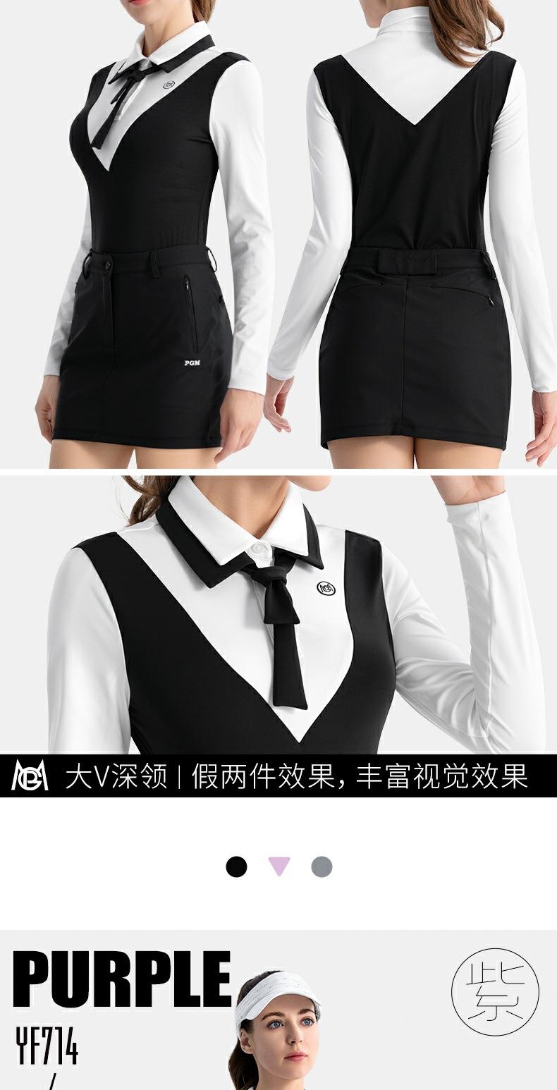 Ropa de Golf PGM Camiseta de Mujer Top POLO de Alta Elasticidad Manga Larga Cuello en V Profundo Falda de Cadera Deportivo para Mujer T