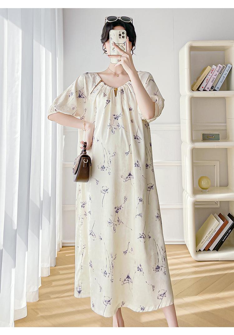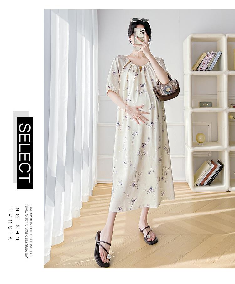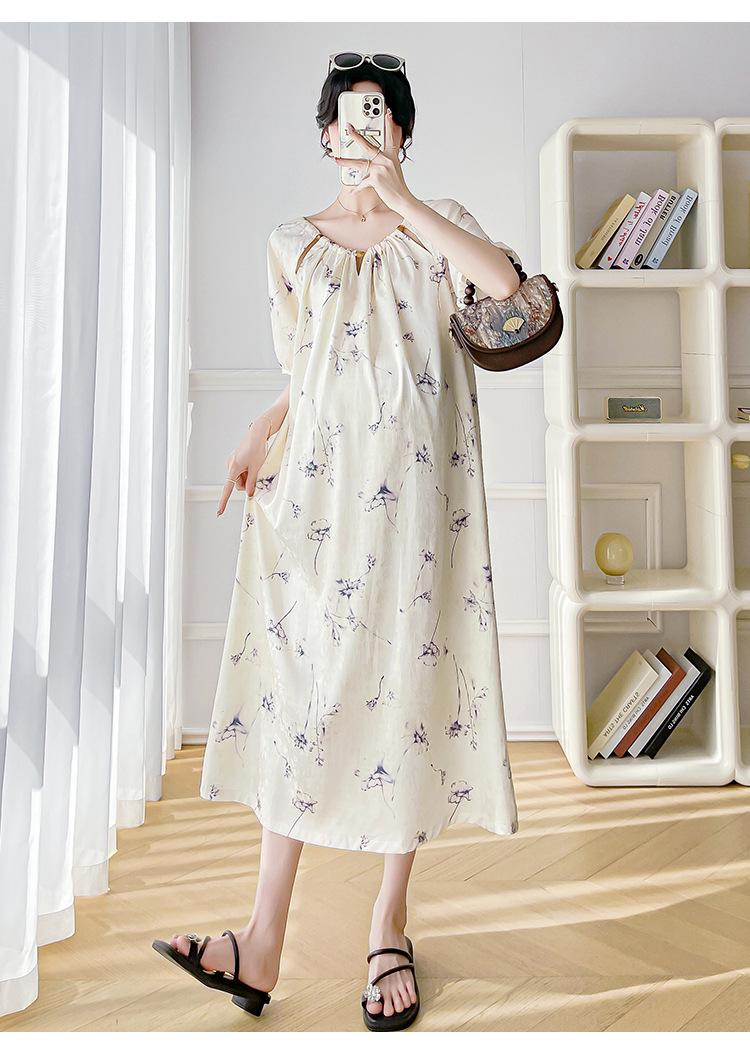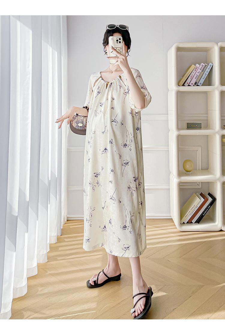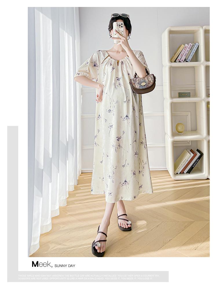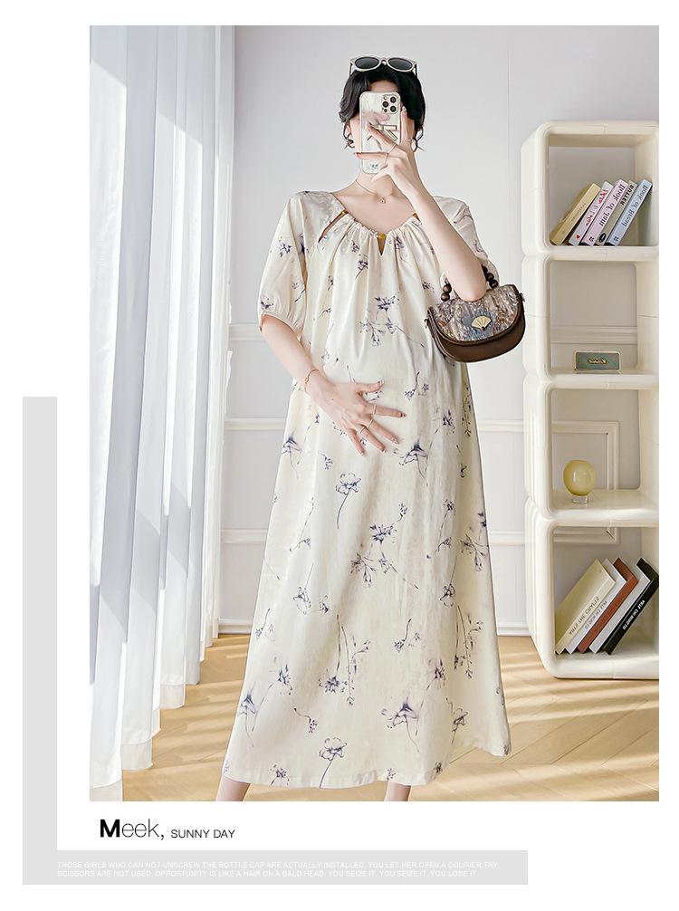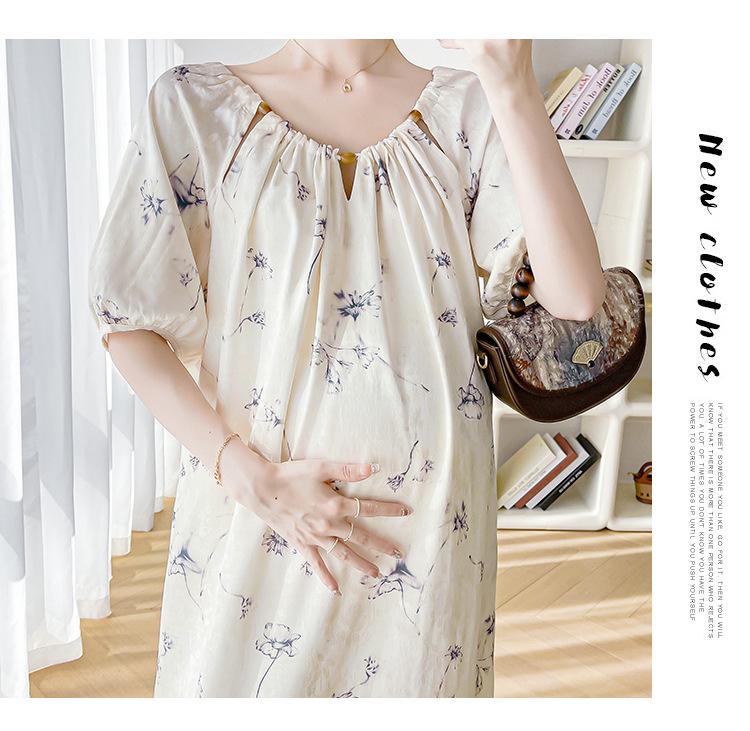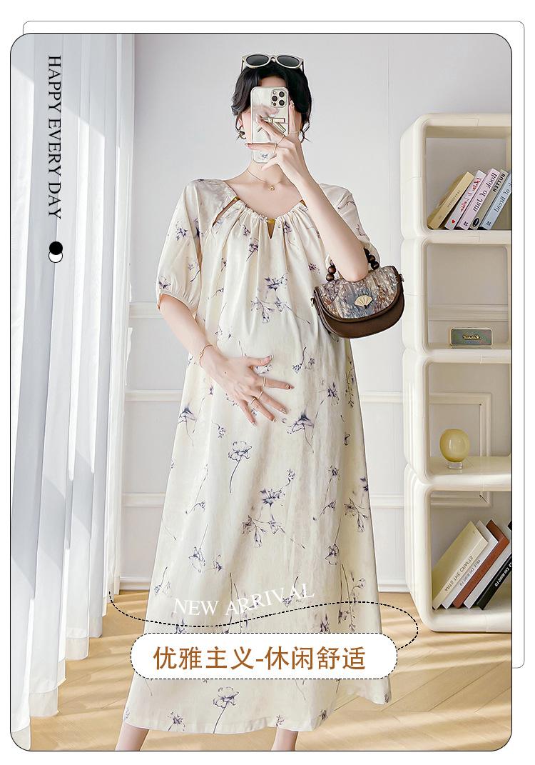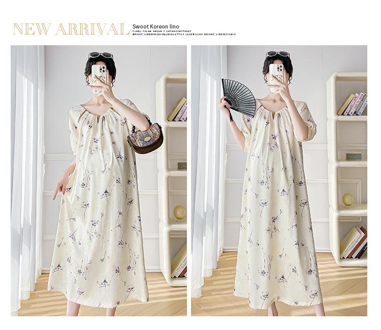 Ropa de Maternidad 2025 Nuevo Estilo de Verano Dulce y Respetuoso con la Piel Estampado Suelto Floral Estilo Bosque Vestido de Maternidad