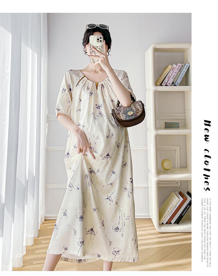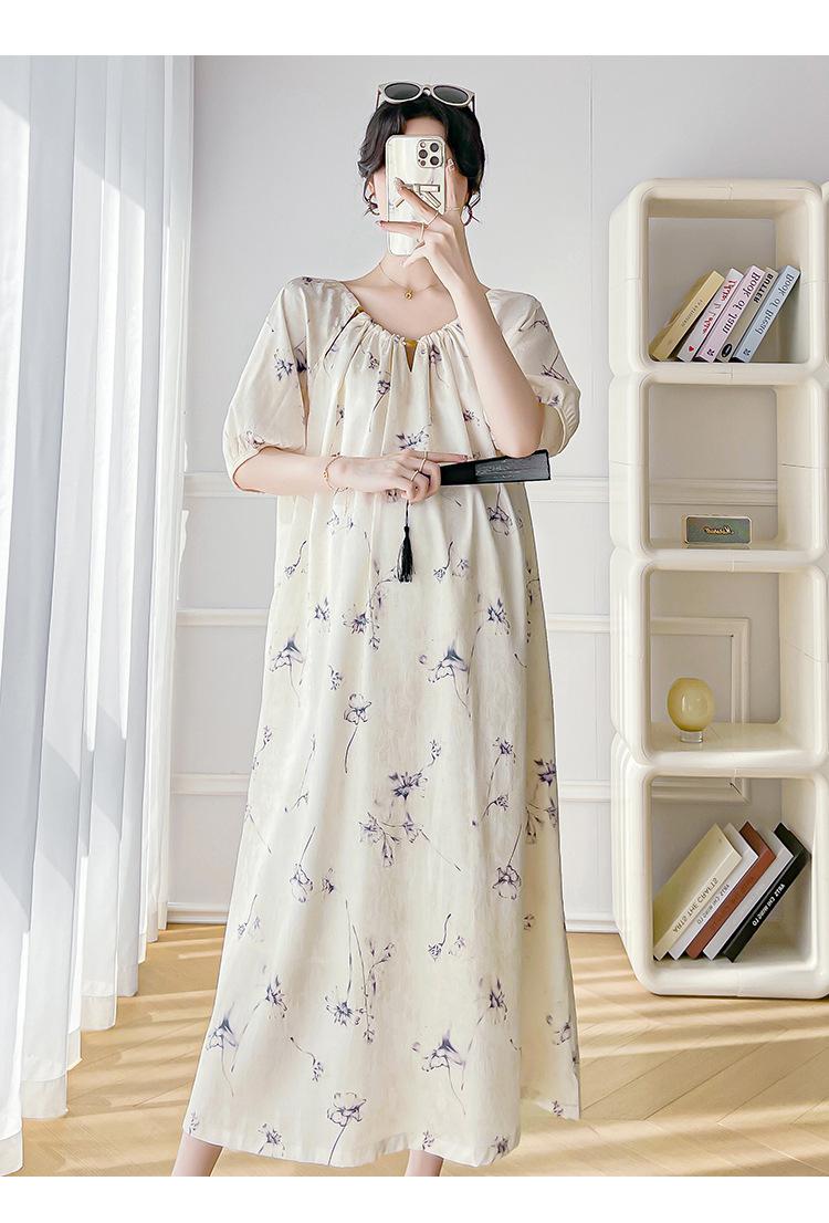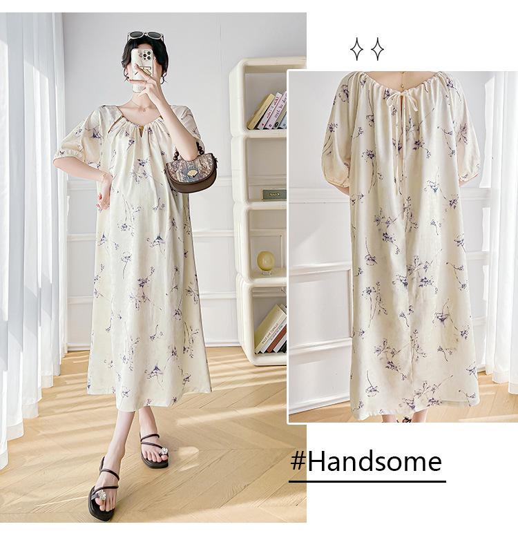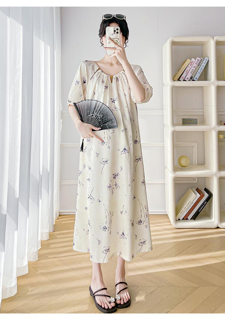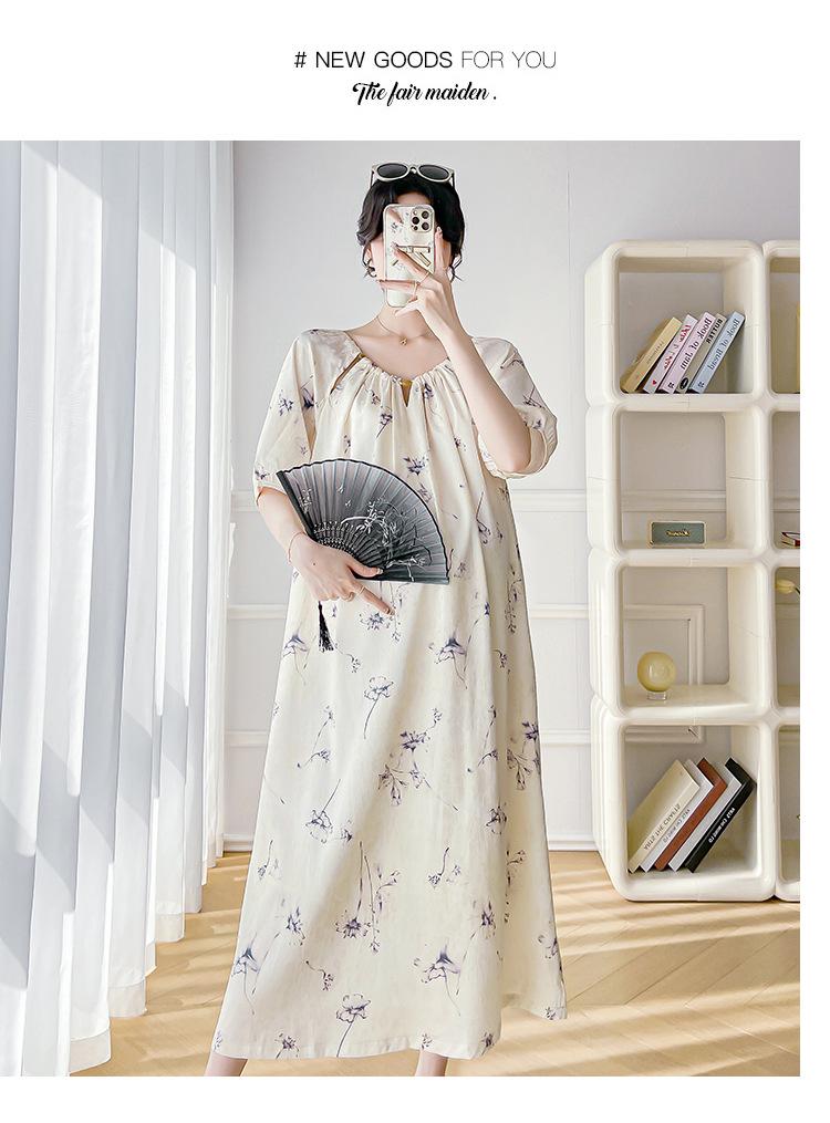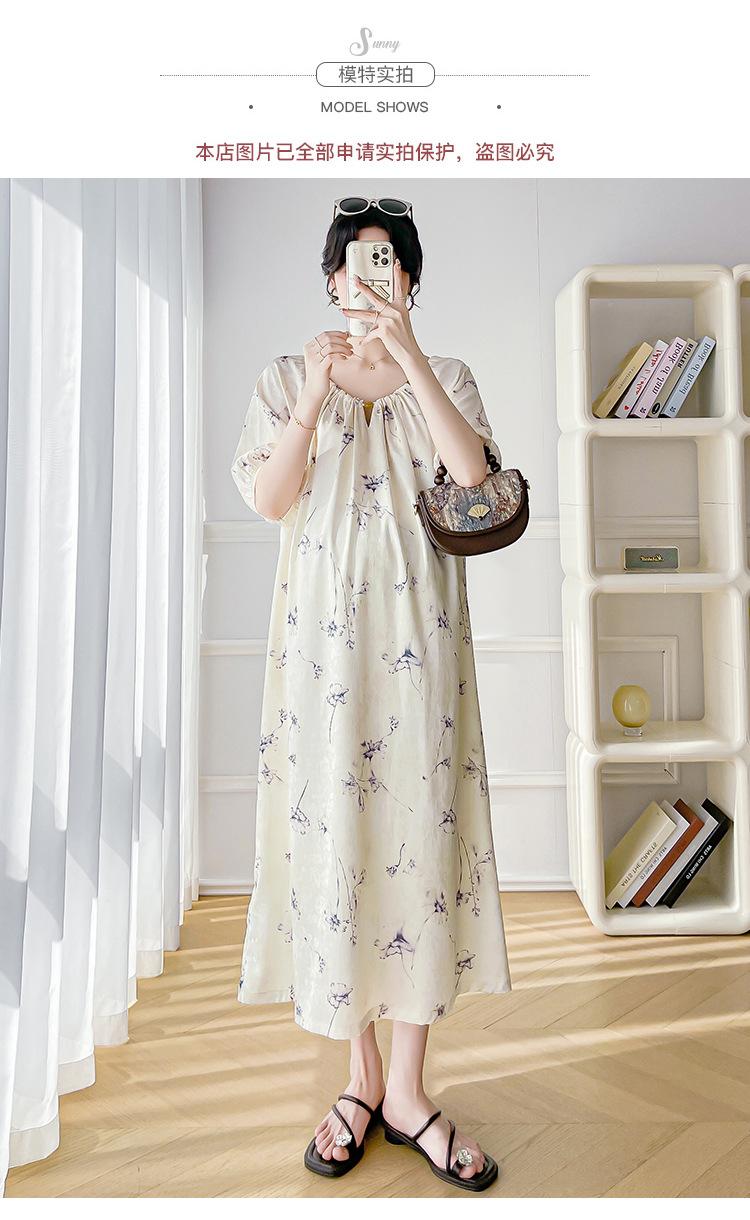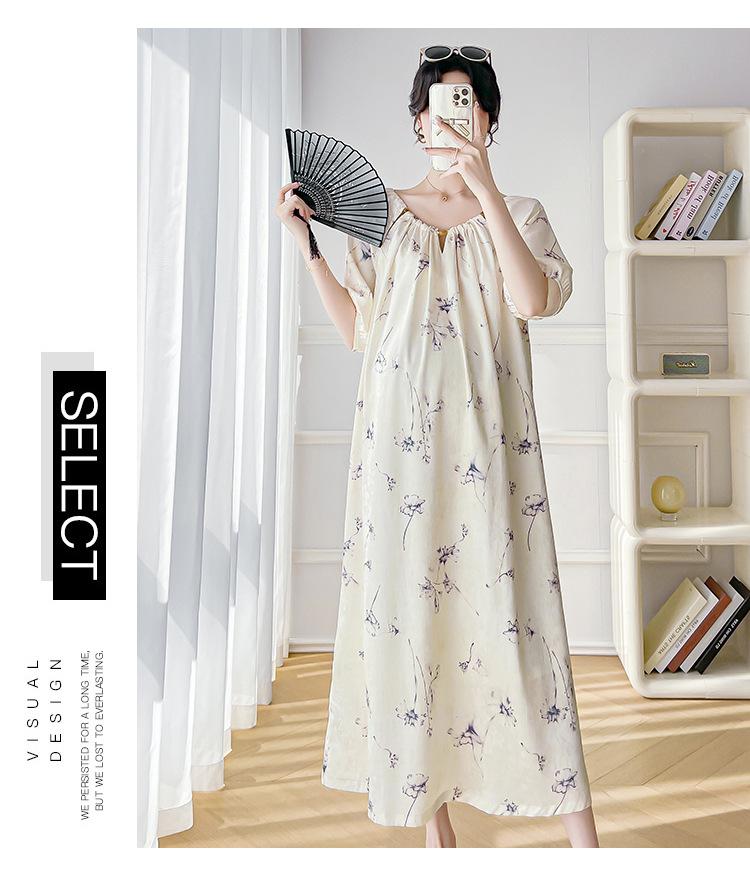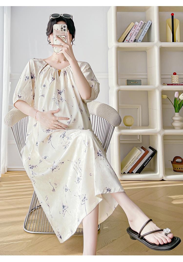 Ropa de Maternidad 2025 Nuevo Estilo de Verano Dulce y Respetuoso con la Piel Estampado Suelto Floral Estilo Bosque Vestido de Maternidad
