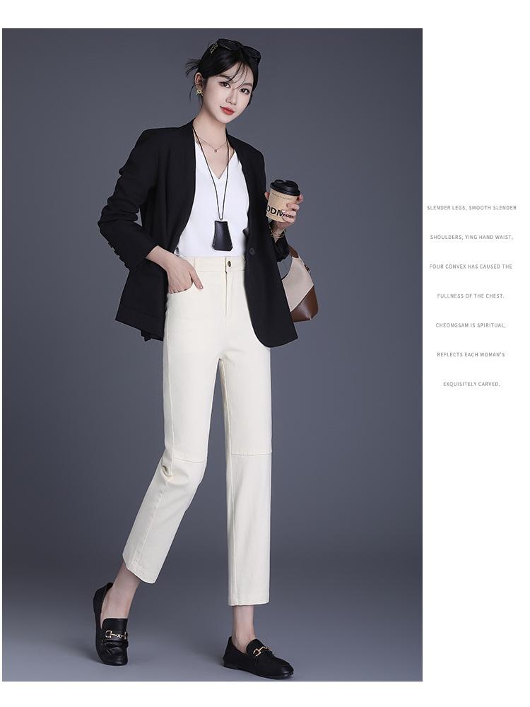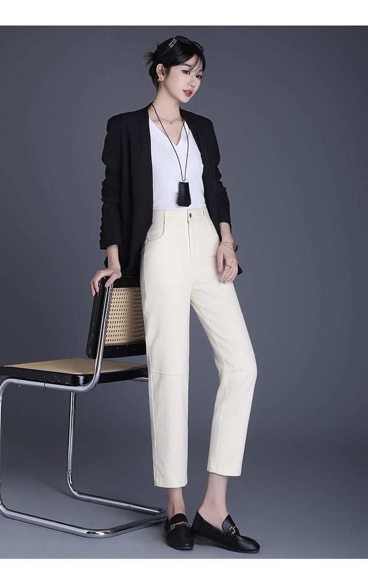 Pantalones de pierna con cintura elástica, pantalones Haren rectos, pantalones tobilleros ajustados para mujer, primavera y otoño 2025, nuevos