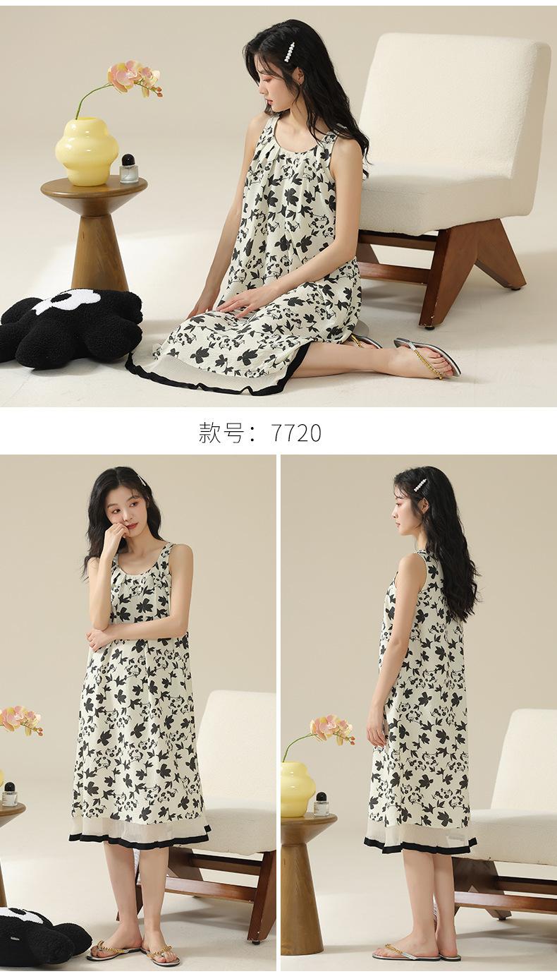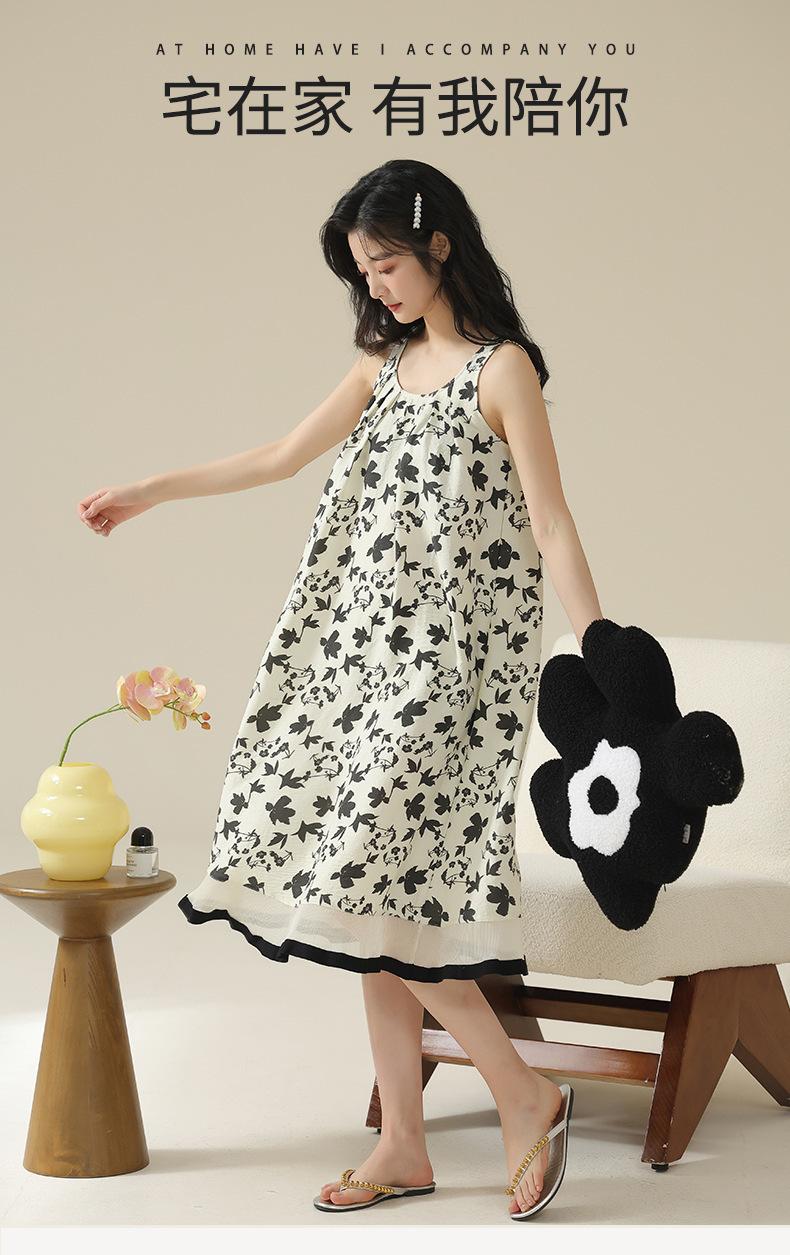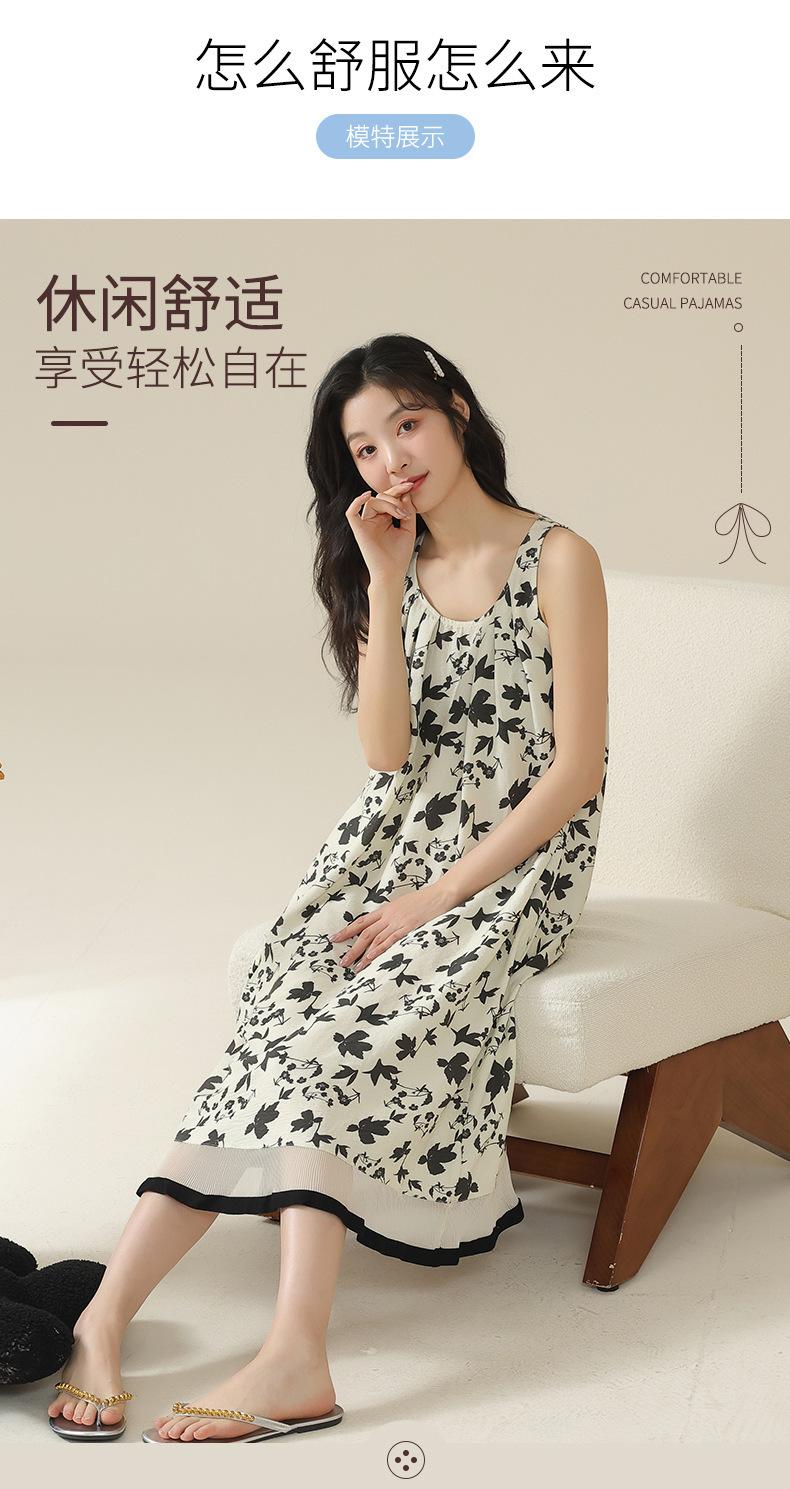 Camisón Floral para Mujer Verano Algodón Nube Fresco Pijama de Alta Gama Vestido de Verano para Mujer con Almohadillas para el Busto