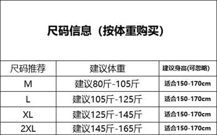 M【recommendation 40-52.5kg】, L【recommendation 52.5-62.5kg】, Xl [recommended 62.5-72.5kg ], 2xl [recommended 72.5-82.5kg ]
