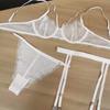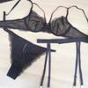 Ropa Interior Estilo Francés Pecho Grande Pequeño Aros de Acero Delgados Push-up Productos Sexy Encaje Traje de Sujetador Conjunto de Tres Piezas
