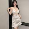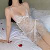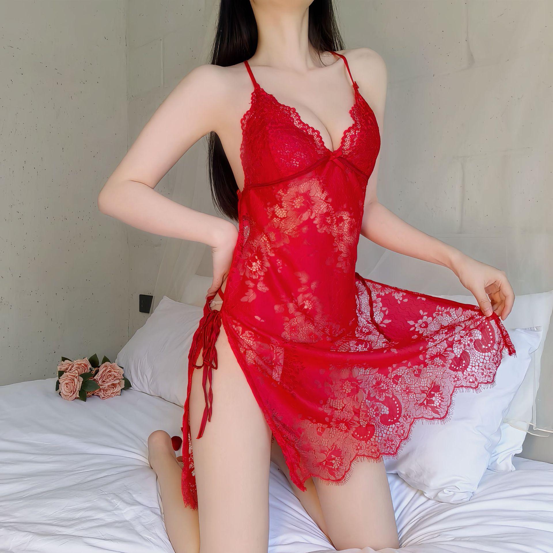 Lencería Sexy Sexy Encaje Tirantes Perspectiva V Profunda Pijama Camisón de Tirantes sin Espalda para Mujer Ropa para el Hogar Traje Uniforme