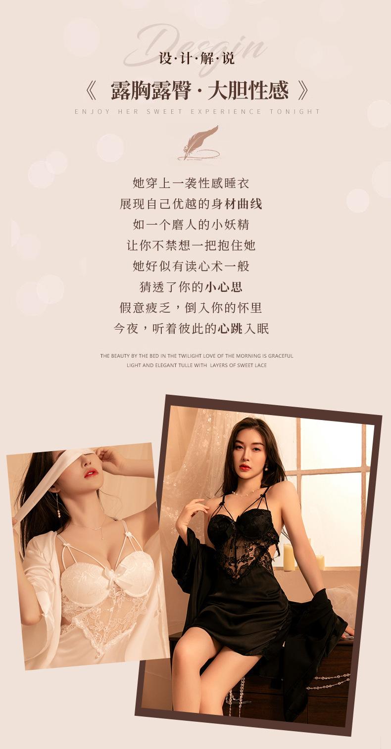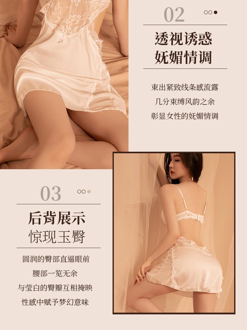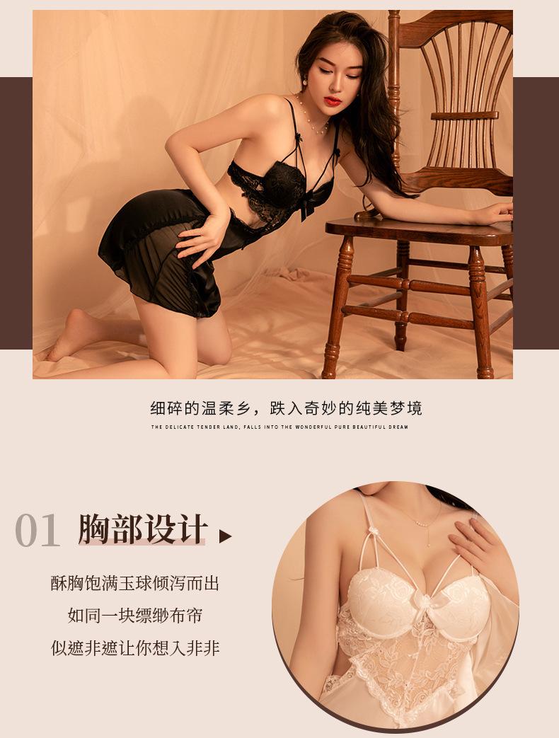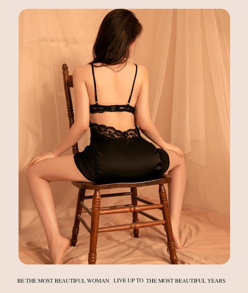 Lencería Sexy Escote en V Profundo Falda con Tirantes de Encaje Sexy Uniforme Tentación Pasión Libre en la Cama Abertura Almohadilla para el Busto Camisón
