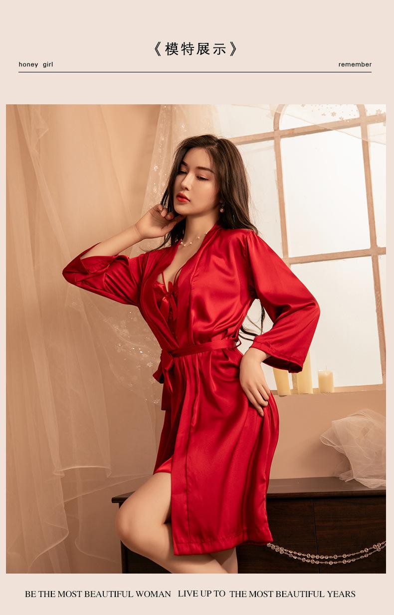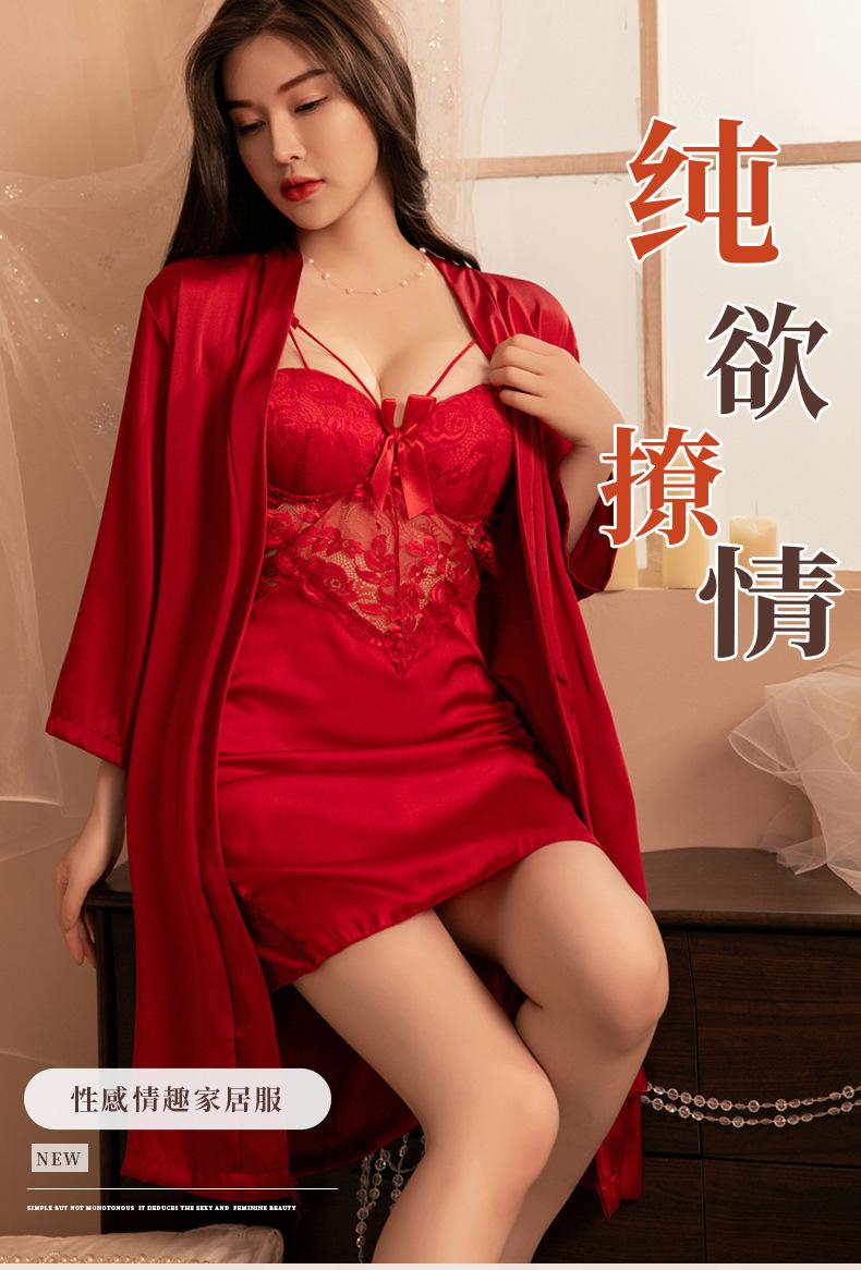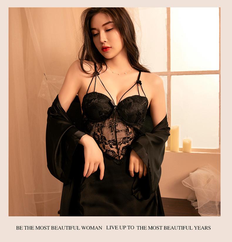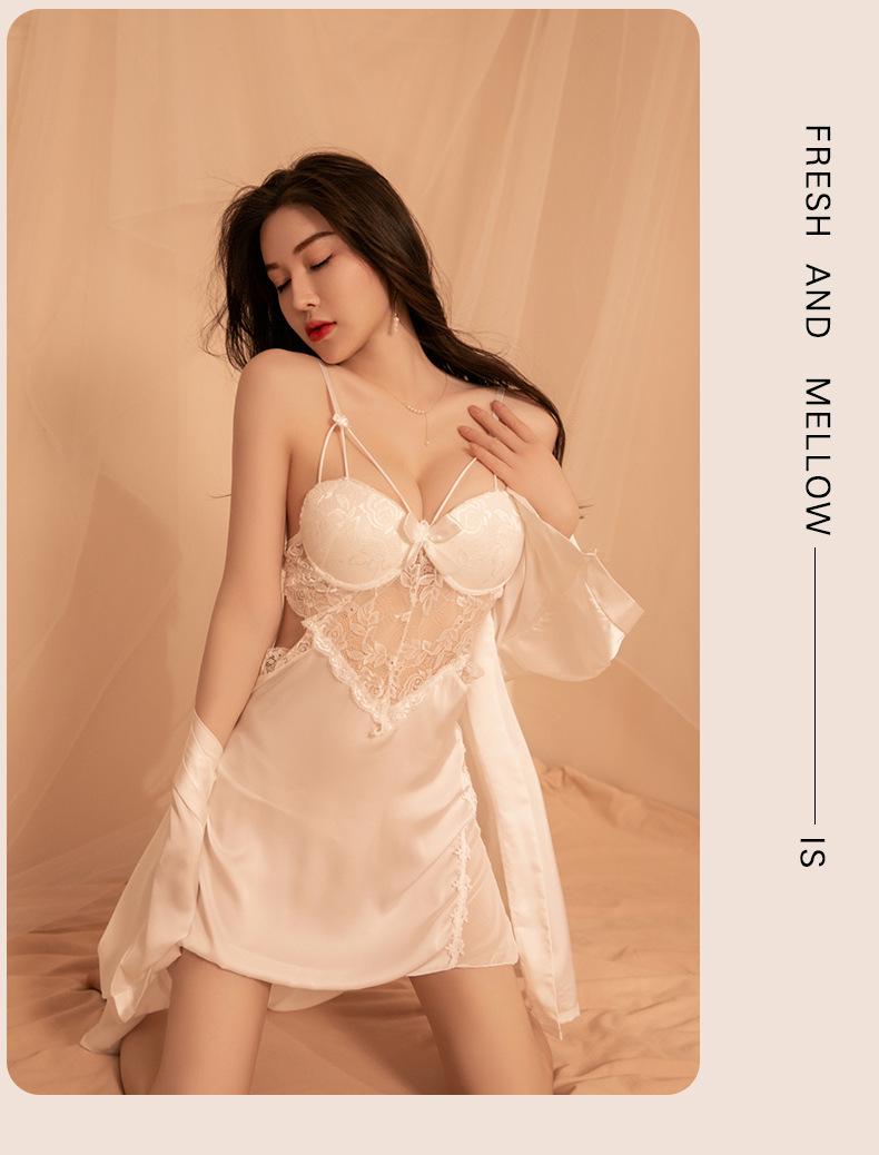 Lencería Sexy Escote en V Profundo Falda con Tirantes de Encaje Sexy Uniforme Tentación Pasión Libre en la Cama Abertura Almohadilla para el Busto Camisón