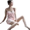 Camisola de Encaje Sexy de Verano con Almohadilla en el Pecho, Ropa de Dormir sin Mangas de Seda de Hielo de Alta Gama para Mujer