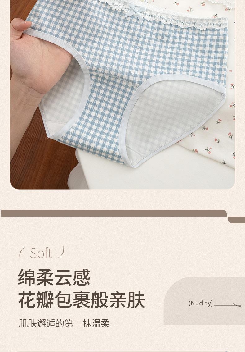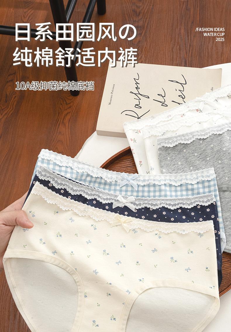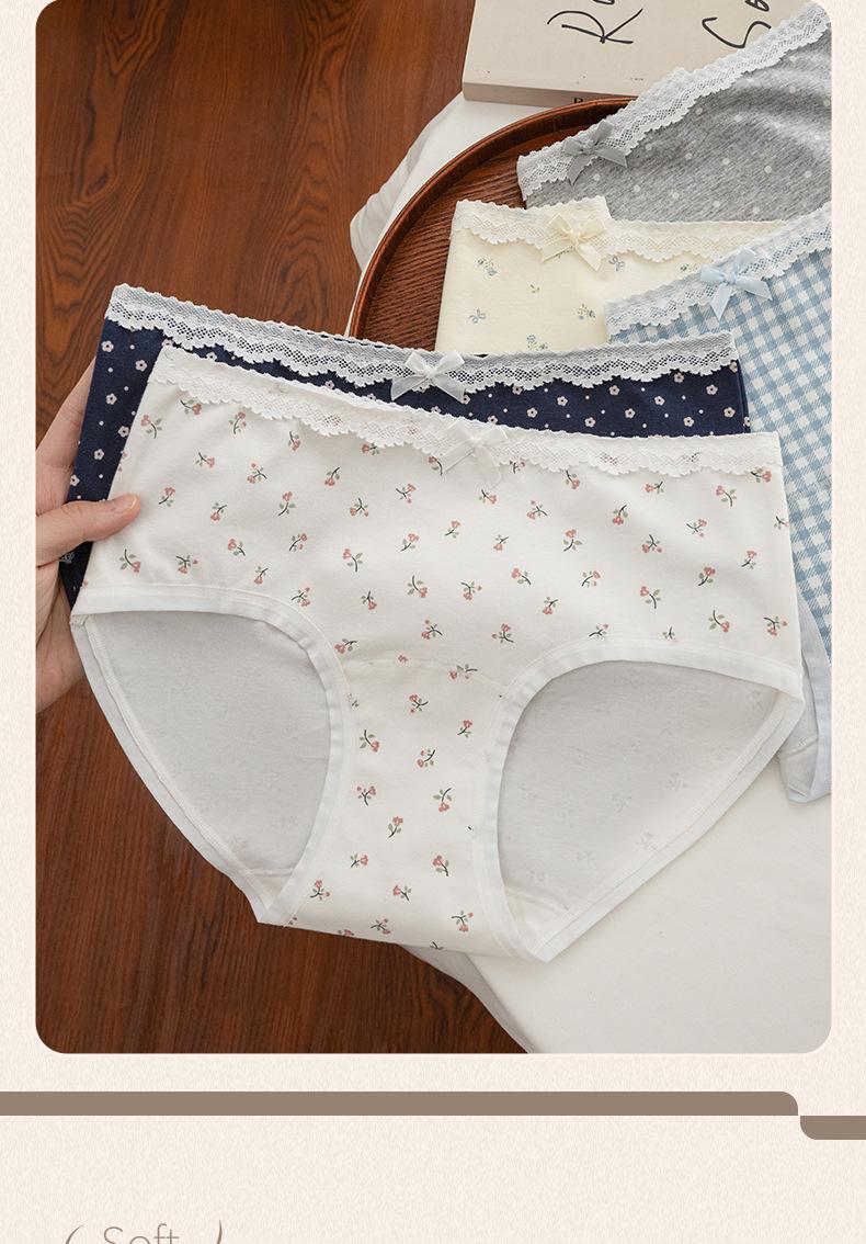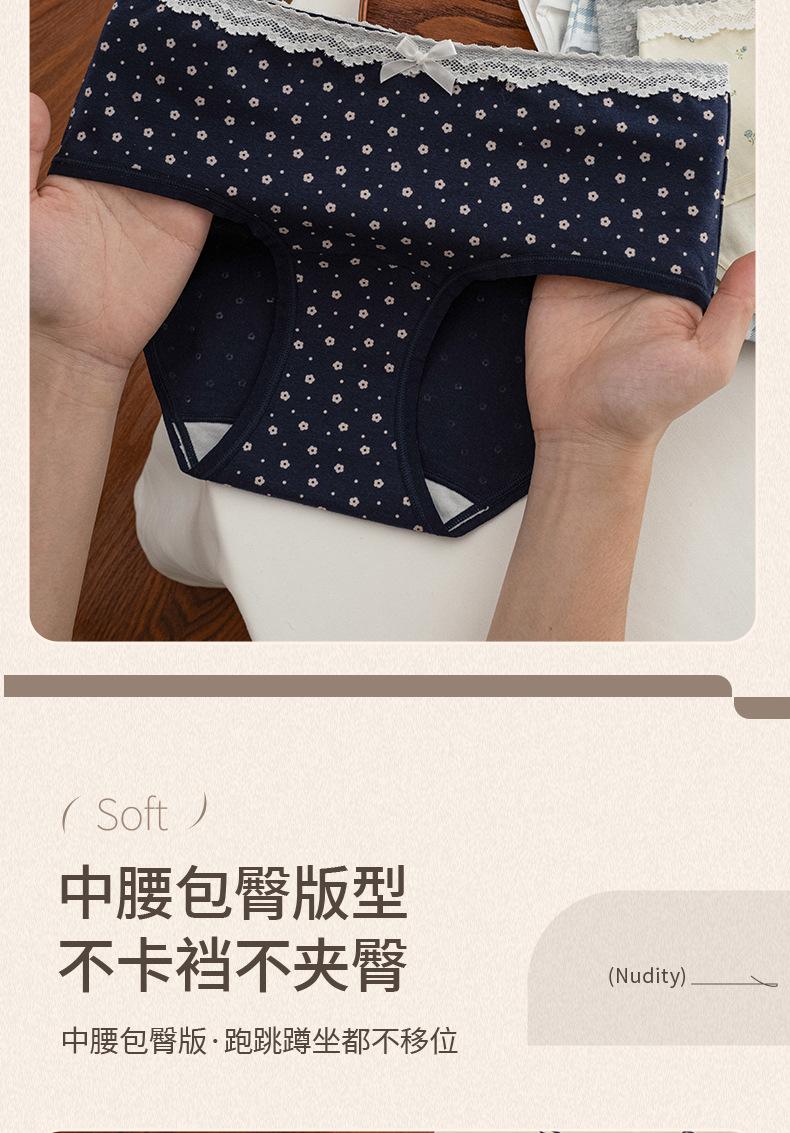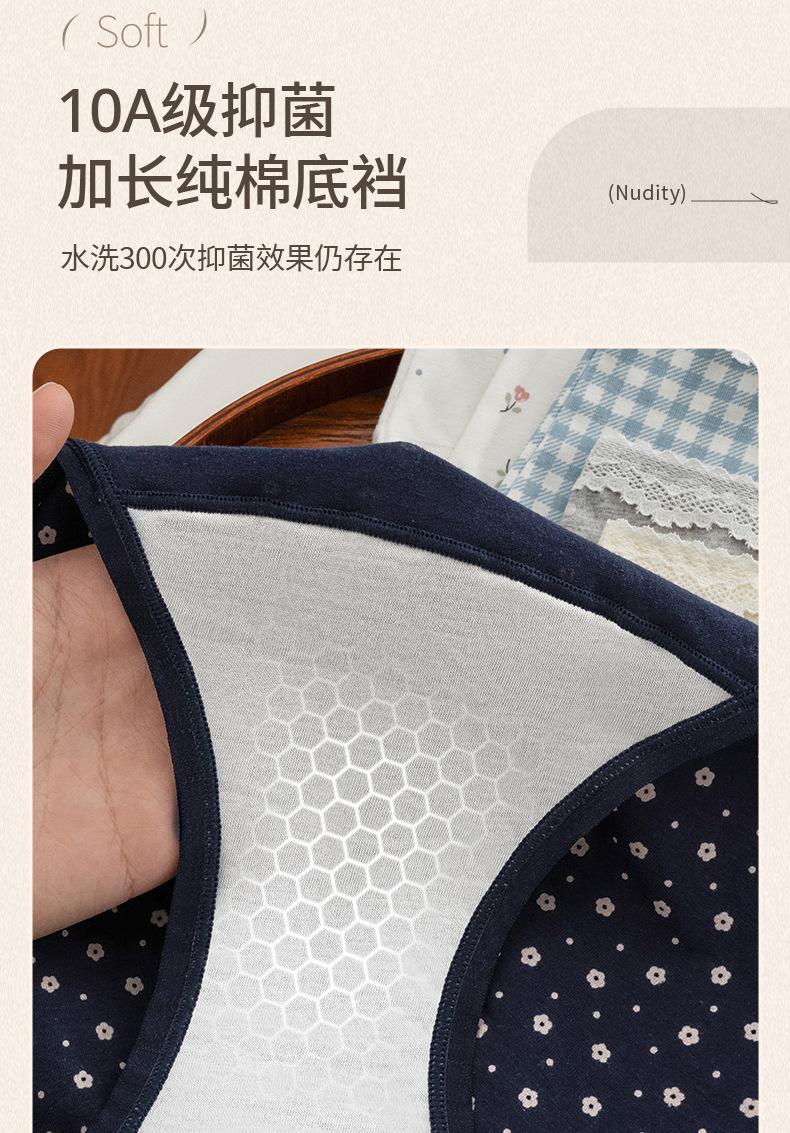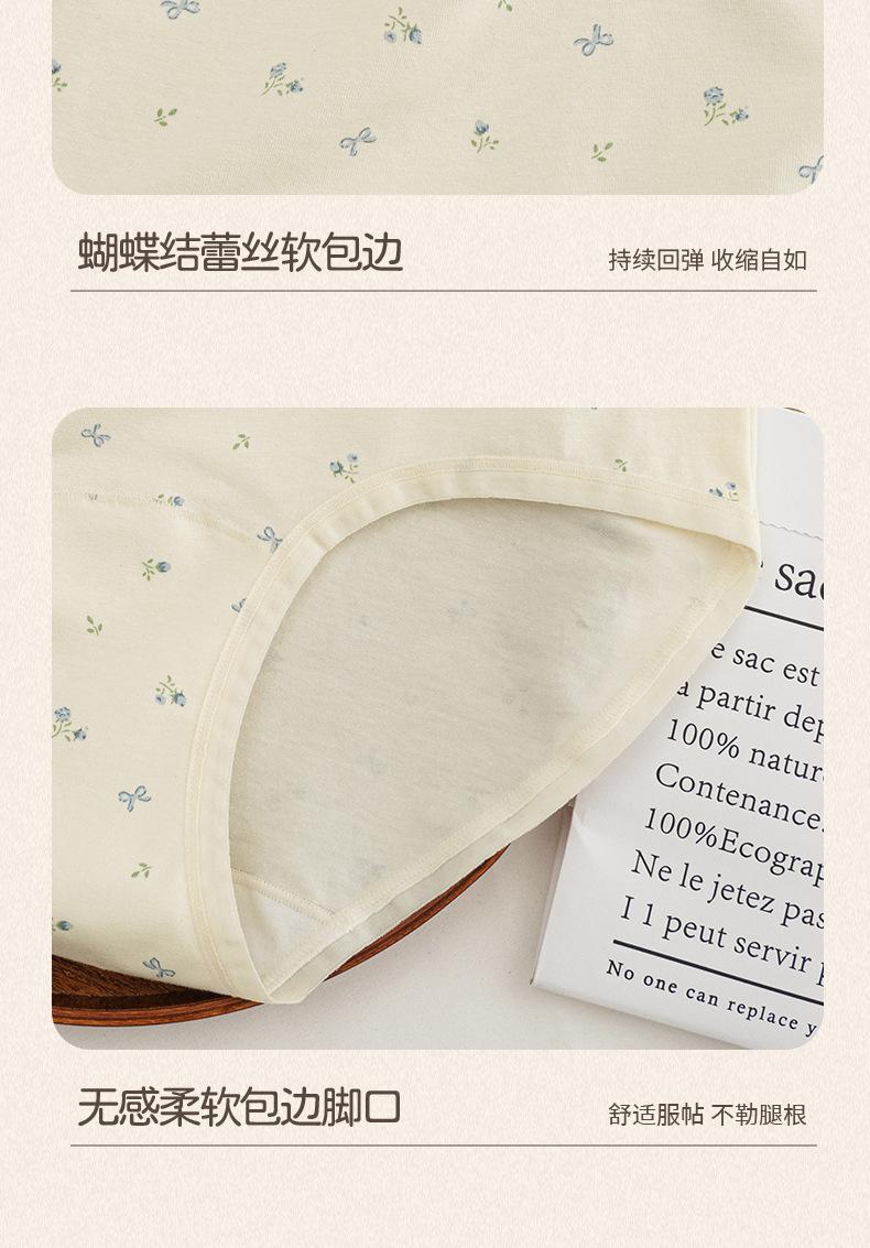 Ropa Interior de Algodón Puro para Mujer con Dulce Estampado Floral, Cintura Media Extendida, Entrepierna Antibacteriana 10A, Calzones Transpirables para Mujer