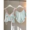 Pijama de encaje de puro deseo con almohadilla en el pecho para mujer, verano nuevo 2025, emocional, de alta calidad, talla grande, traje de pijama con tirantes