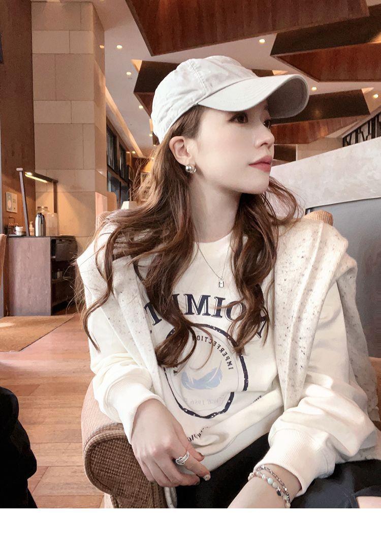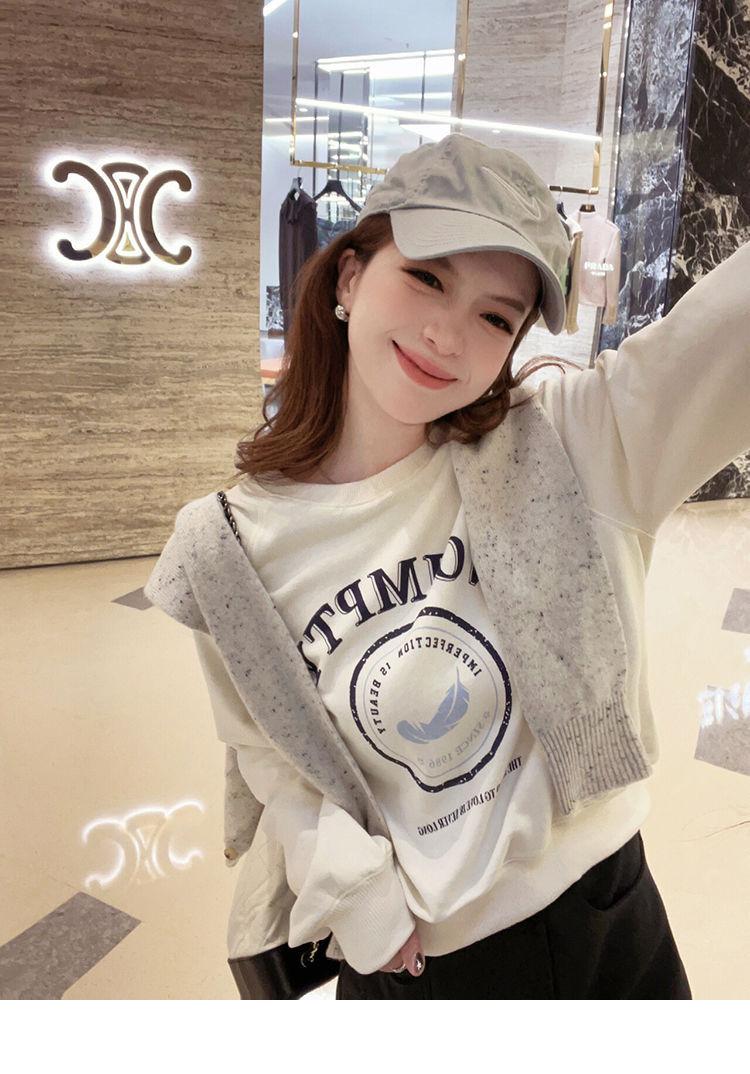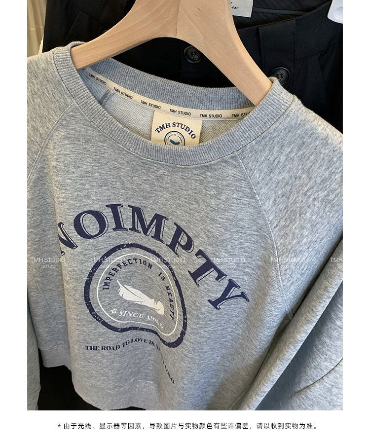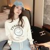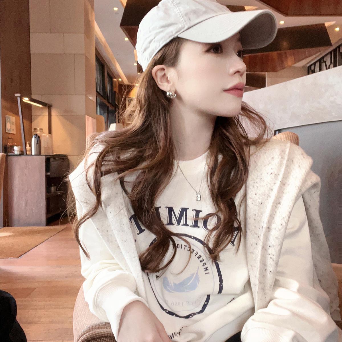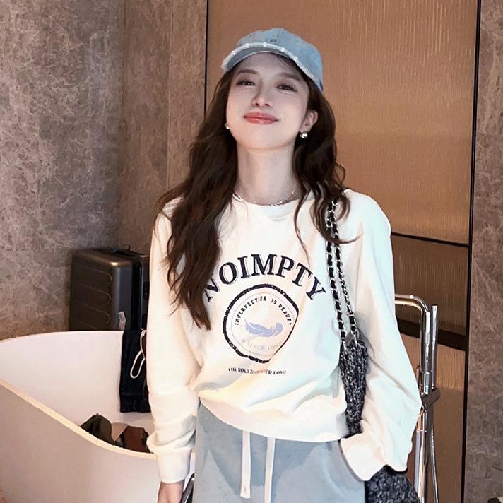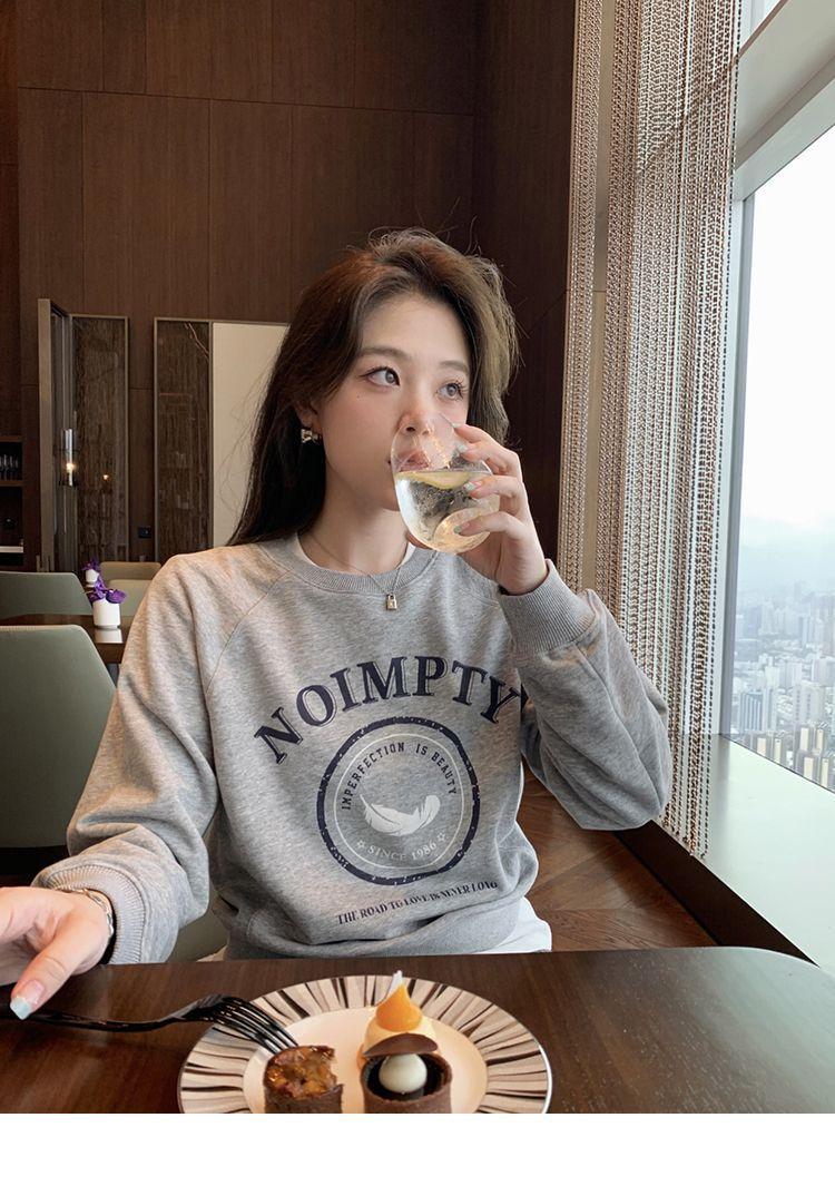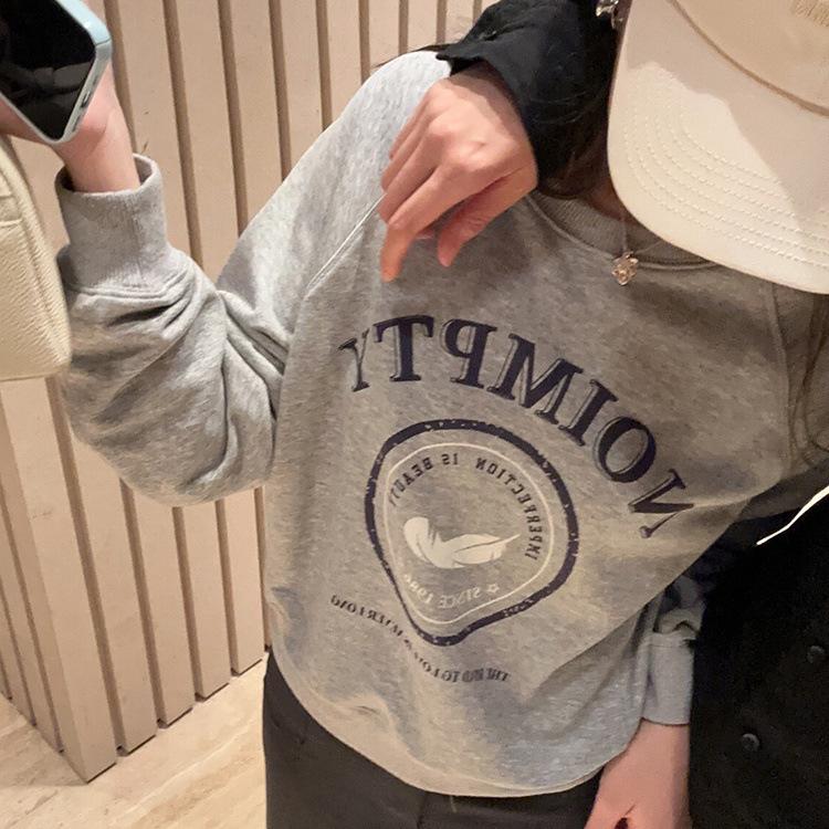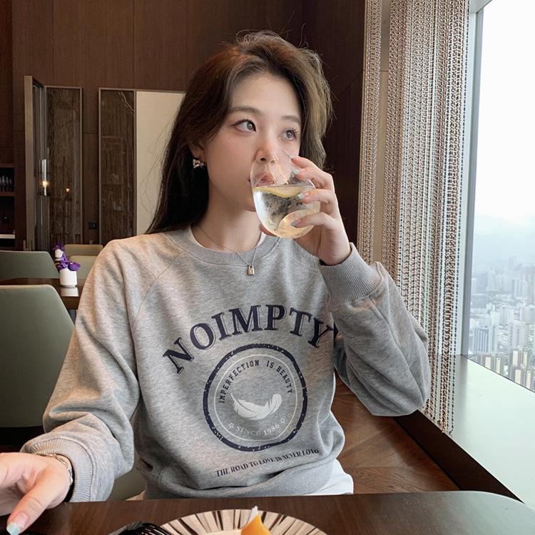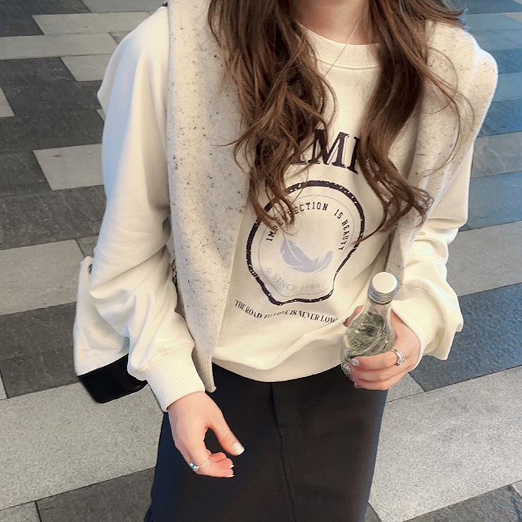 23 Otoño Nuevo estilo coreano Americano retro letras de plumas estilo perezoso suelto cuello redondo versátil manga larga suéter top