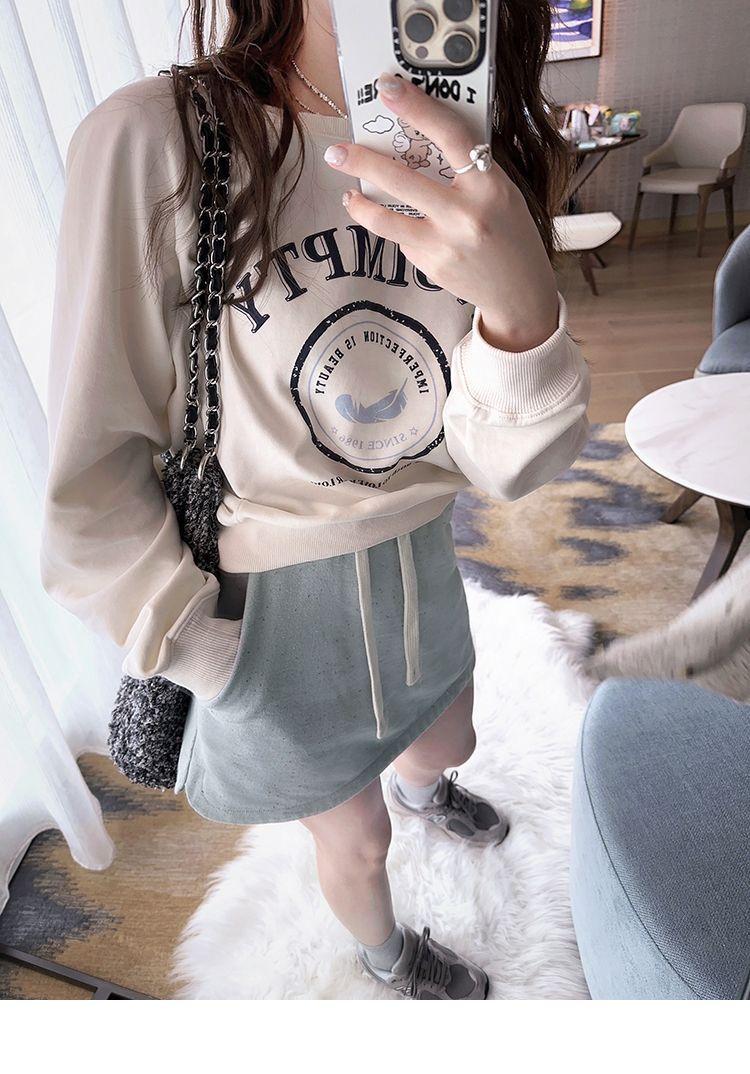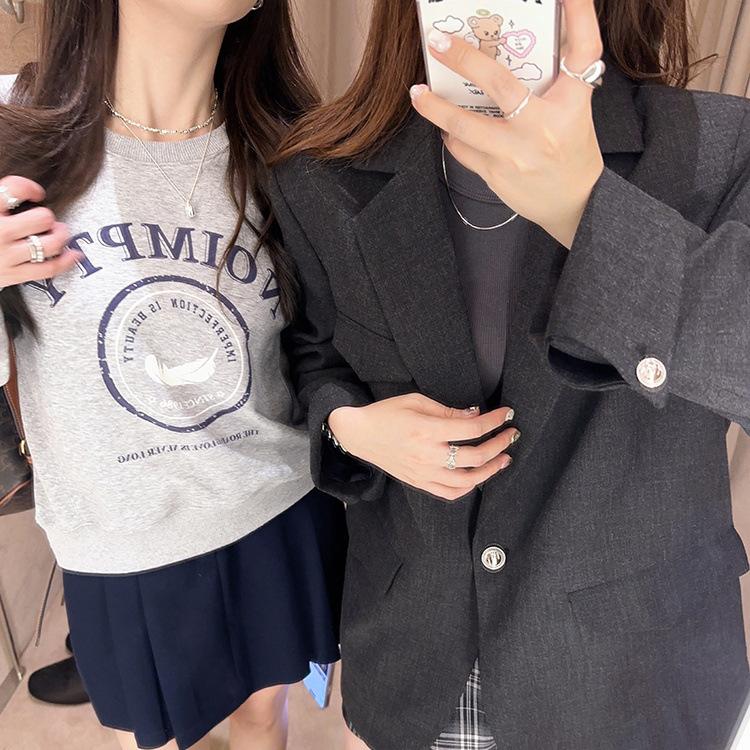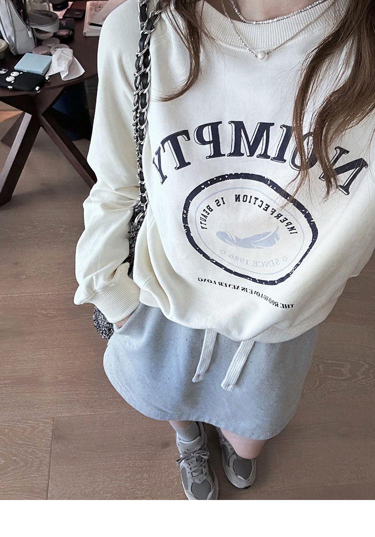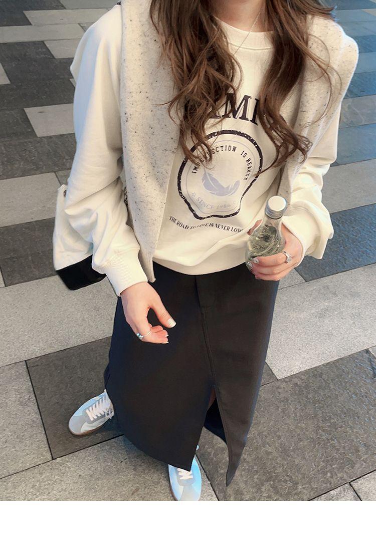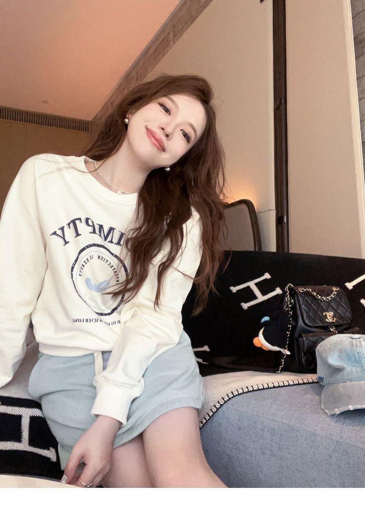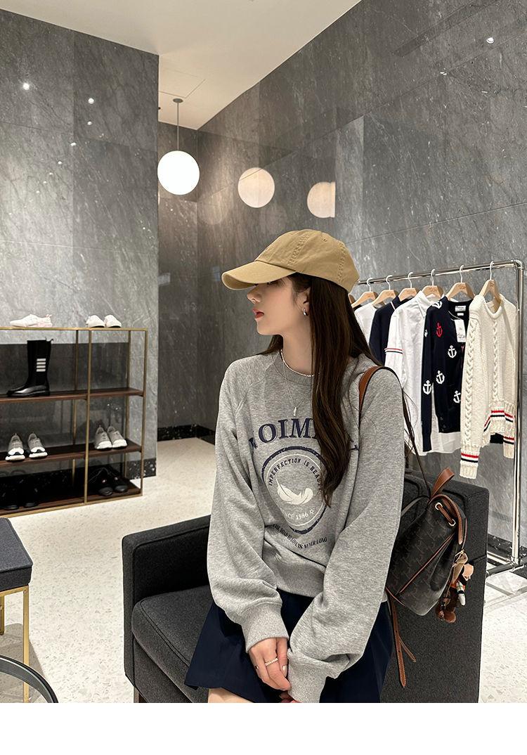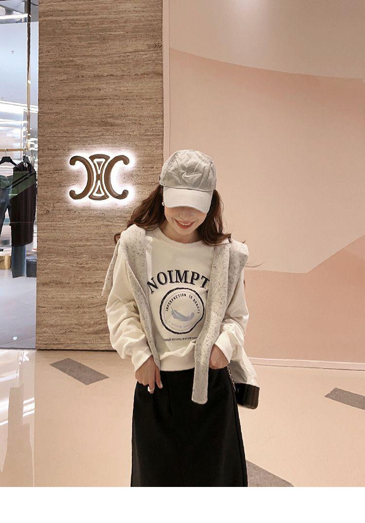 23 Otoño Nuevo estilo coreano Americano retro letras de plumas estilo perezoso suelto cuello redondo versátil manga larga suéter top