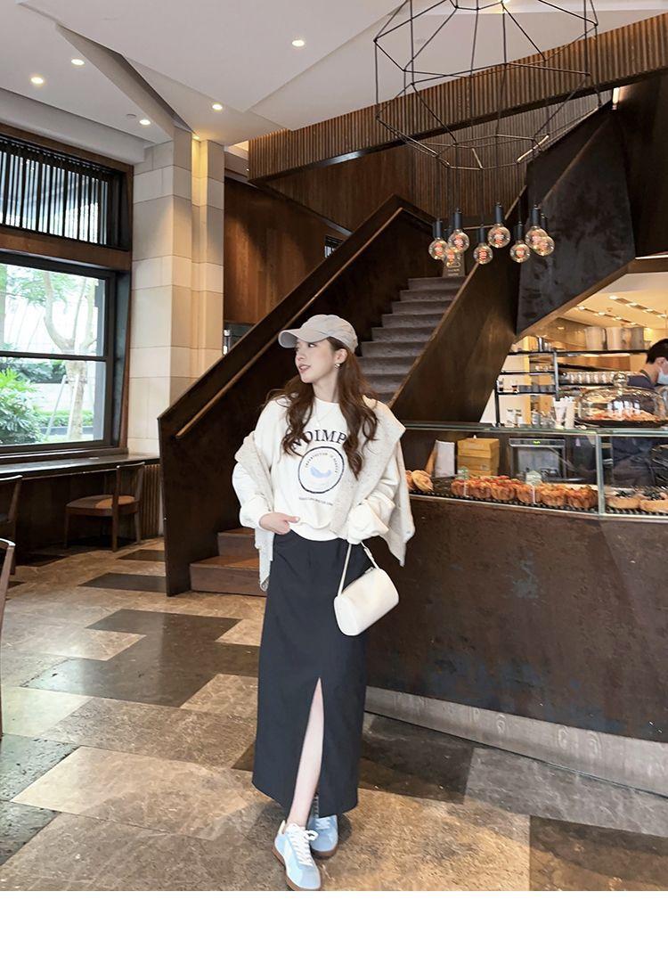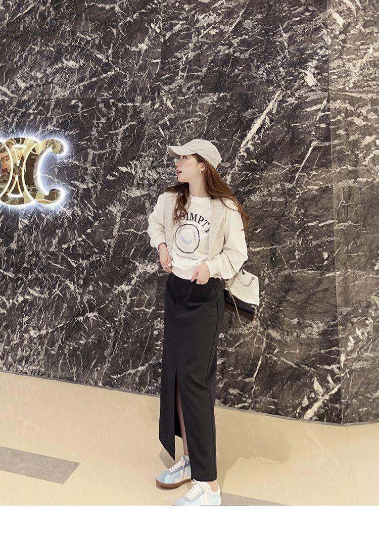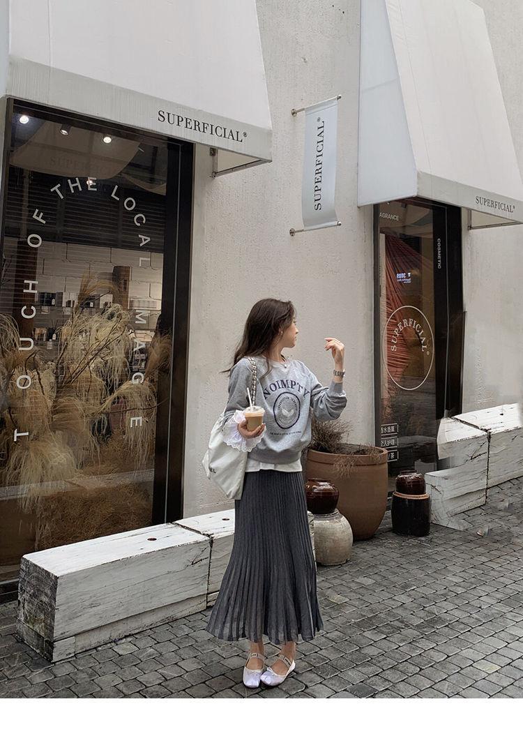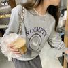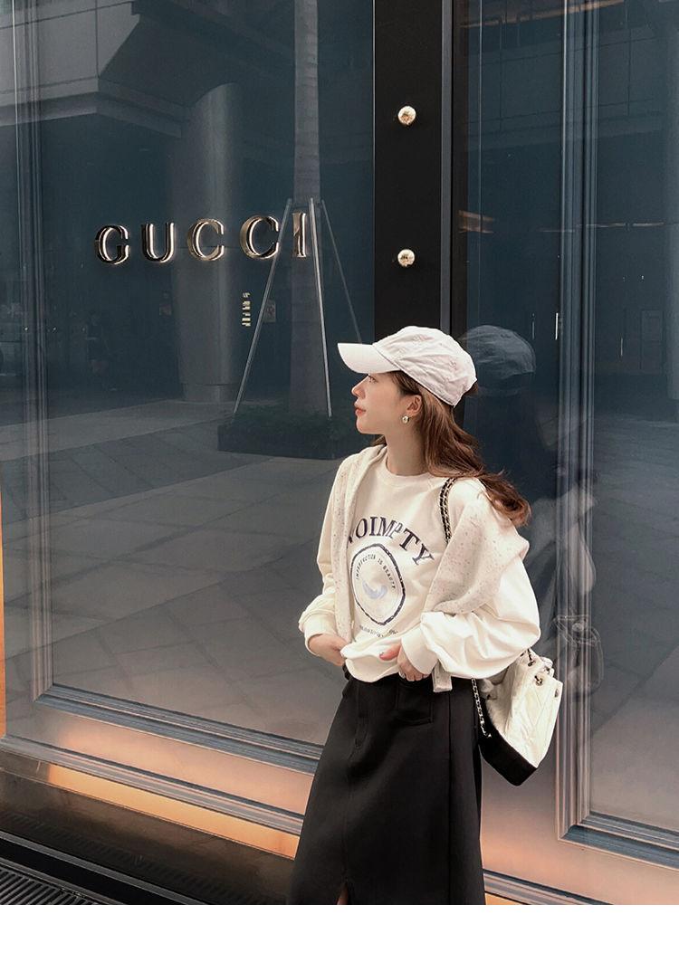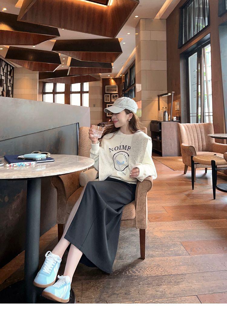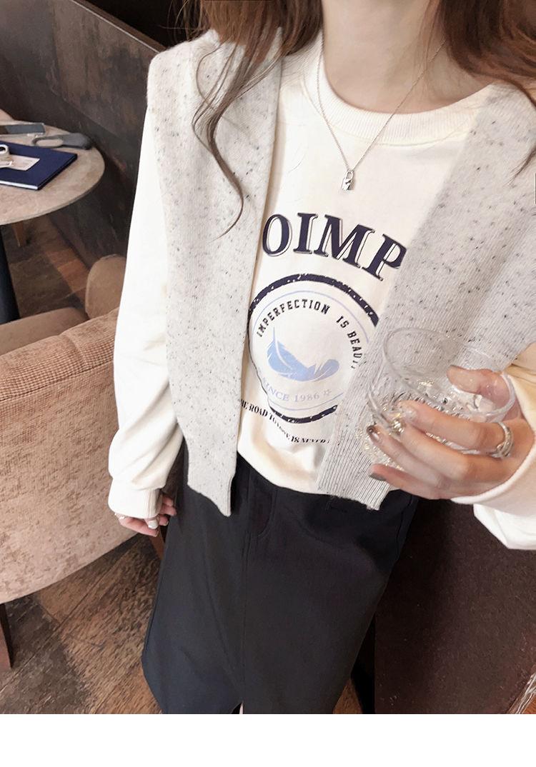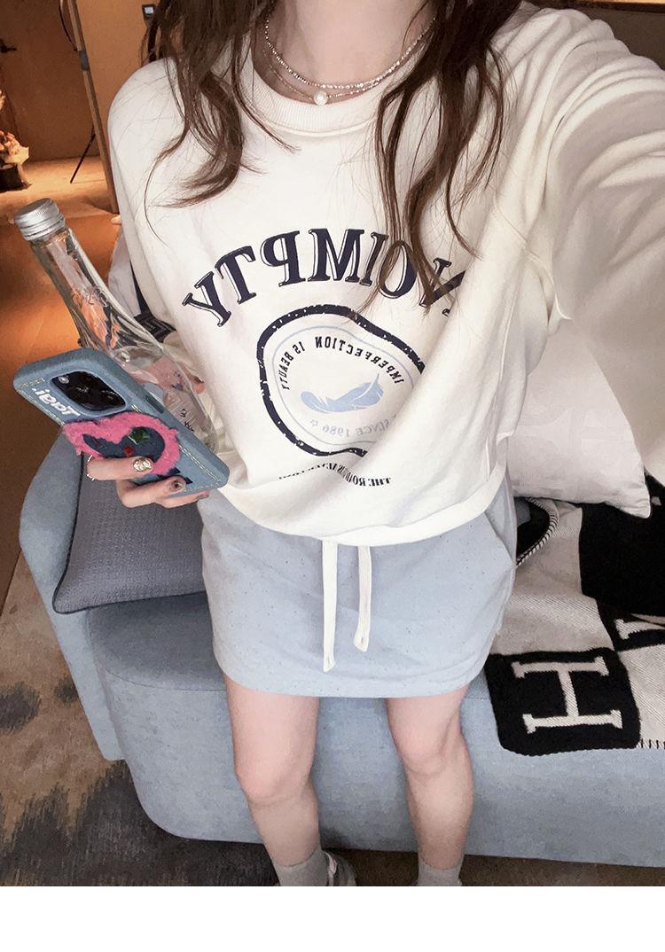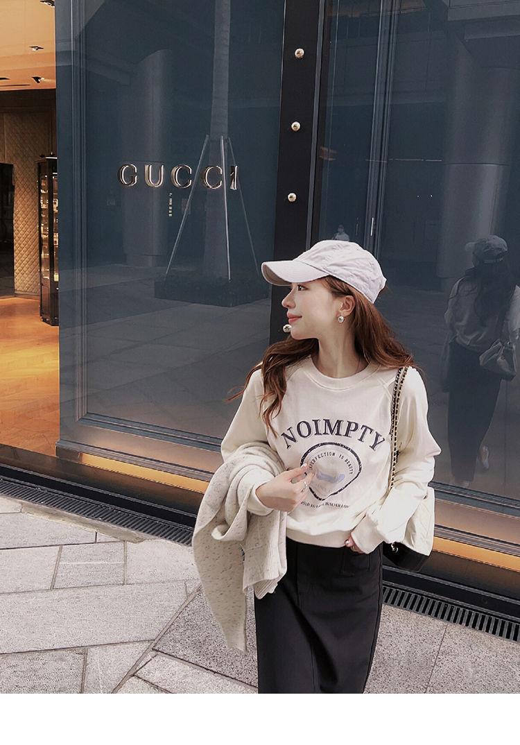 23 Otoño Nuevo estilo coreano Americano retro letras de plumas estilo perezoso suelto cuello redondo versátil manga larga suéter top