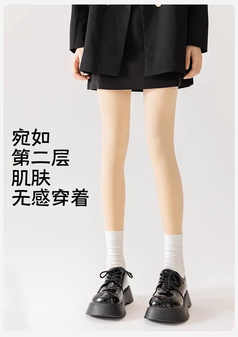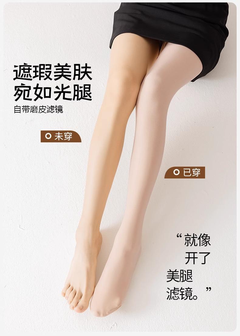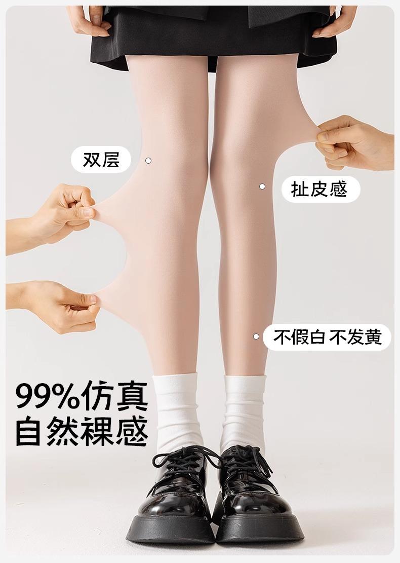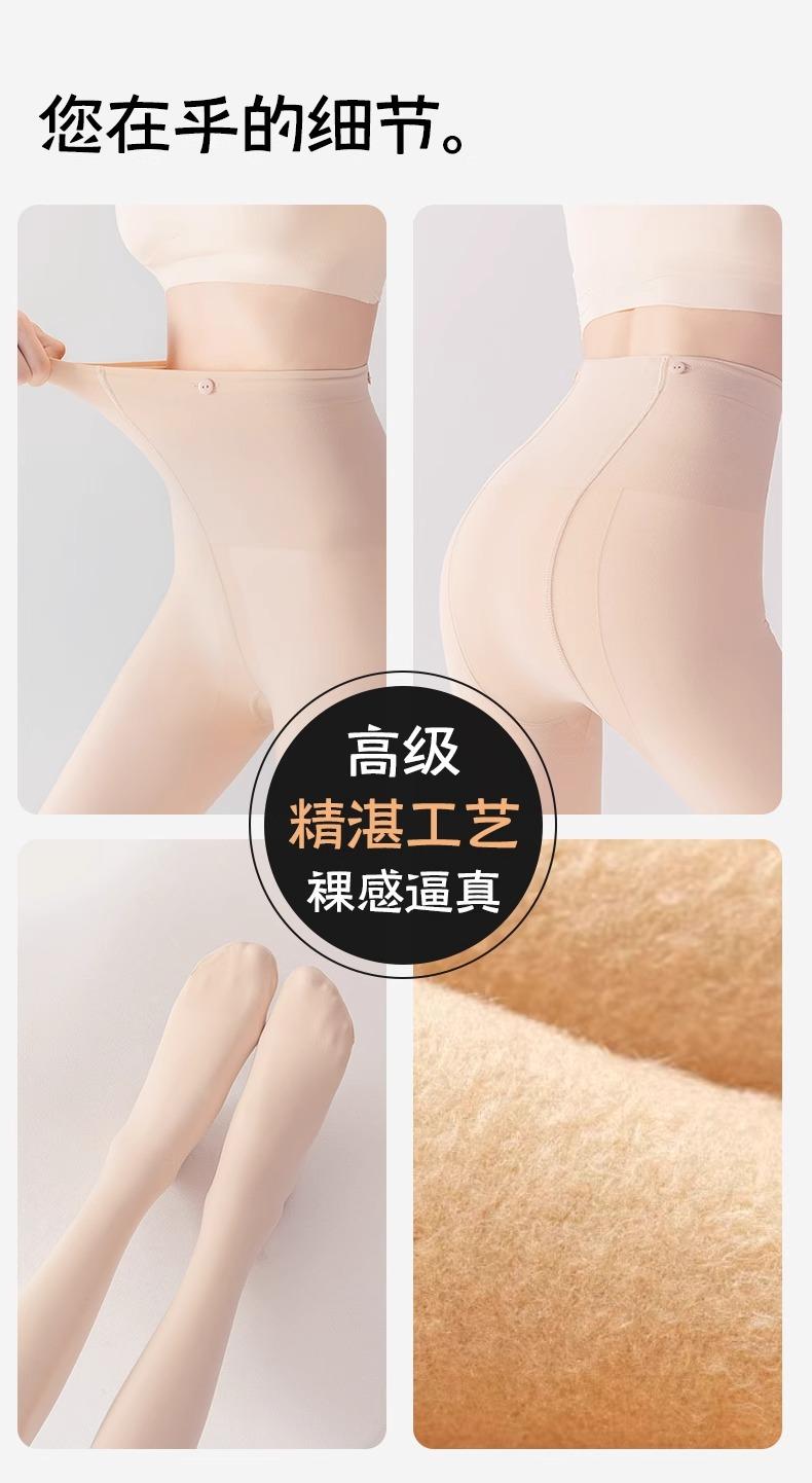 Medias transparentes de doble capa para mujer, color nude de otoño e invierno, tono de piel realista, forradas con vellón, gruesas, leggings cálidos