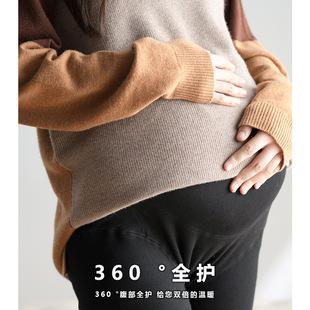 Pantalones de algodón de una pieza para mujeres embarazadas estilo otoño e invierno, pantalones de soporte abdominal afelpados y gruesos, leggings ajustables para mujeres embarazadas con estribos, venta al por mayor |