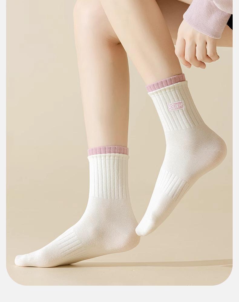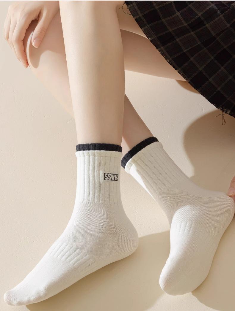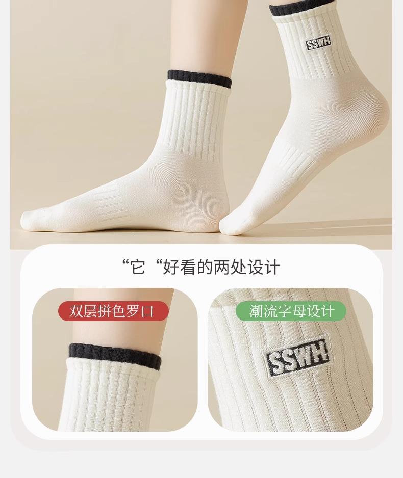 Calcetines blancos sin costuras para niños primavera y otoño calcetines de media caña absorbentes de sudor transpirables calcetines deportivos alfabeto ins calcetines de otoño modernos combinables