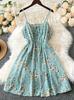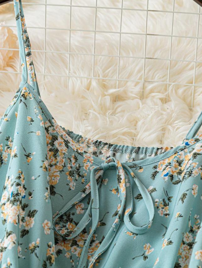 Vestido Vacaciones Junto al Mar para Mujer Verano 2022 Nuevo Sexy Cuello en V Cintura Ajustada Slim Largo Gasa Floral Vestido de Playa