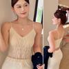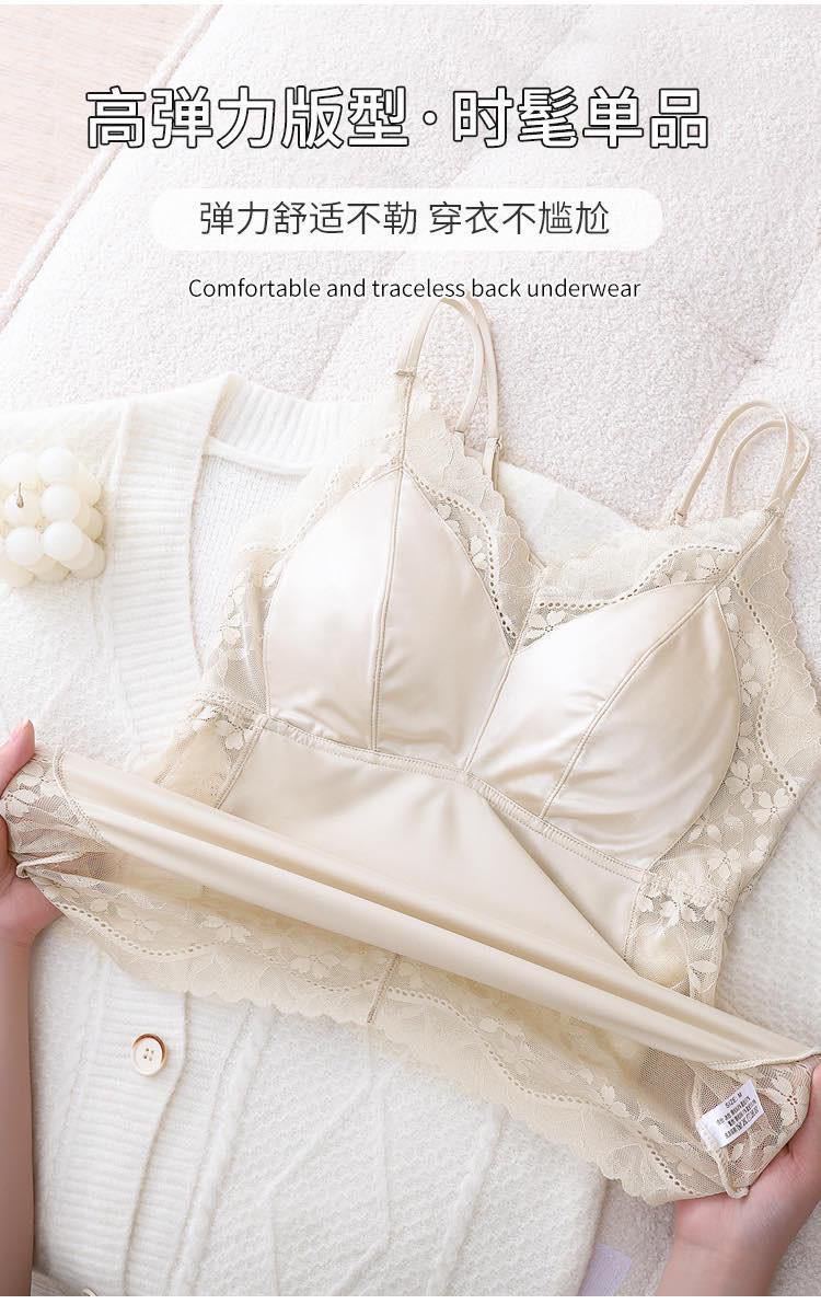 Camisola de Encaje con Hermosa Espalda para Mujer, Sujetador Todo en Uno con Base y para Uso Exterior, Talla Grande, Adelgazante, Top Tubo Largo Francés