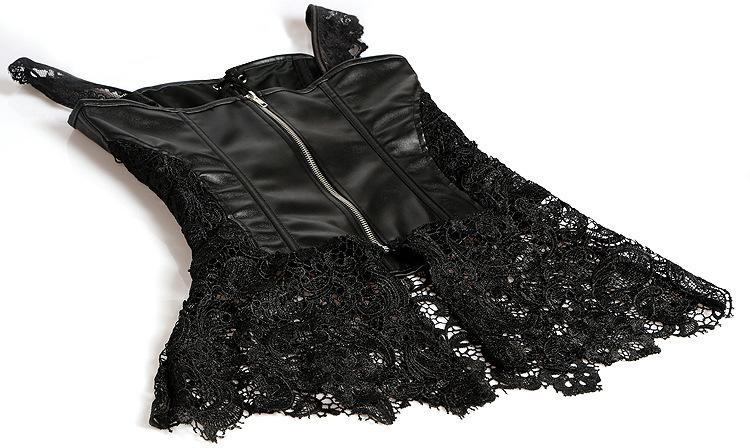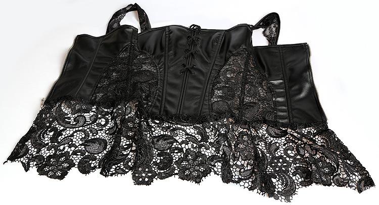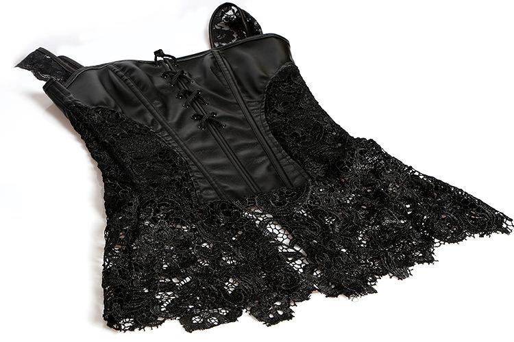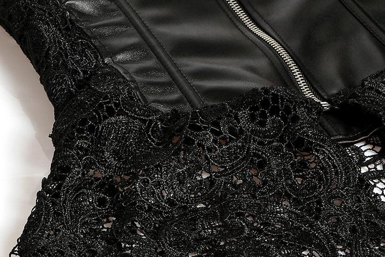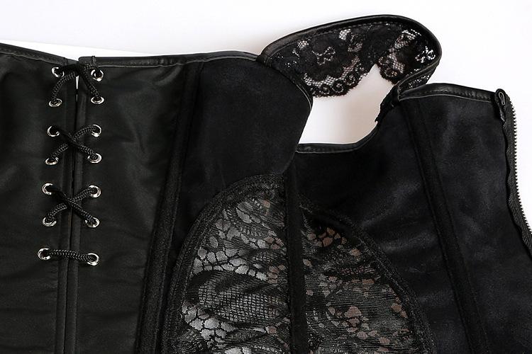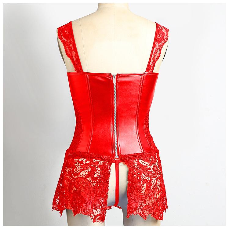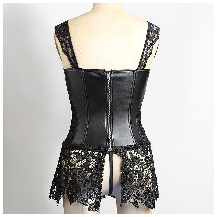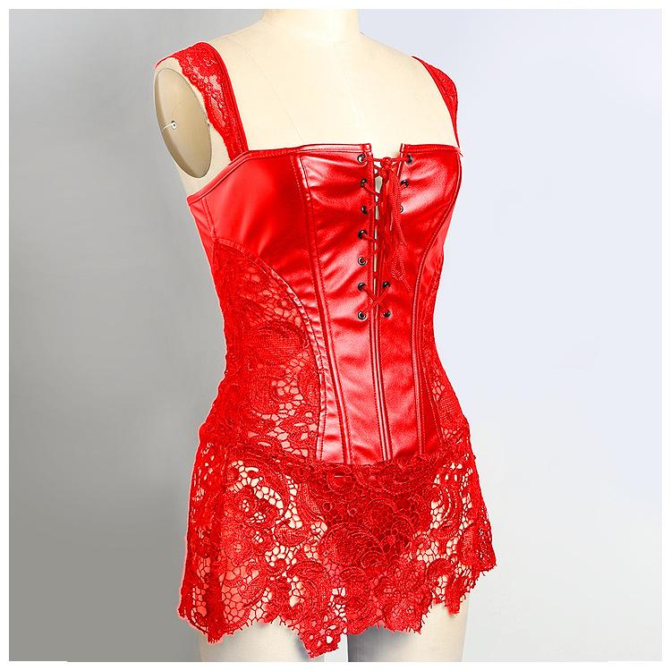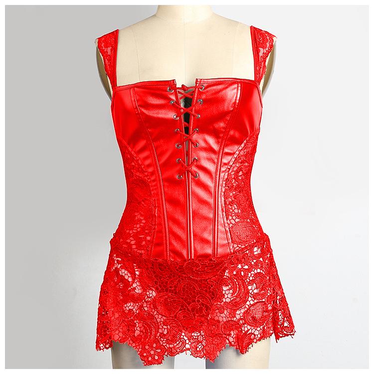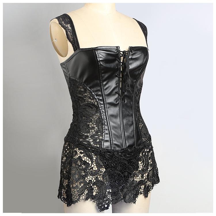 Vestido Corsé de Encaje Europeo y Americano de Cuero PU Faja Moldeadora de Palacio Top Corsé Sexy para Mujer