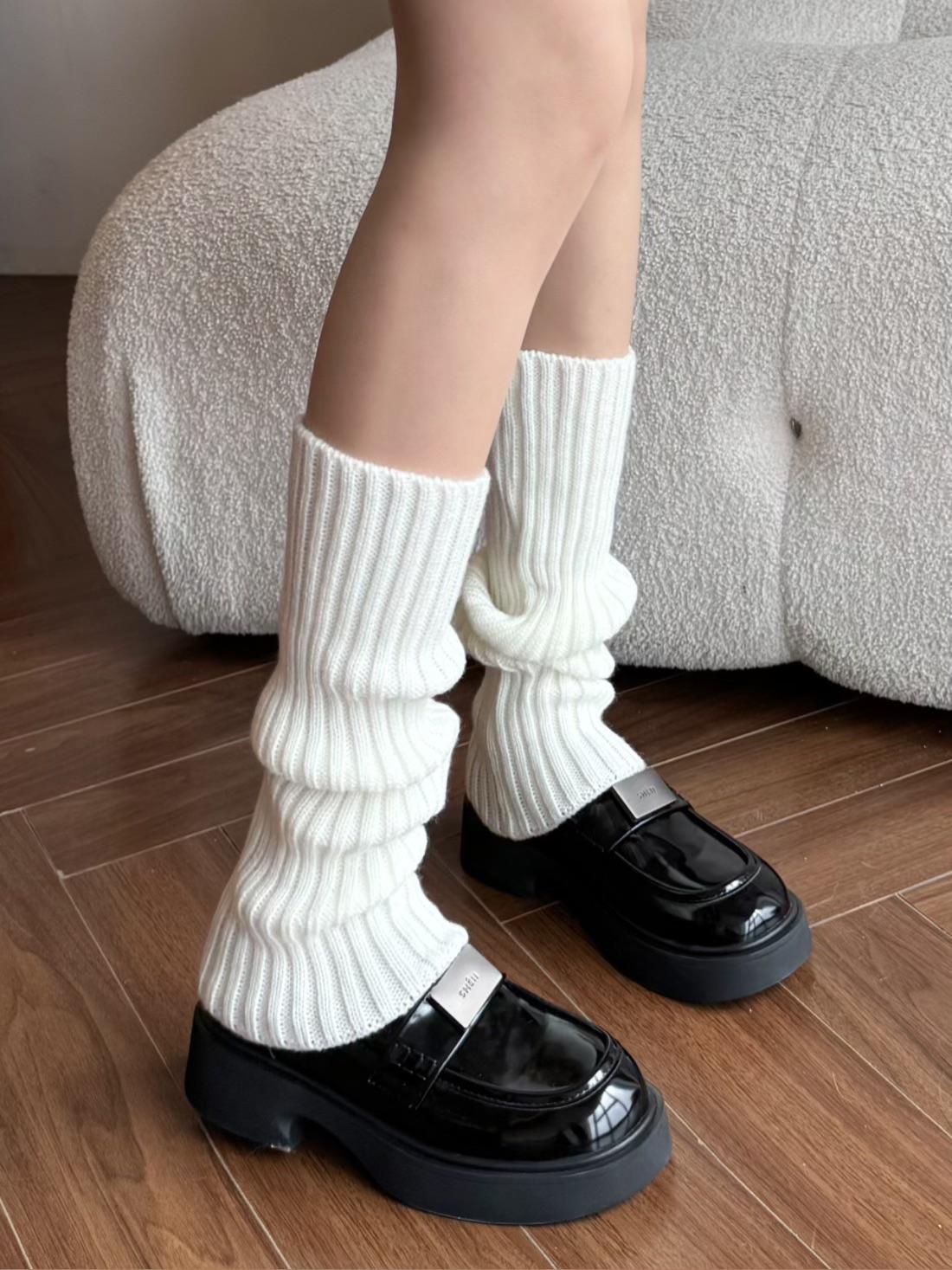 Calcetines Jk de Punto Gruesos, Calcetines Blancos hasta la Pantorrilla para Mujer, Calentadores para Primavera y Otoño, Calcetines Holgados Lolita