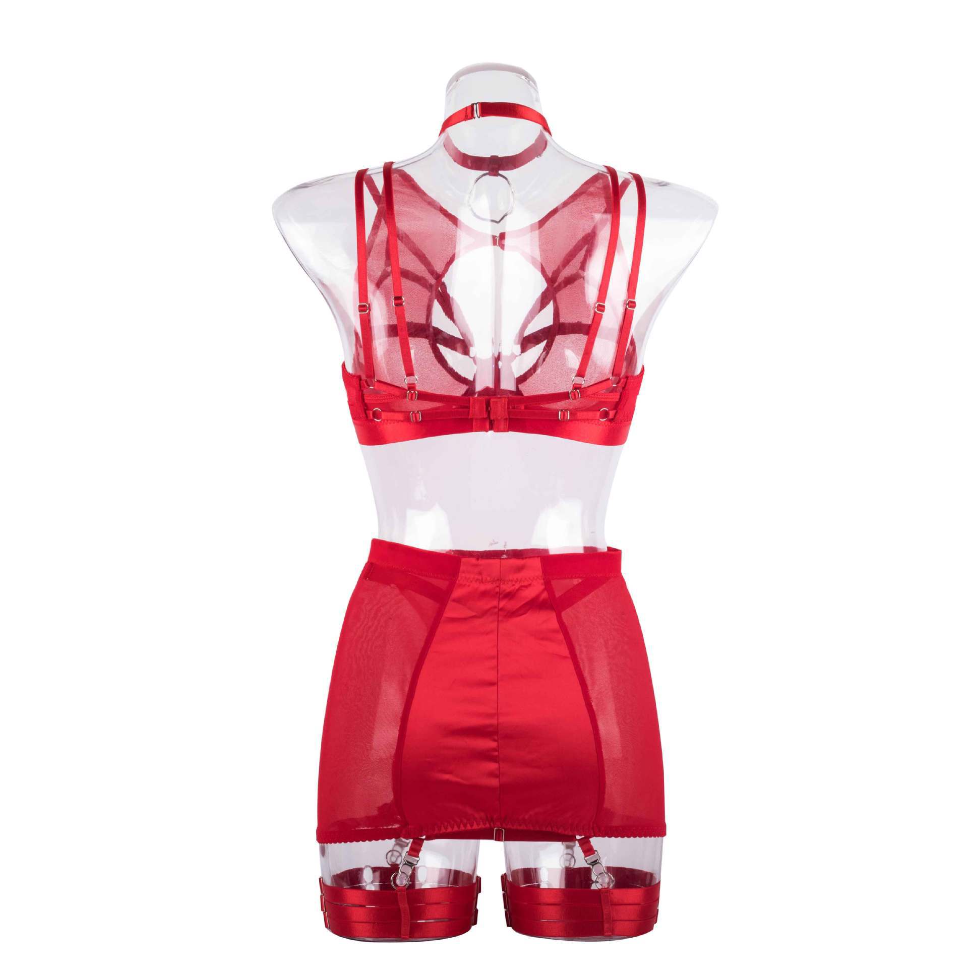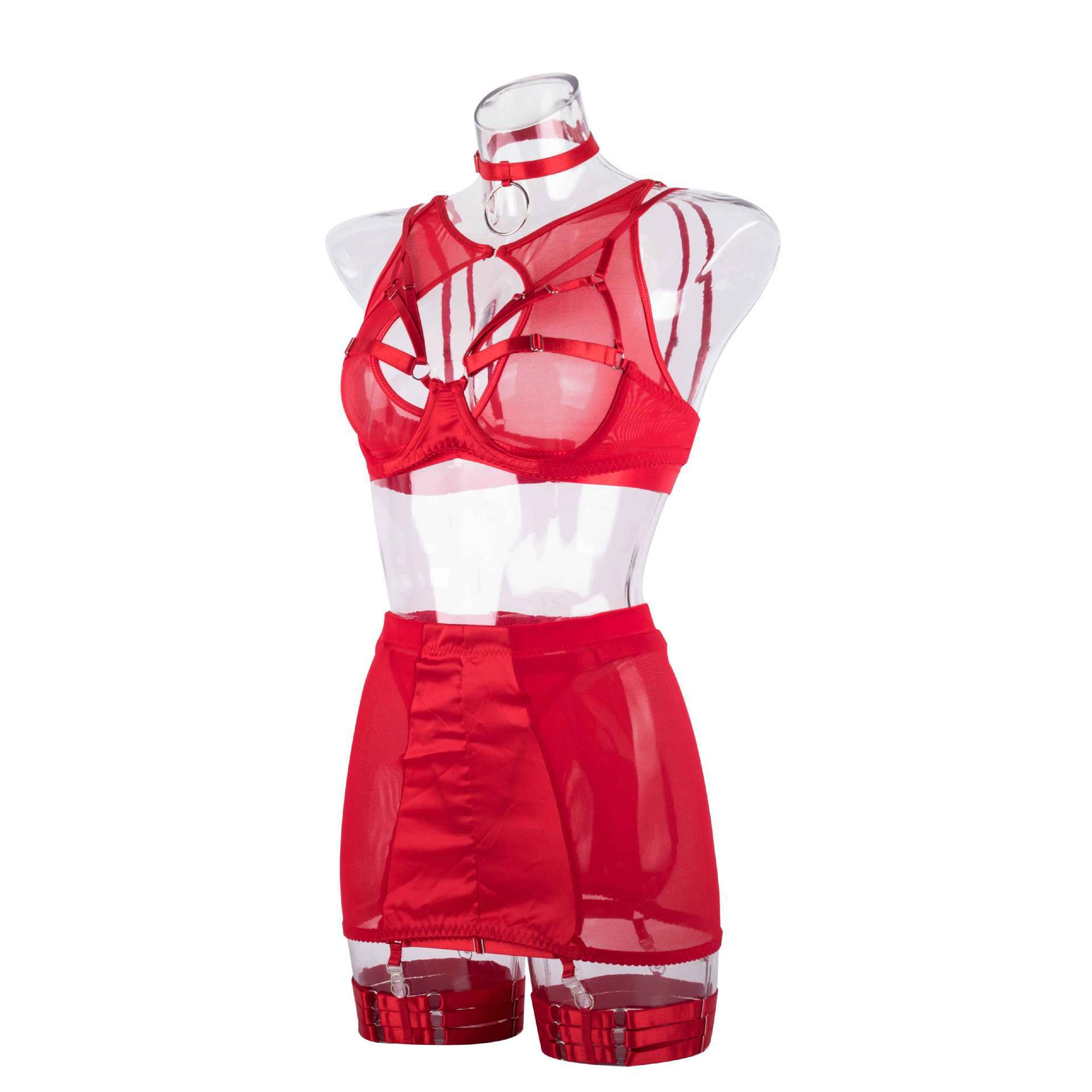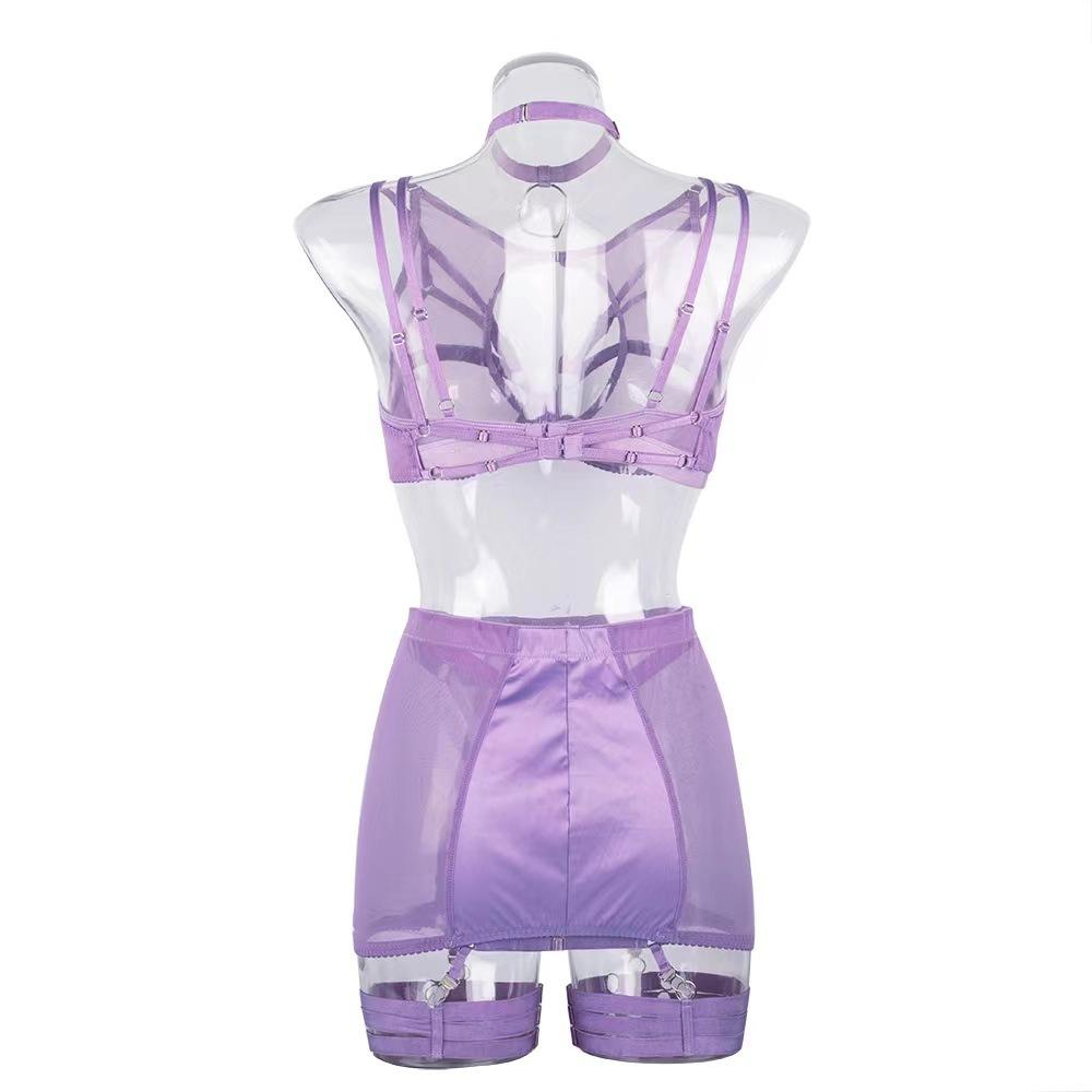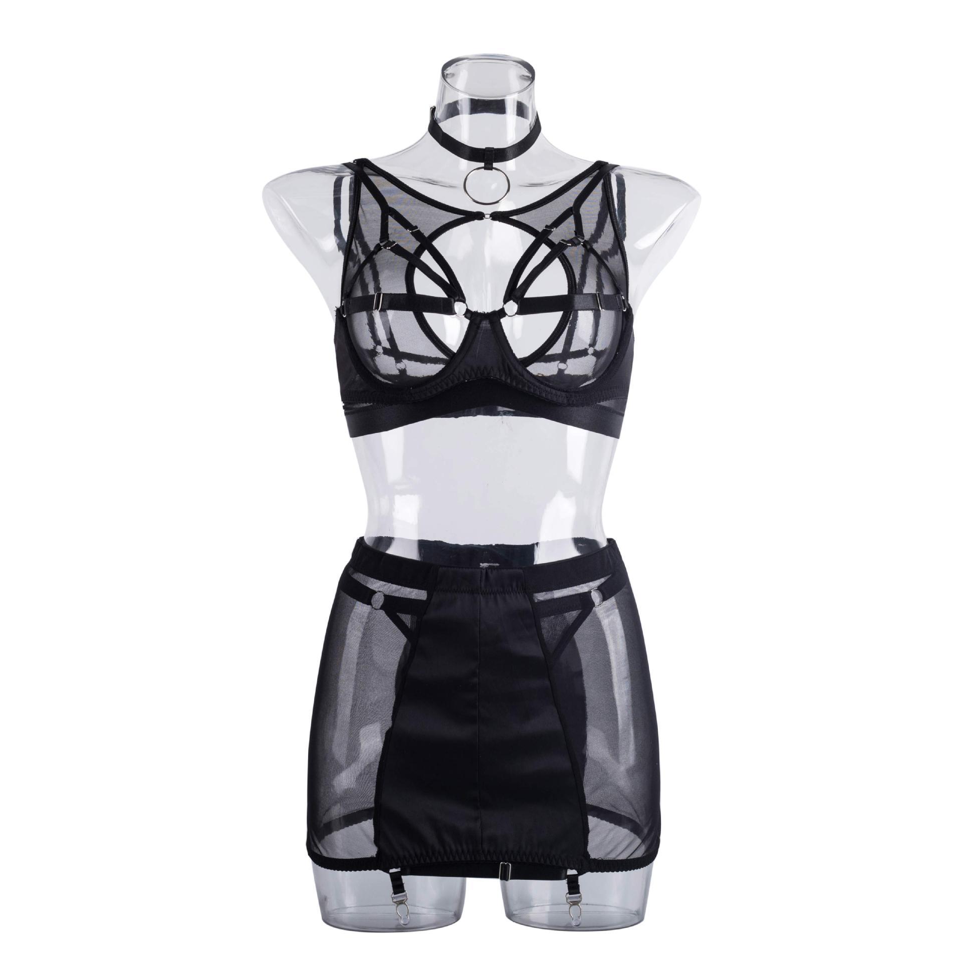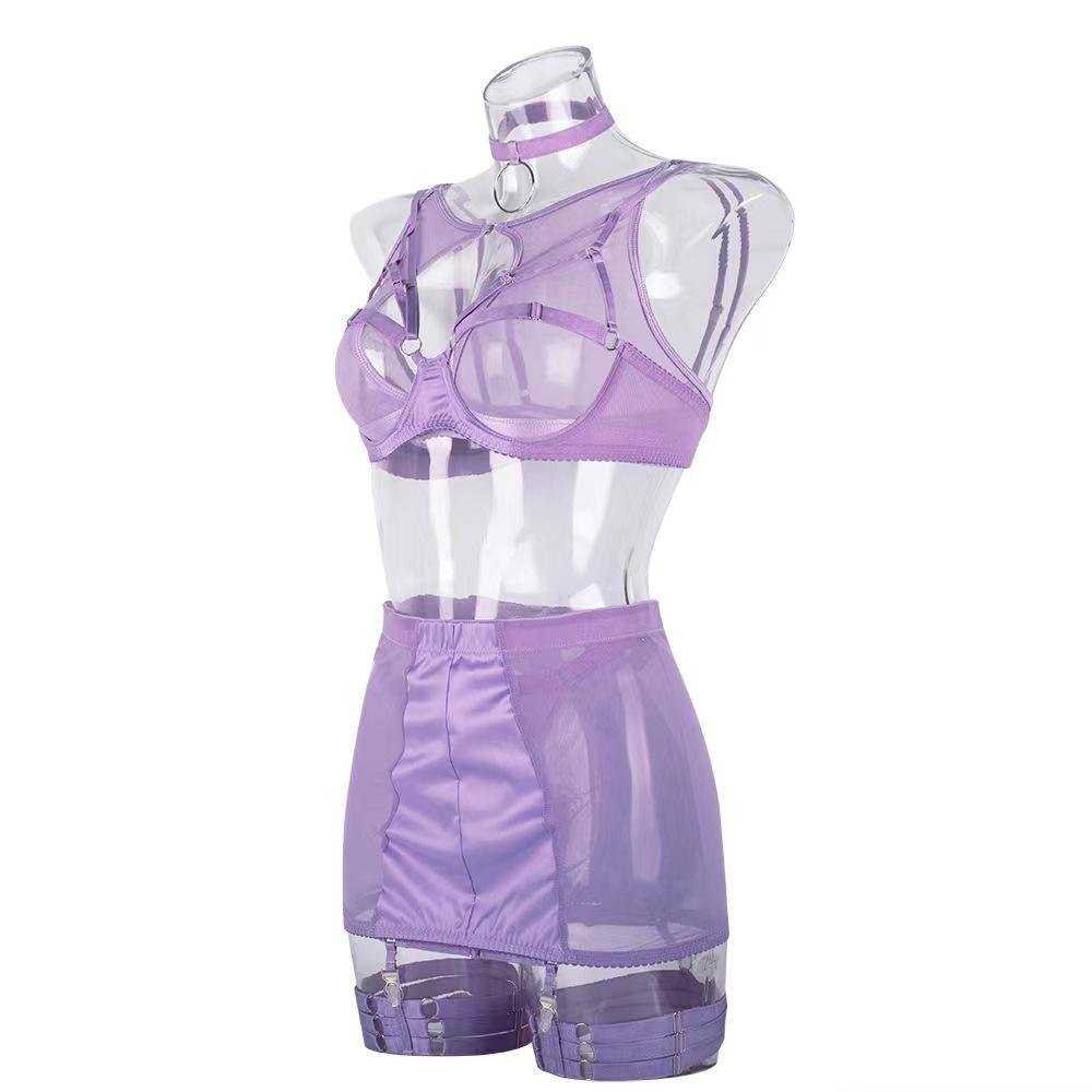 2022 Nuevo Estilo Malla Ultradelgada Ropa Interior Europea y Americana Sexy Conjunto de Varias Piezas Sexy Conjunto de Sujetador de Encaje