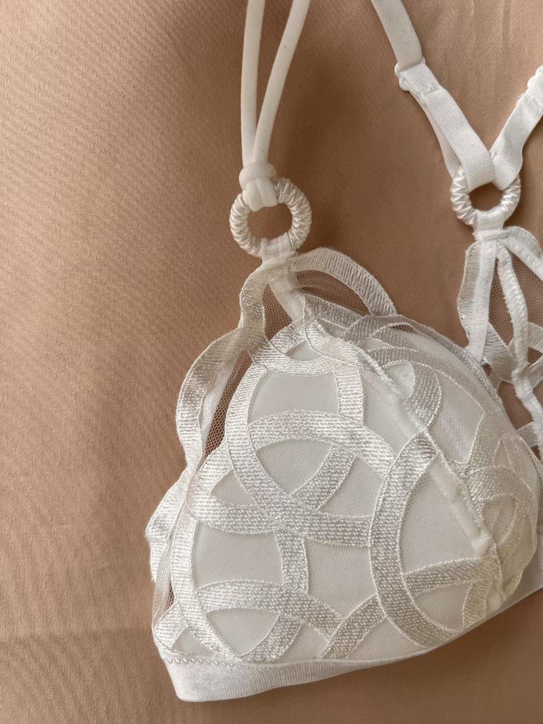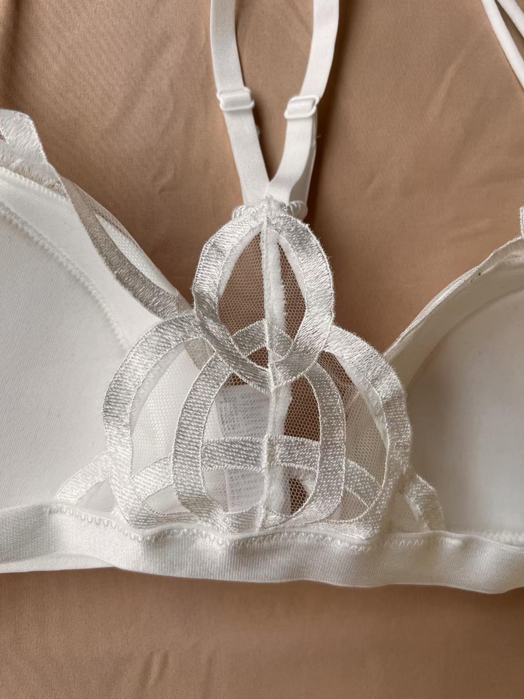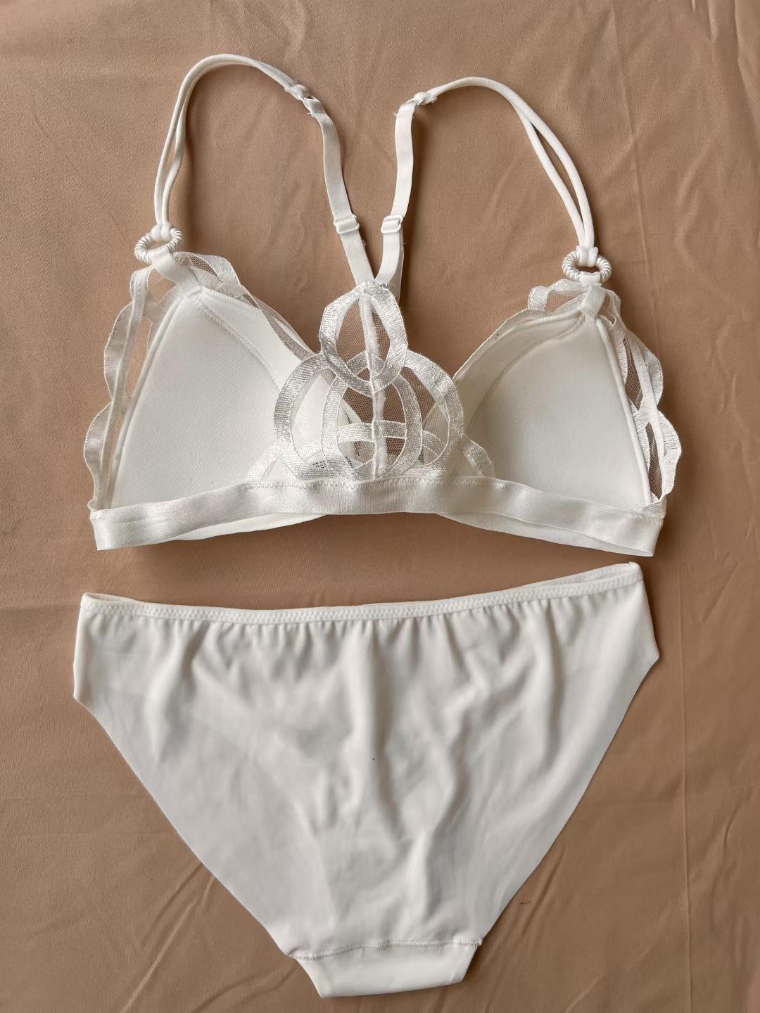 Ropa interior sexy de encaje hueco estilo francés de algodón fino para mujer, pecho grande, copa pequeña, tirantes removibles, hermoso conjunto de brasier de espalda.