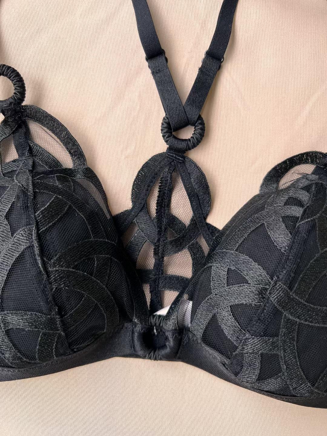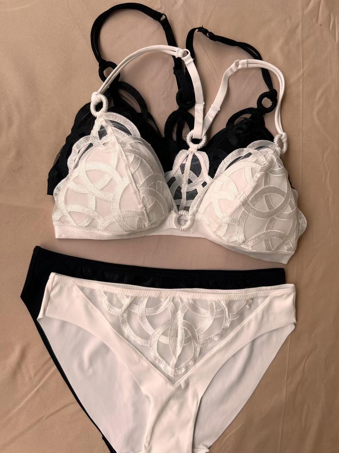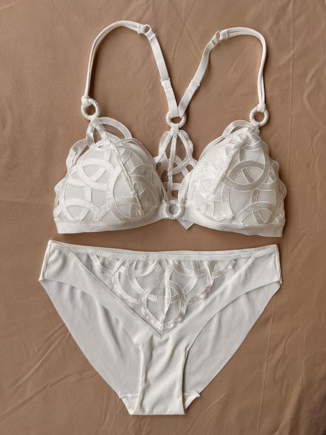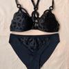Ropa interior sexy de encaje hueco estilo francés de algodón fino para mujer, pecho grande, copa pequeña, tirantes removibles, hermoso conjunto de brasier de espalda.