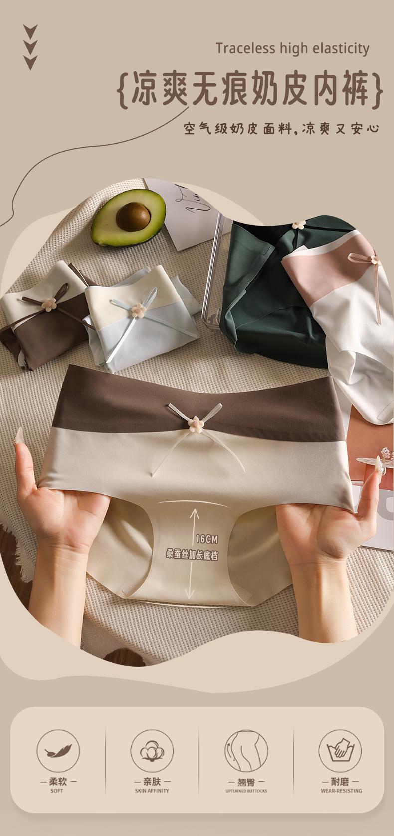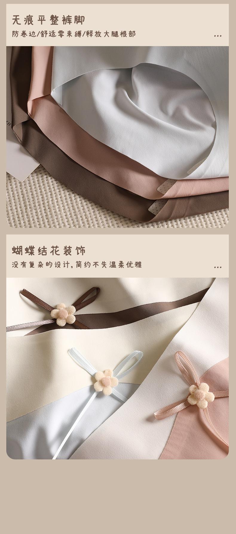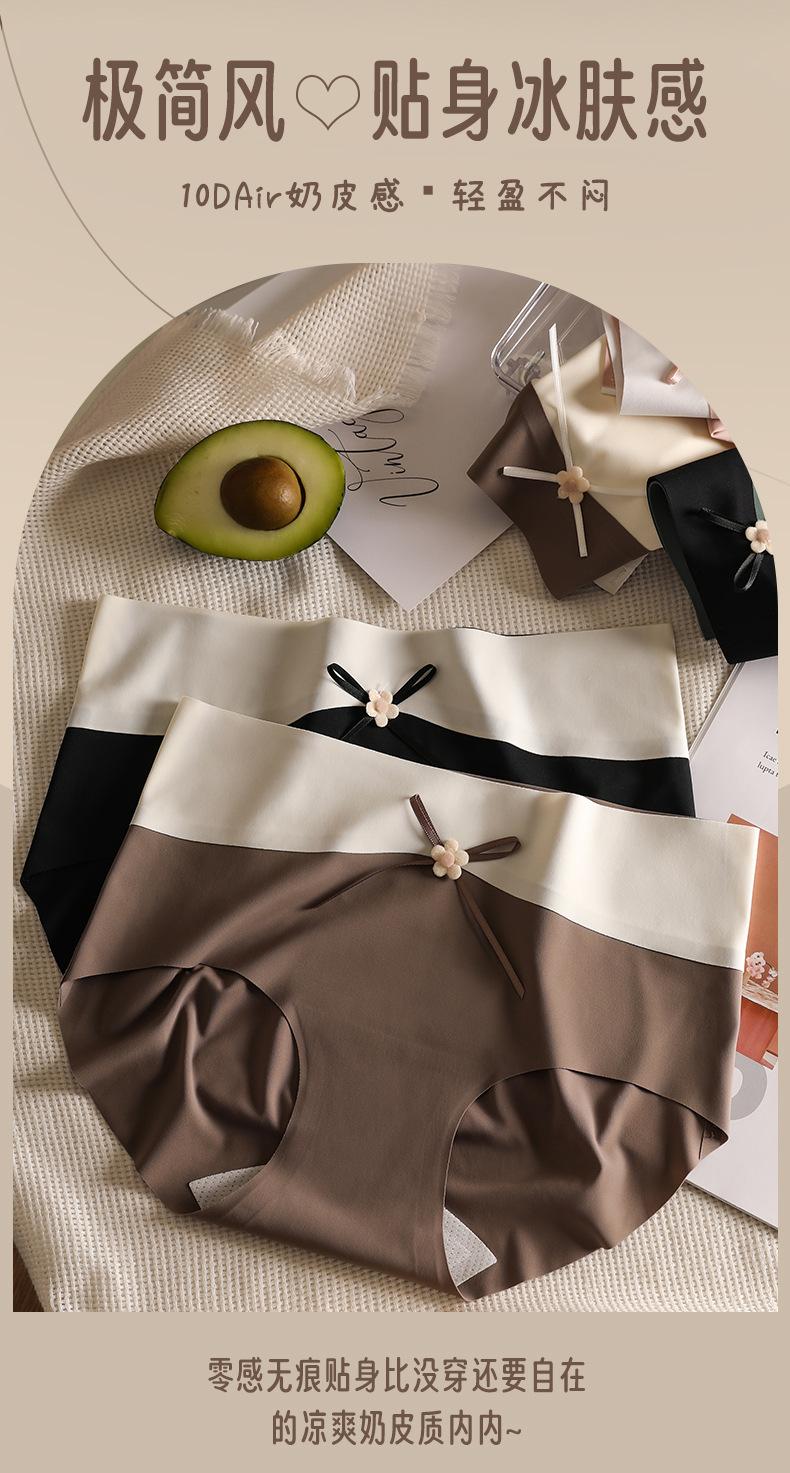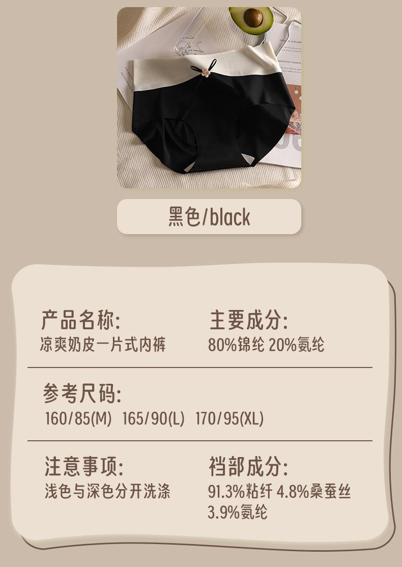 Ropa interior de seda de hielo, de cuero color leche, sin marcas para niñas, color melocotón, de algodón puro, antibacteriana, de seda, de secado rápido, con lazo y cintura media.
