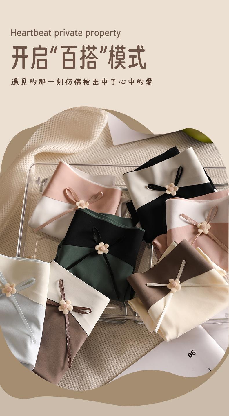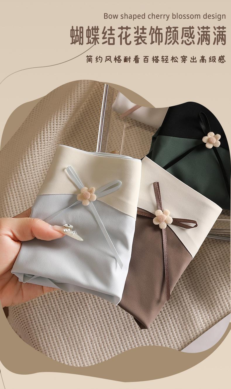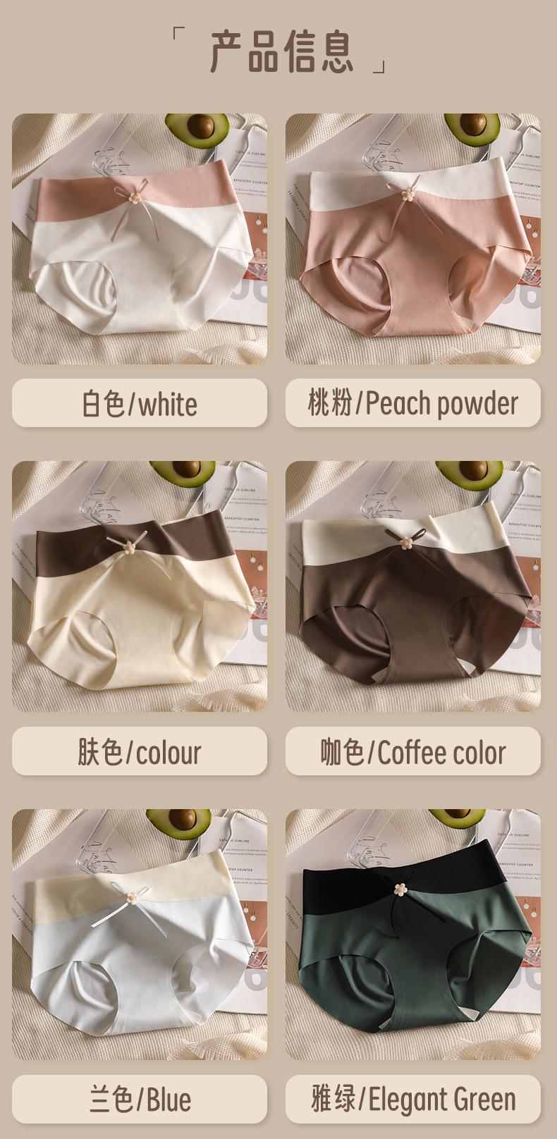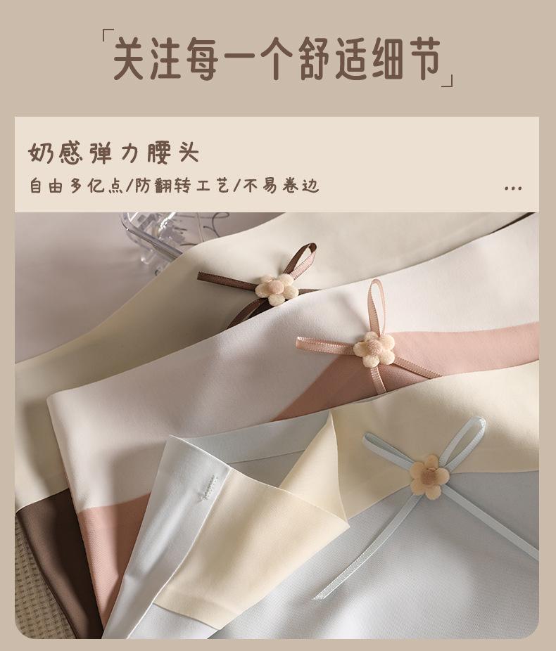 Ropa interior de seda de hielo, de cuero color leche, sin marcas para niñas, color melocotón, de algodón puro, antibacteriana, de seda, de secado rápido, con lazo y cintura media.