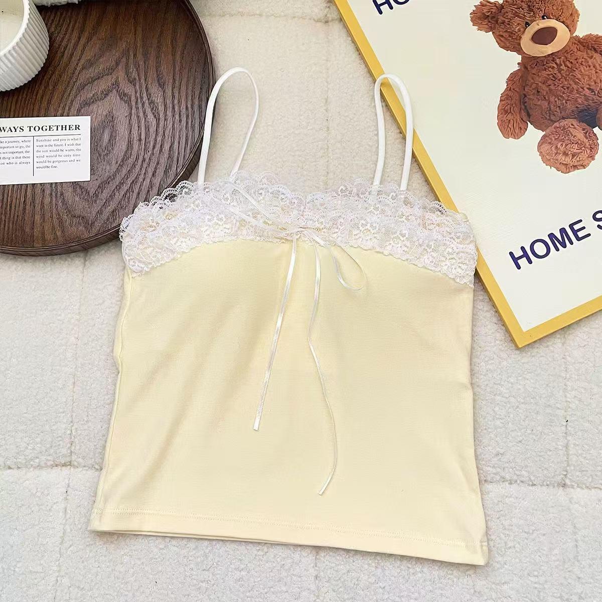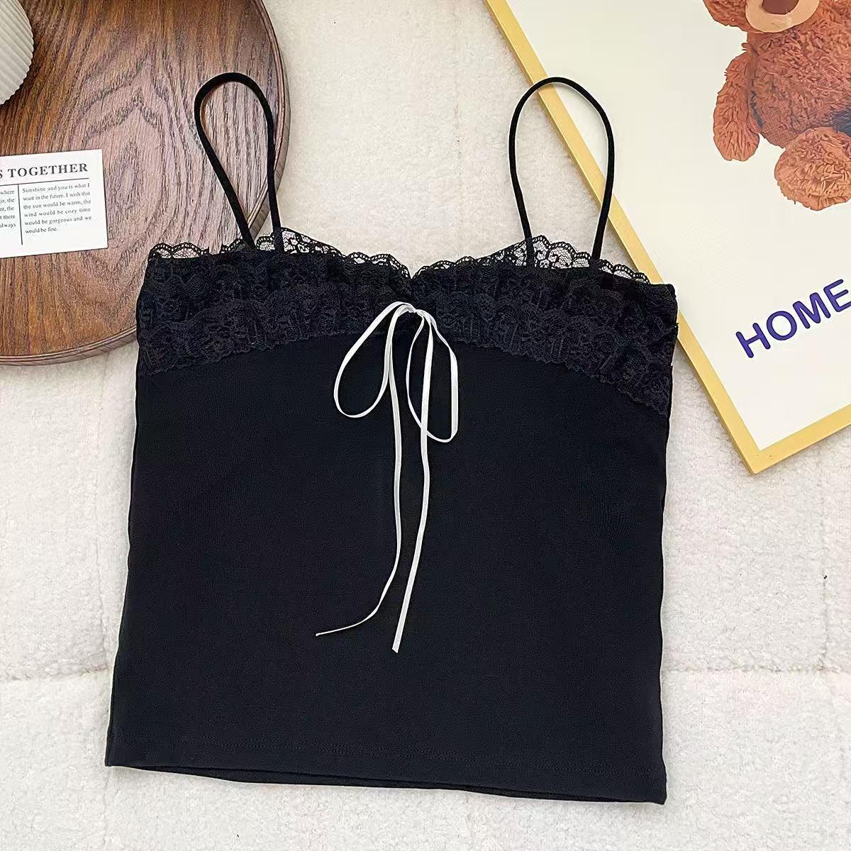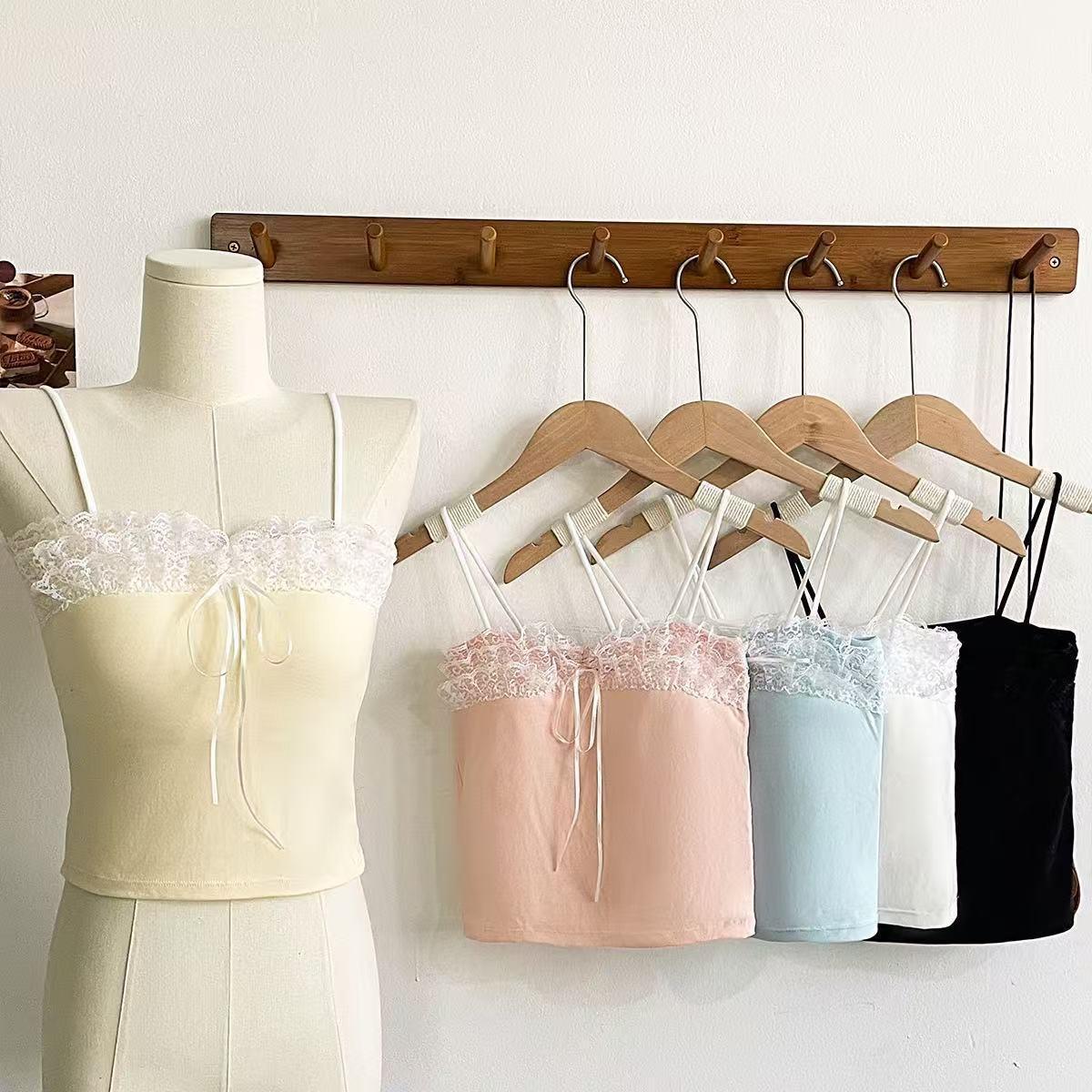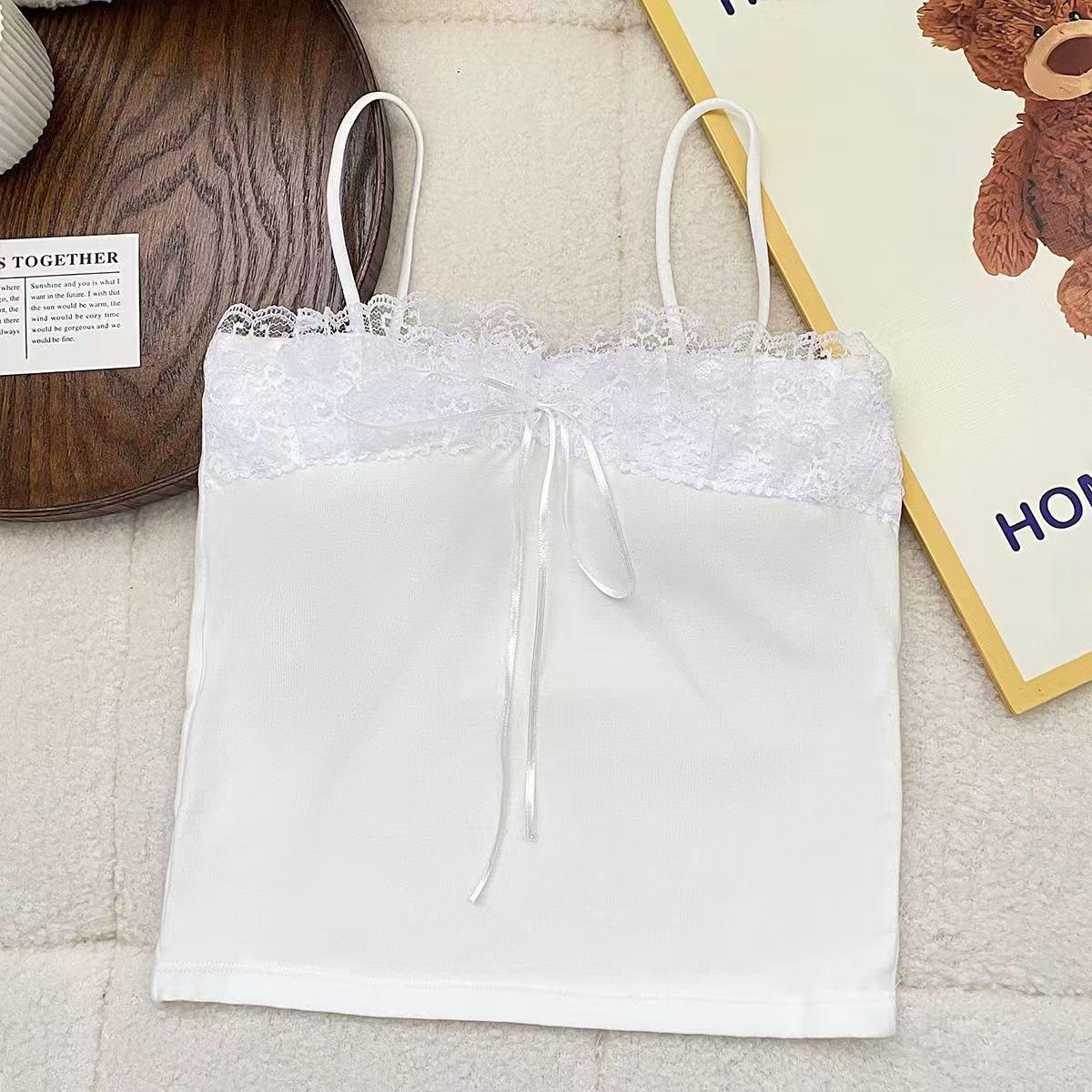 Camisola de Estilo Dulce con Encaje para Mujer, Nueva Blusa Versátil sin Mangas de Corte Ajustado