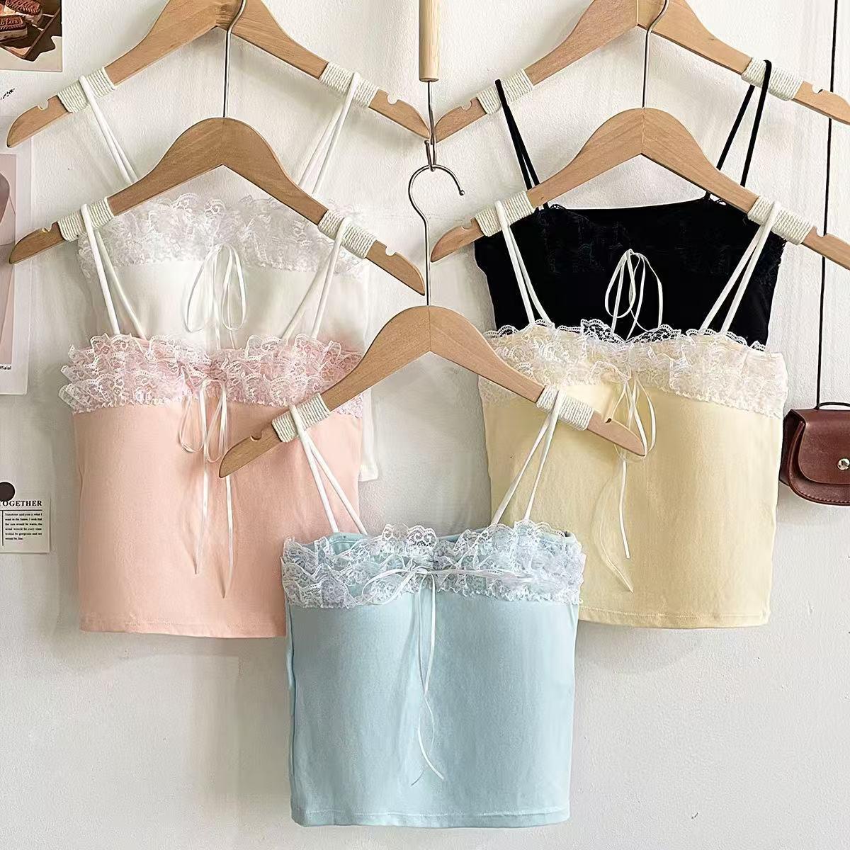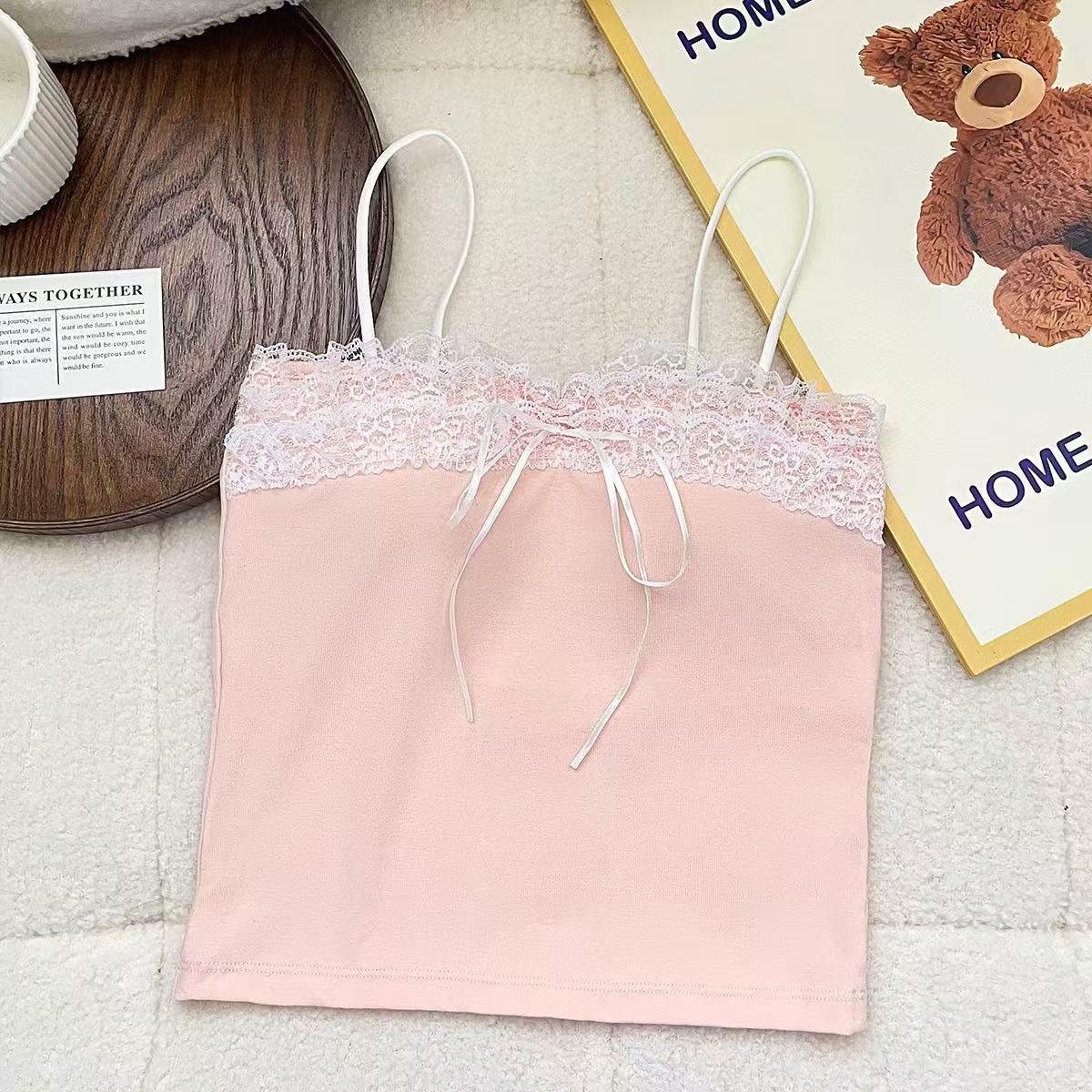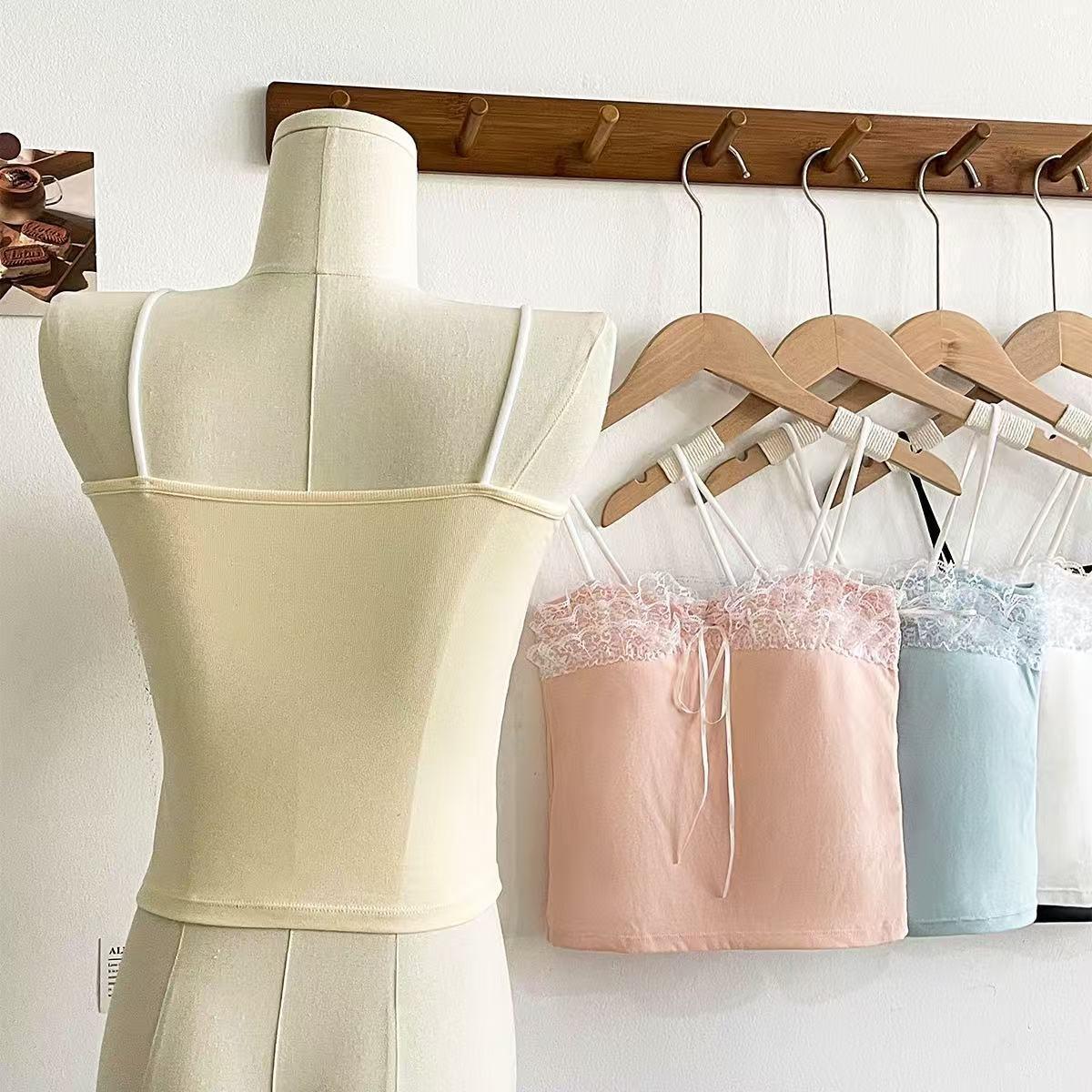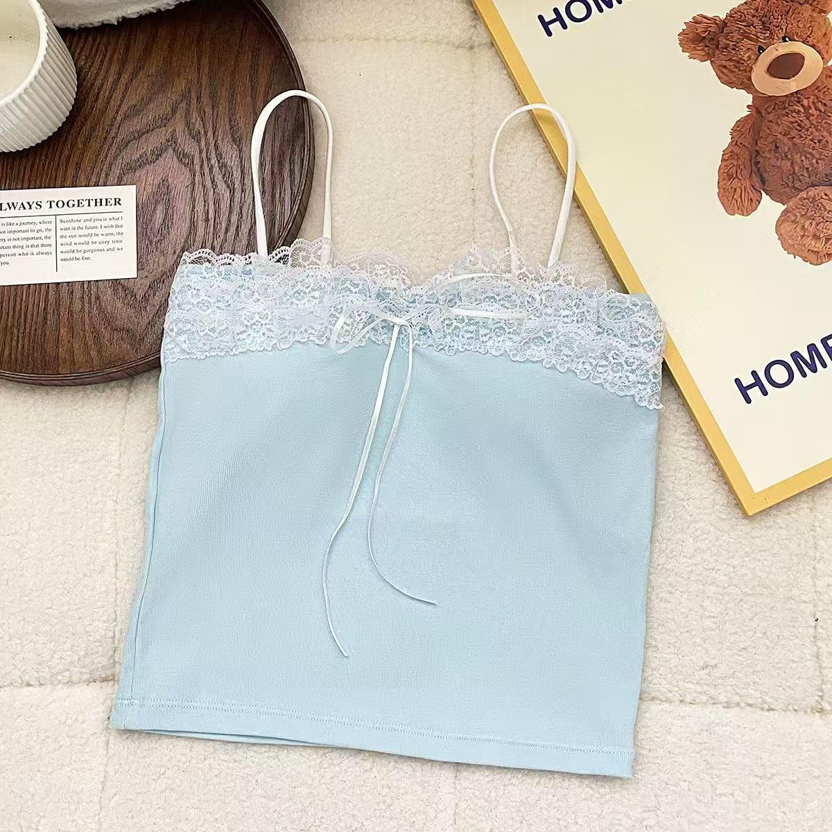 Camisola de Estilo Dulce con Encaje para Mujer, Nueva Blusa Versátil sin Mangas de Corte Ajustado