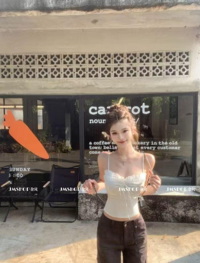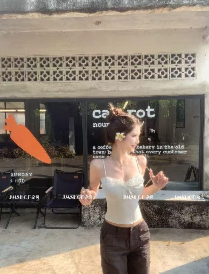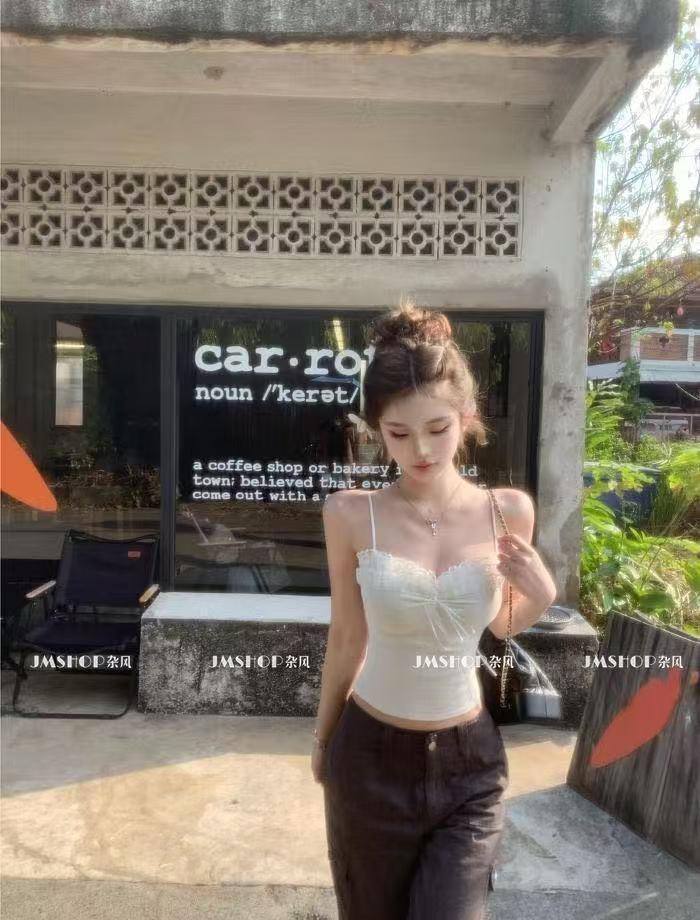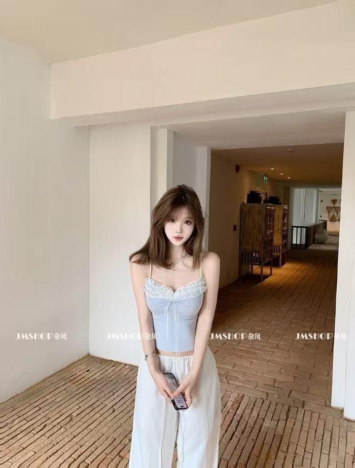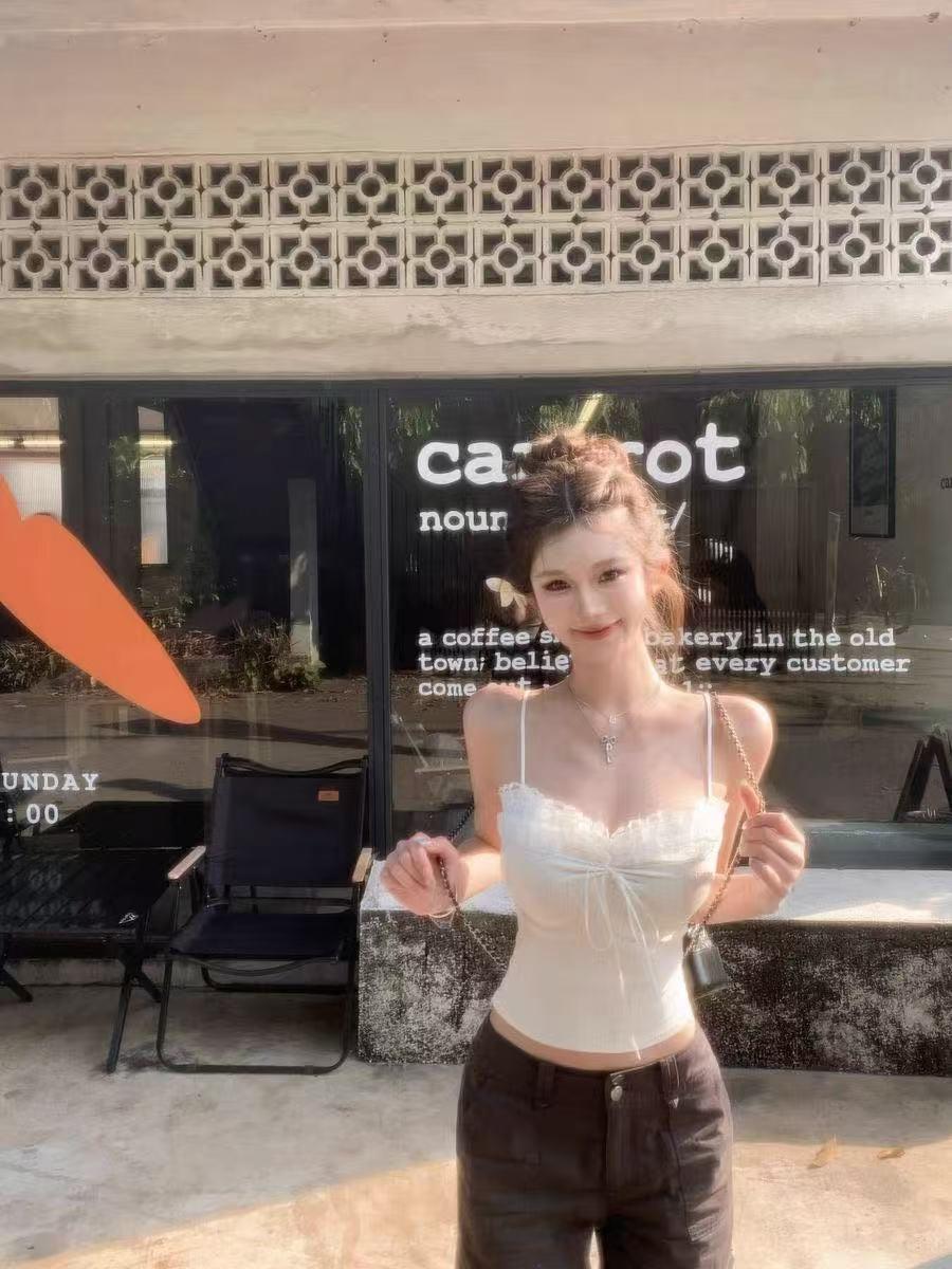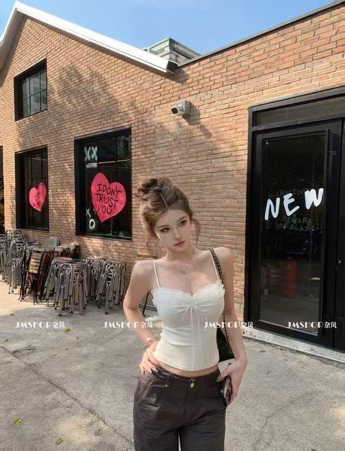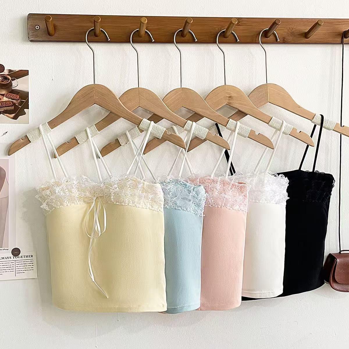 Camisola de Estilo Dulce con Encaje para Mujer, Nueva Blusa Versátil sin Mangas de Corte Ajustado