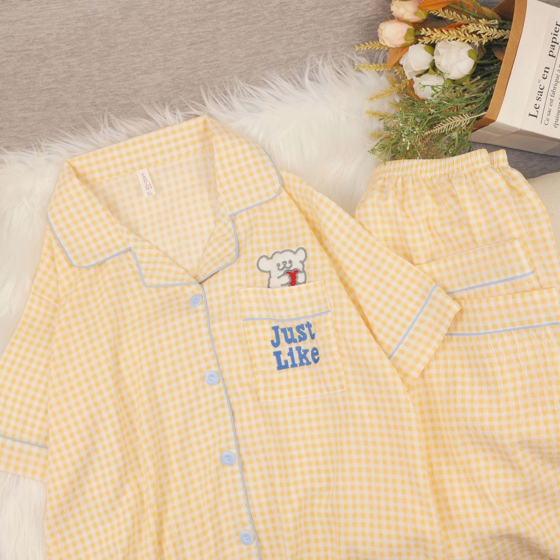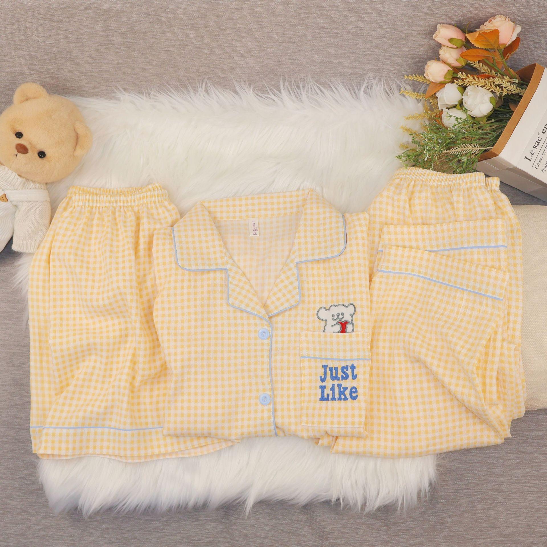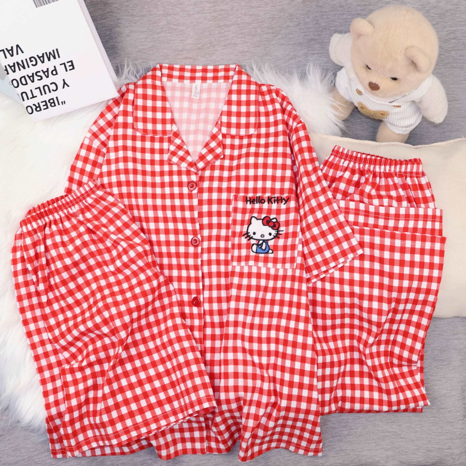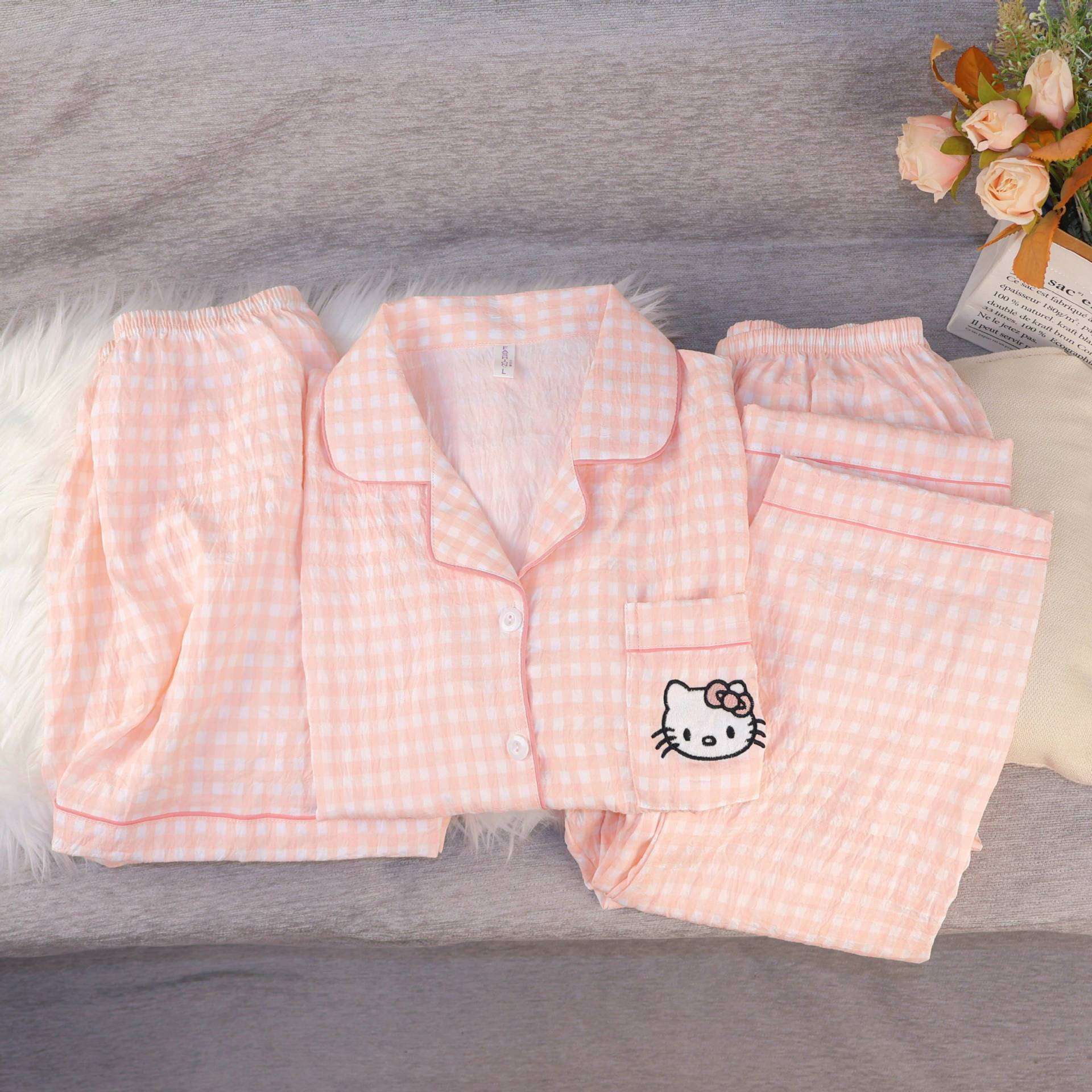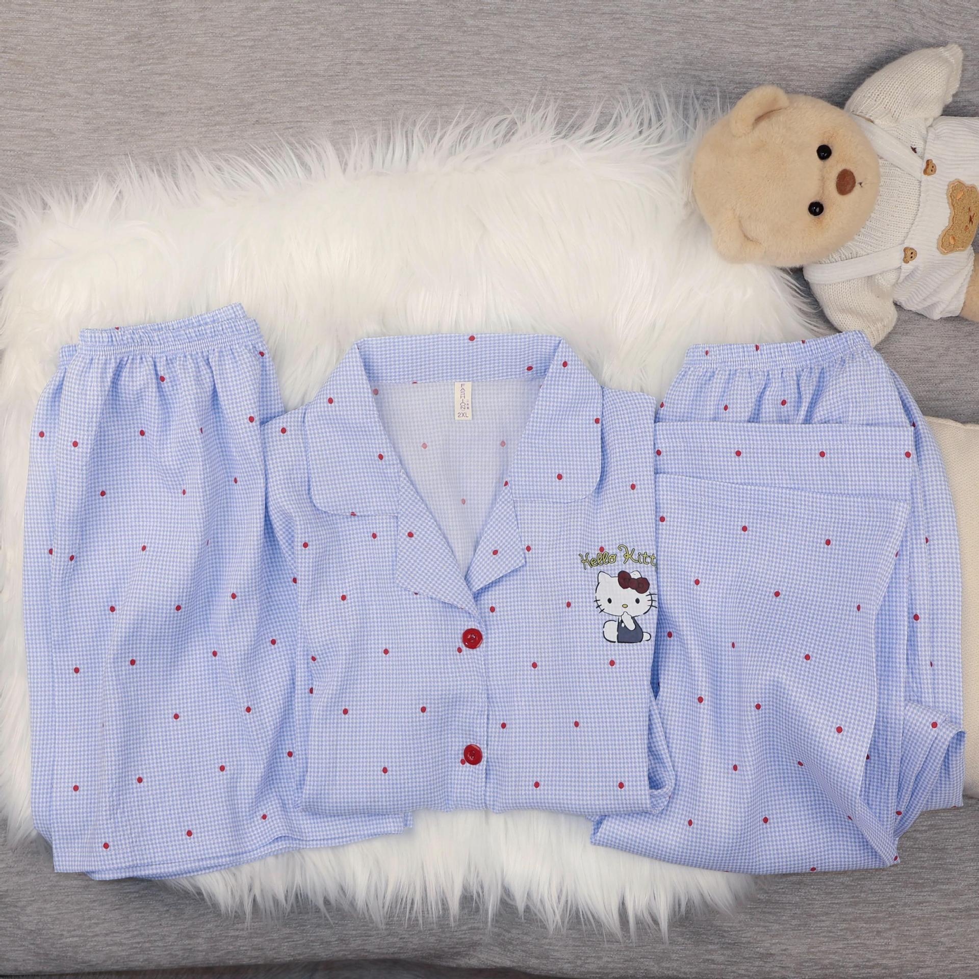 Algodón Nube Nuevo Dibujo Animado Pijama de Tres Piezas para Mujer Dulce Lindo Manga Corta Shorts Traje Ropa para el Hogar Cárdigan Solapa