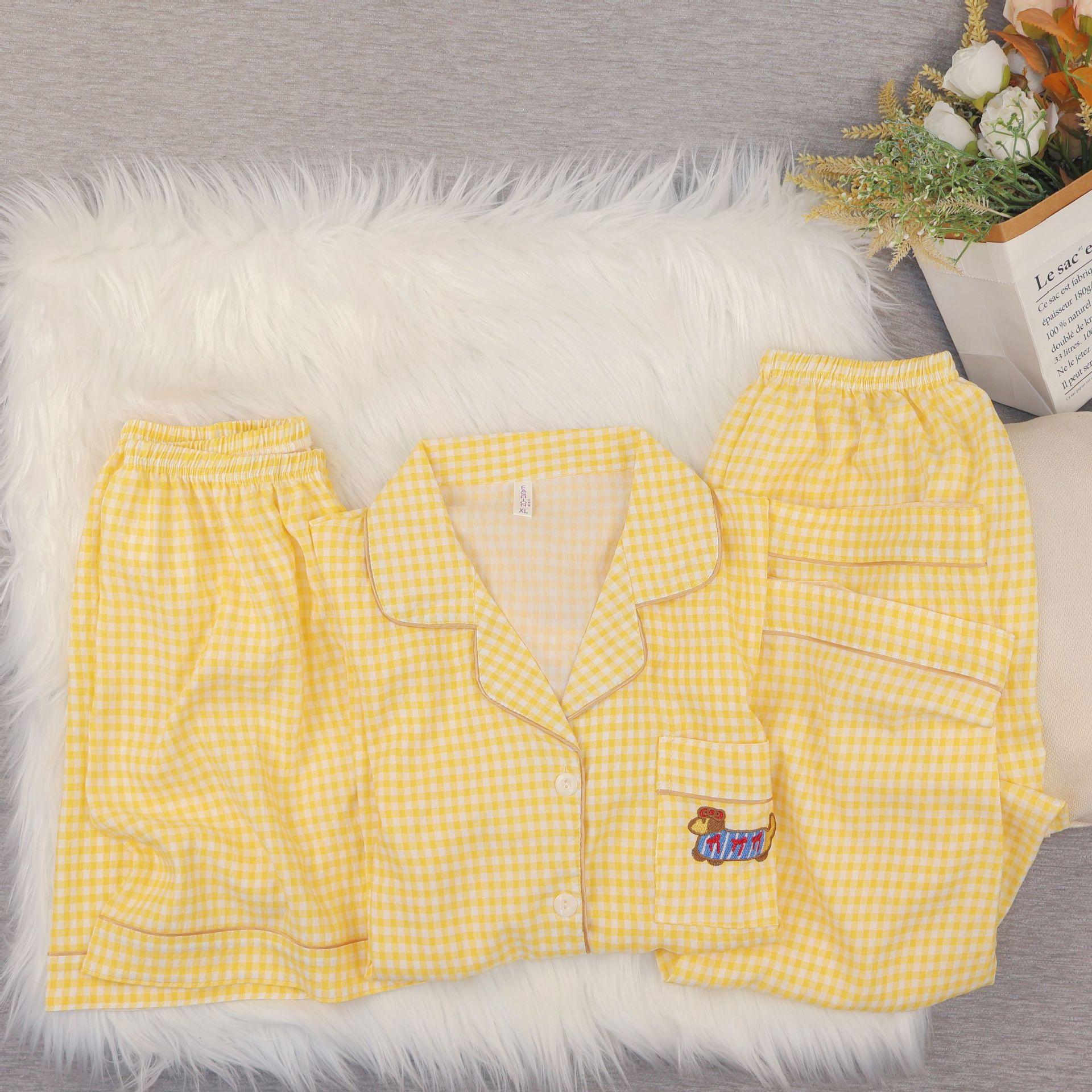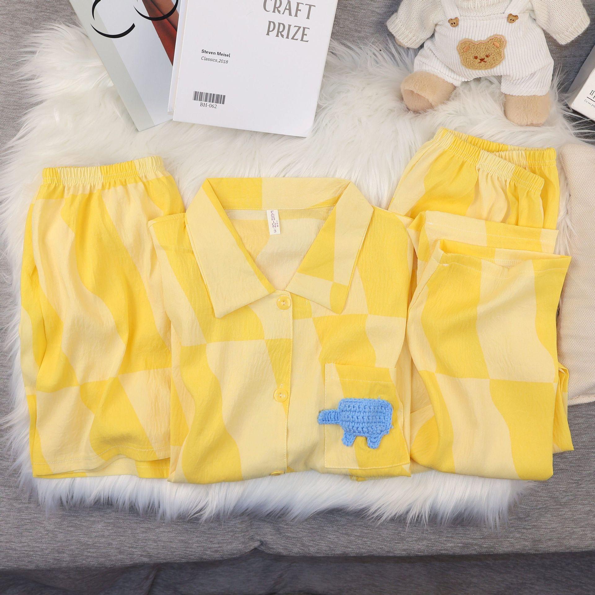 Cloud cotton yellow checkered letter dog three-piece set, Yunduo cotton blue checkered red dot kt three-piece ...
