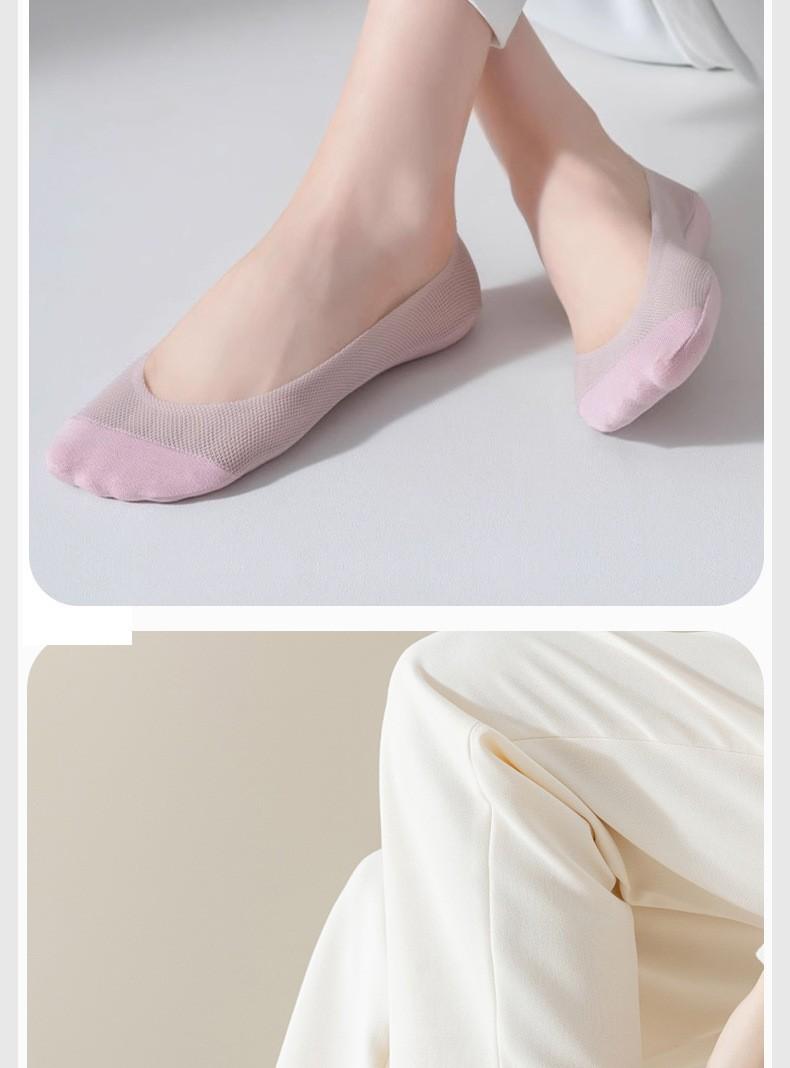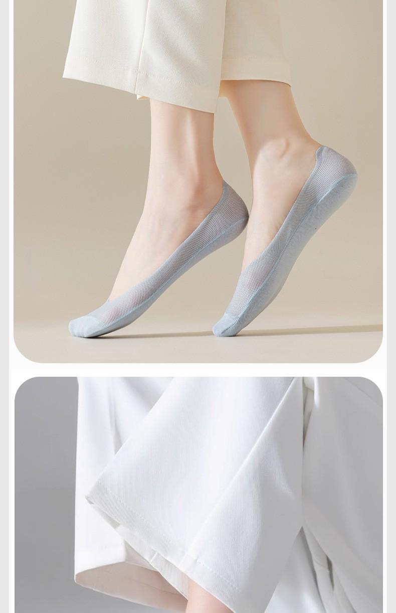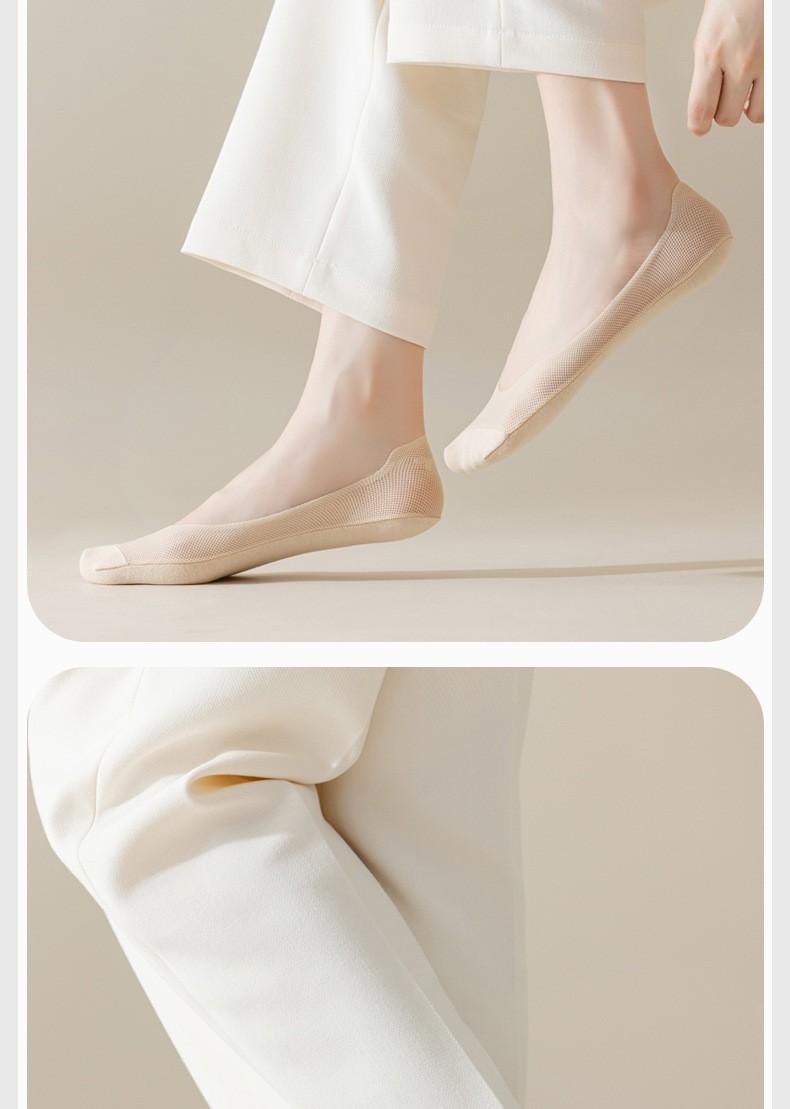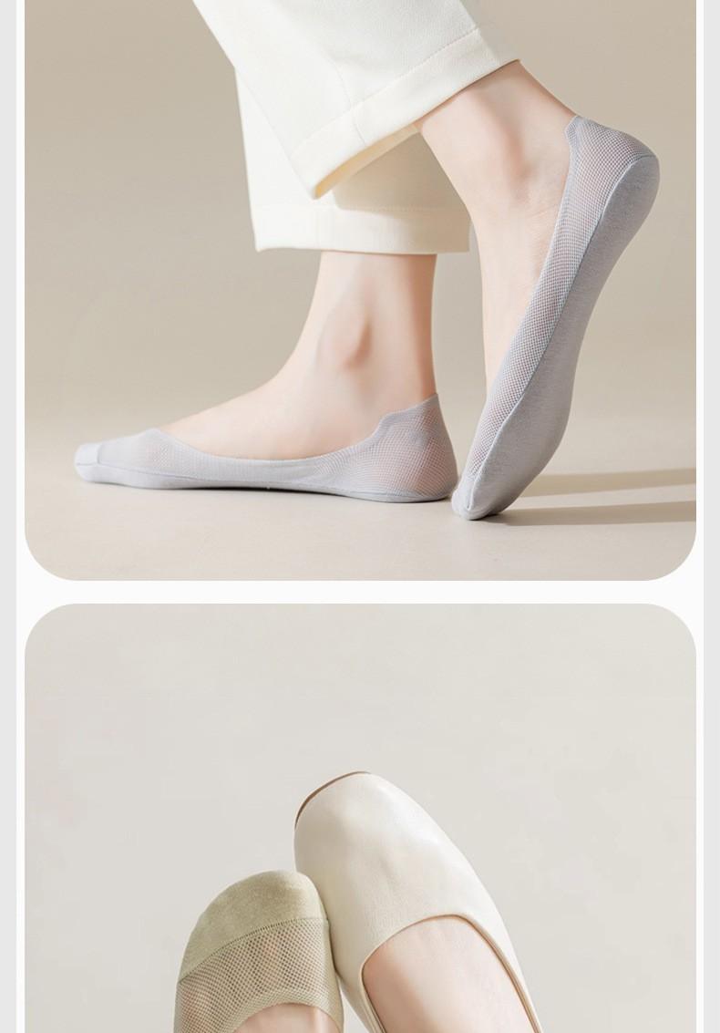 Calcetines de Barco para Mujer Verano Delgados Malla de Hielo Transpirable Algodón Fondo Silicona Antideslizantes No se Caen Boca Baja Calcetines Planos