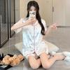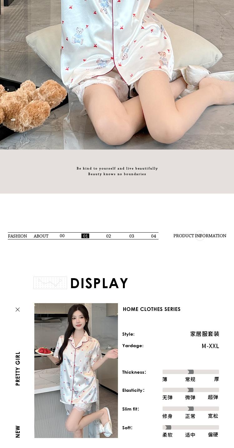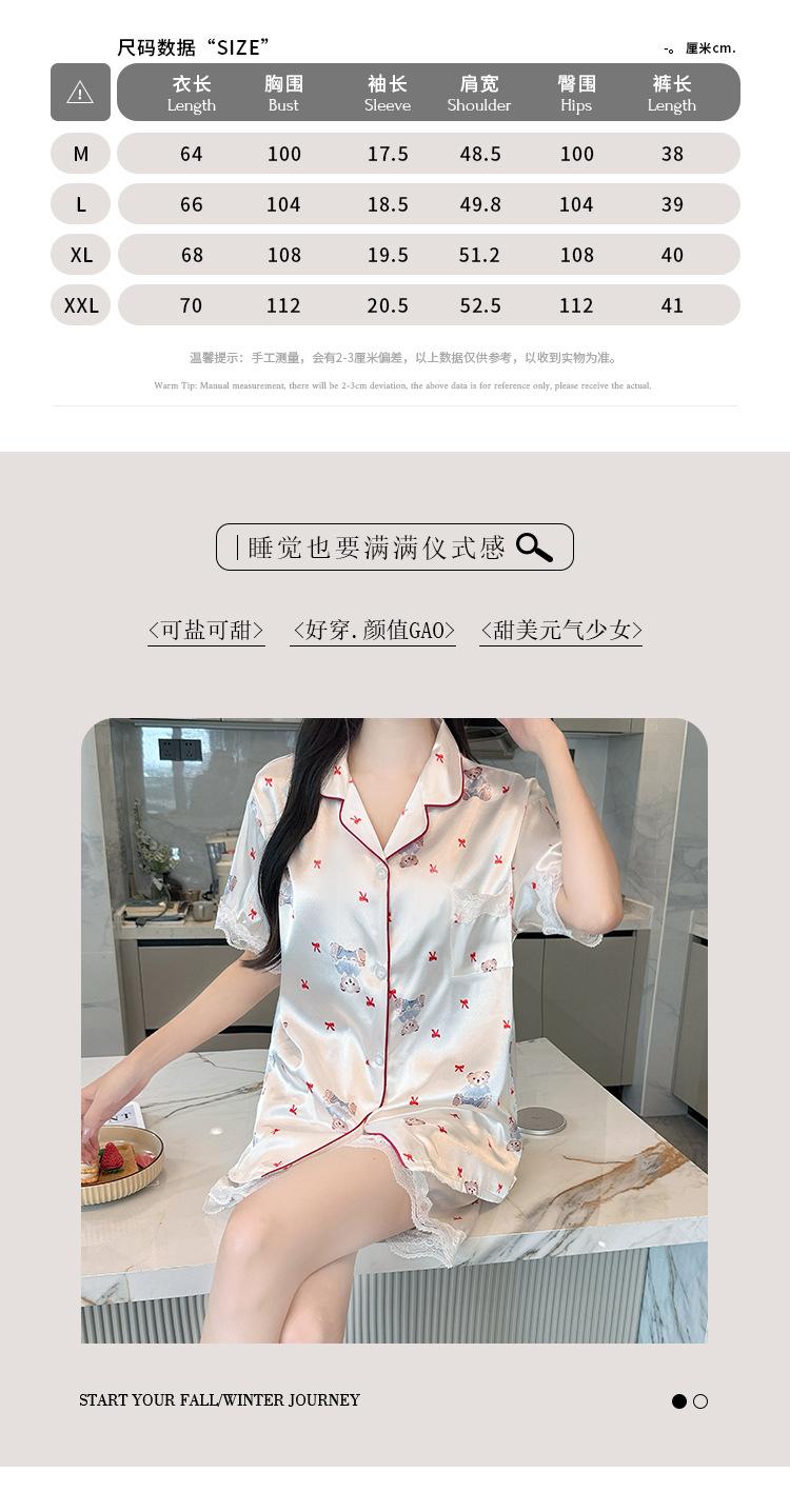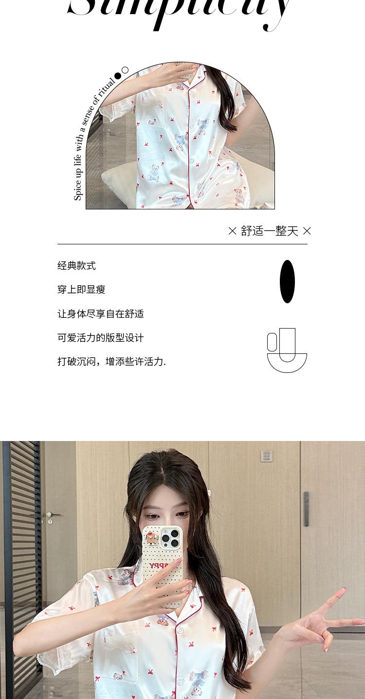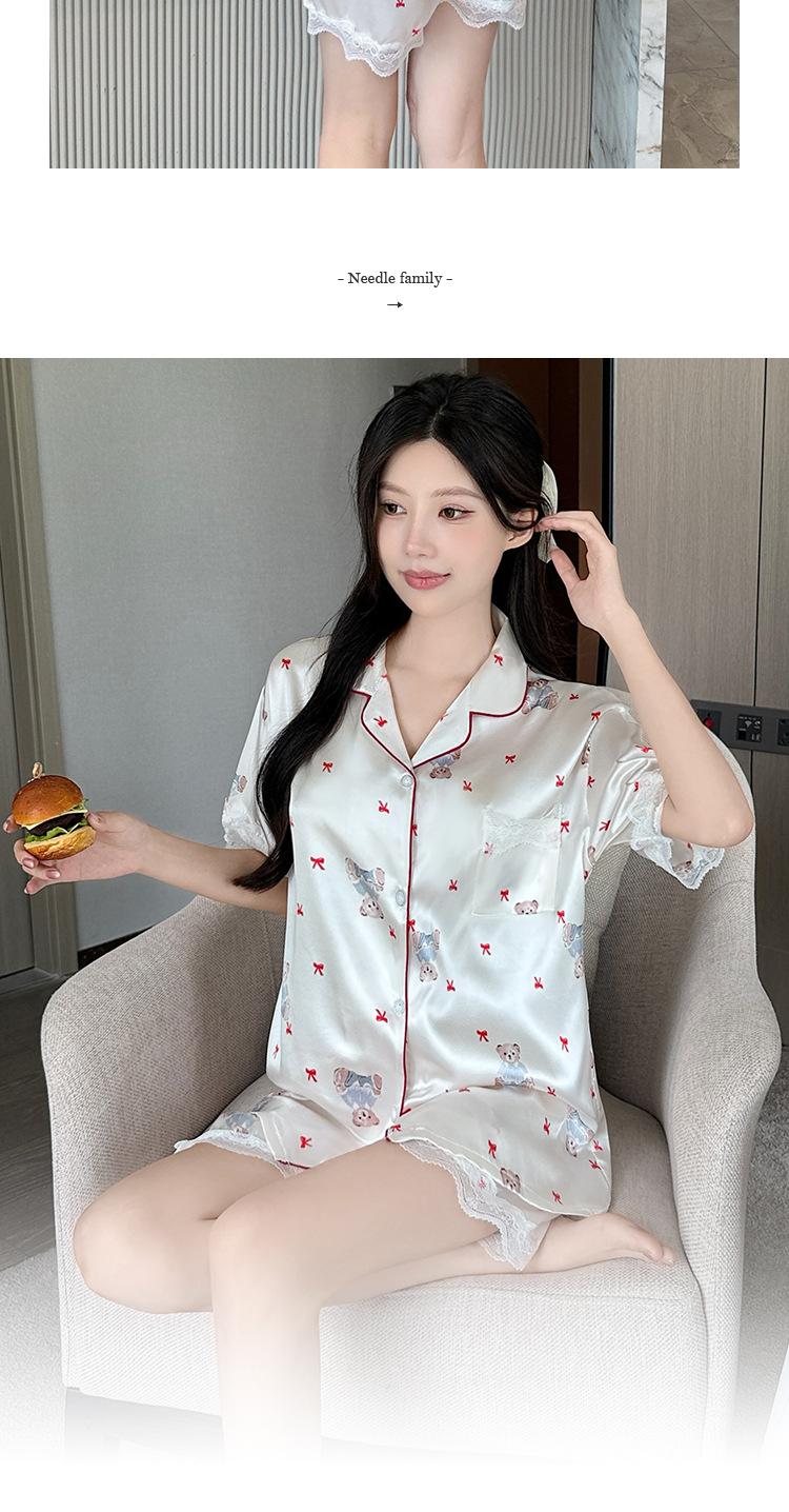 Pijama Estampado de Niña Coreana Mujer Verano Nuevo Dibujo Animado Casual Oso Satén Seda de Hielo Traje Ropa para el Hogar Venta al por Mayor