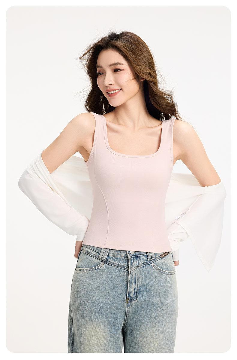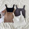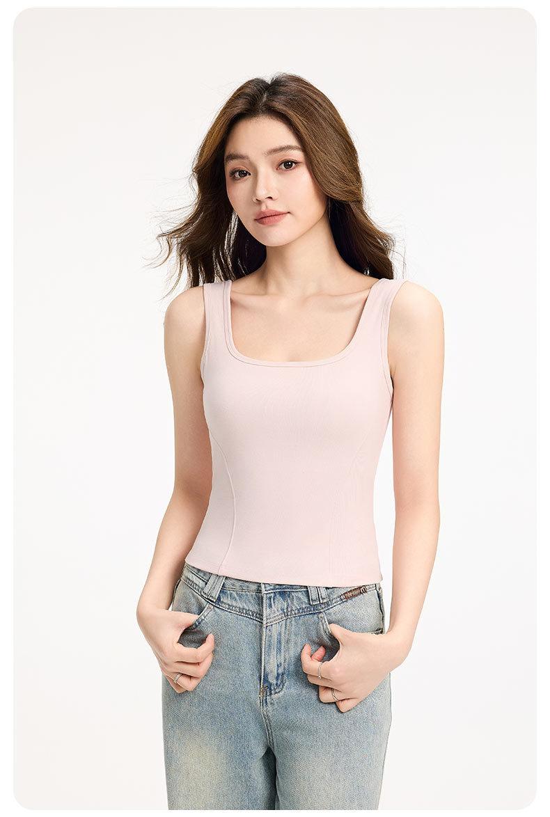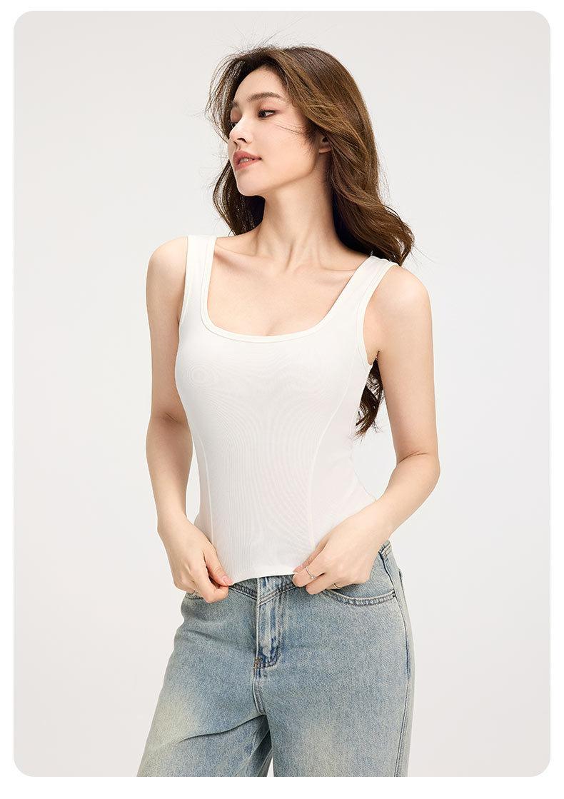 Camisola de Tirantes Anchos para Mujer Verano Ajustada Adelgazante Combinable Top para Mujer Cuello Base Chaleco con Almohadilla para el Pecho