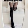 Calcetines hasta la rodilla con cola de gato de lazo negro Dulce chica Jk Lindo calcetines hasta el muslo Lolita Terciopelo Falso Alto
