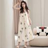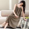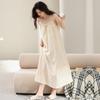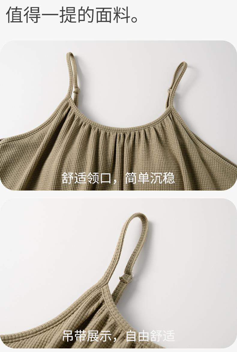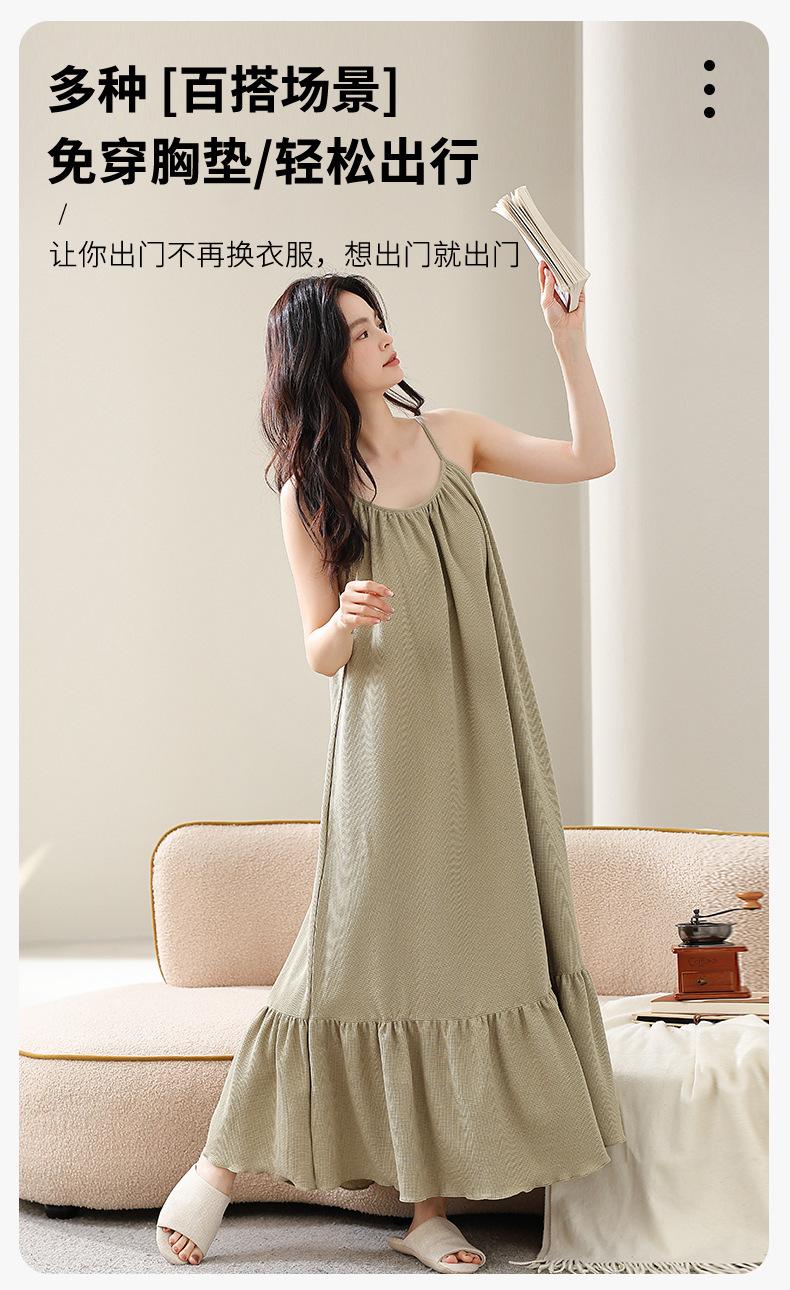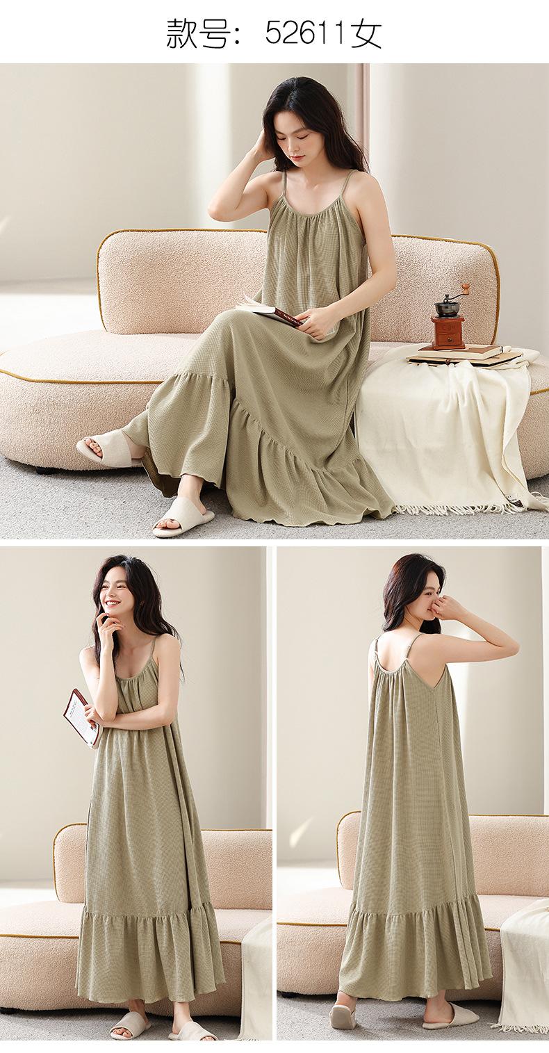 Pijama de Verano Waffle Algodón Puro Manga Corta Camisón con Tirantes para Mujer Falda Midi de Alta Gama Estilo Dulce de Verano Ropa para el Hogar