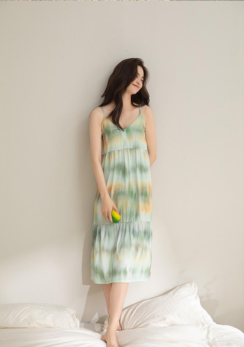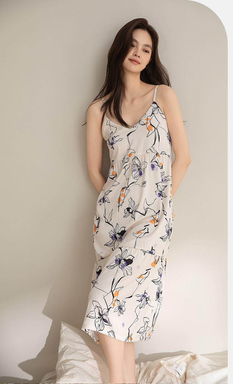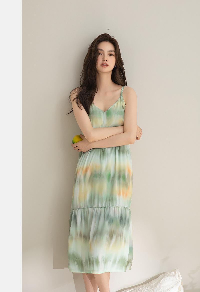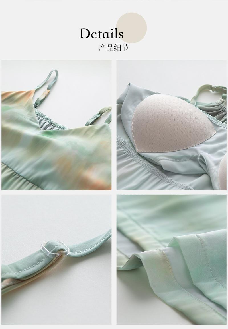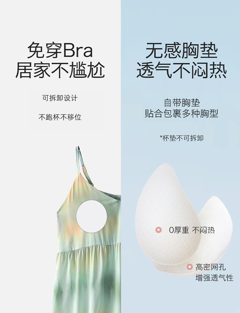 Camisón para Mujer Verano Seda Hielo y Nieve con Almohadilla para el Busto Incorporada Camisola Verano Wabi-Sabi Pijama Sexy para Mujer 2025 Nuevo Estilo