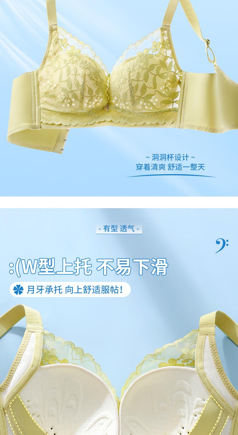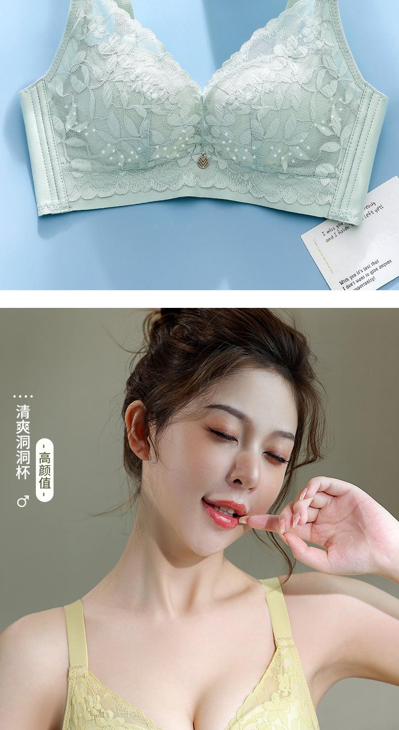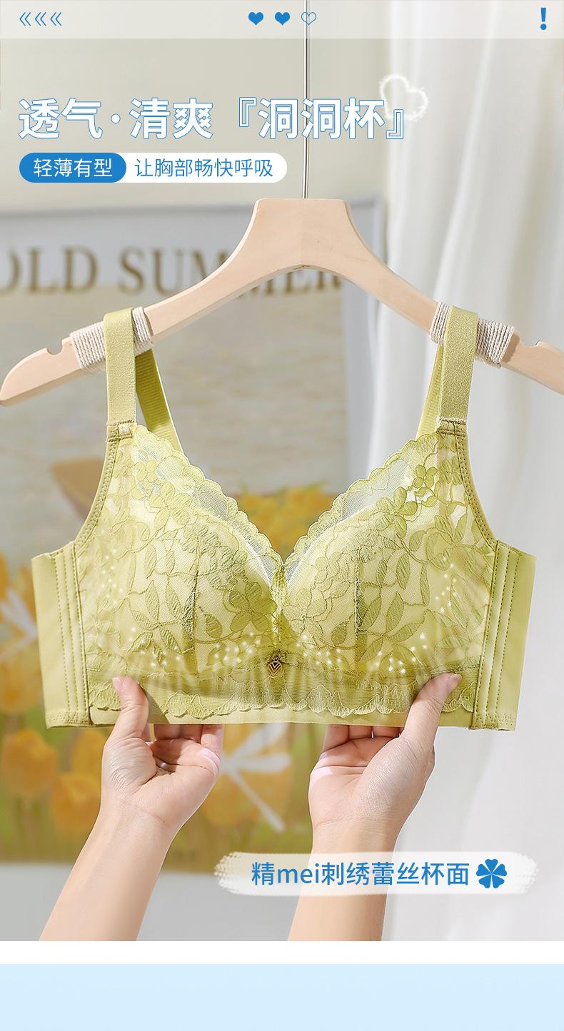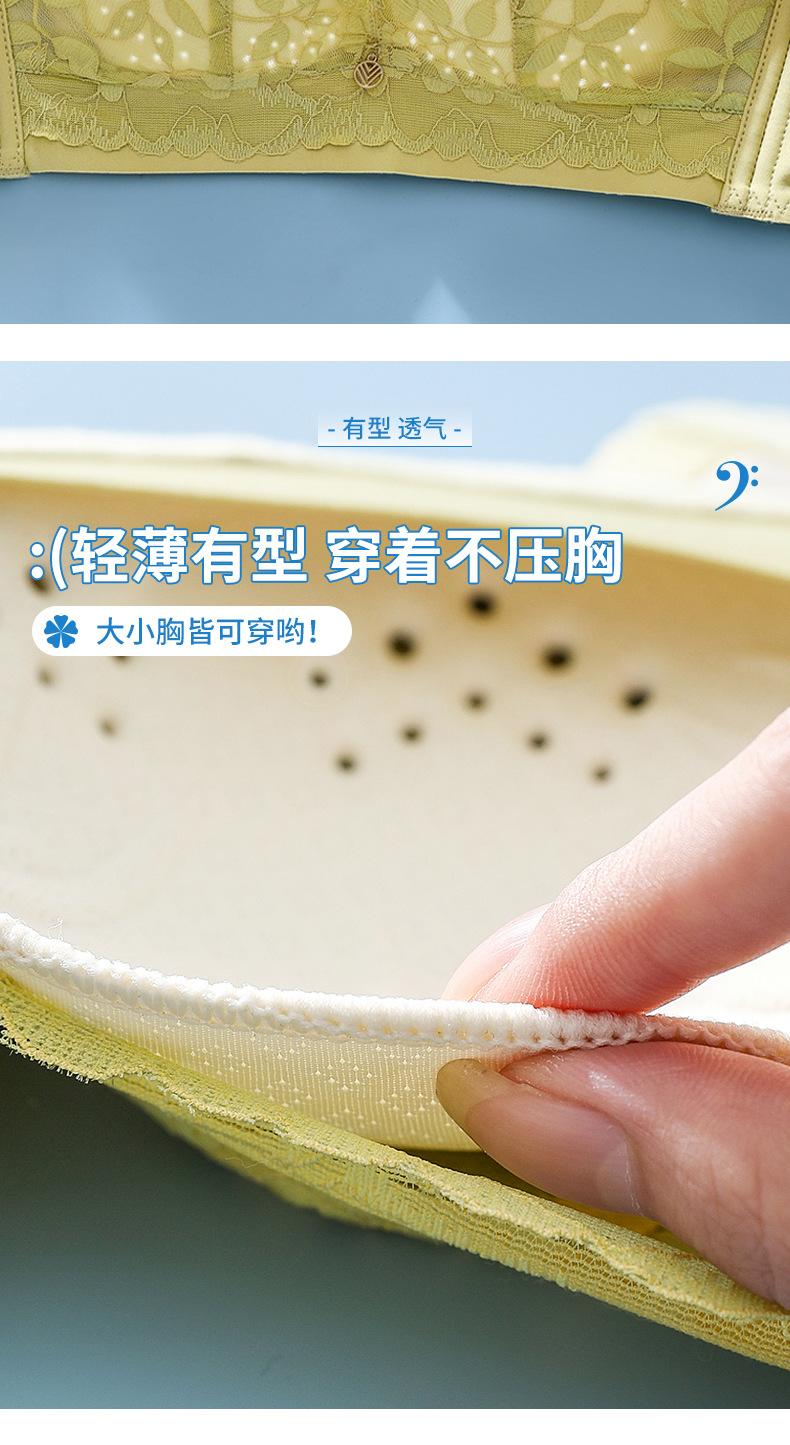 Ropa interior ultrafina transpirable con agujeros en la pared para mujer sin aros push-up anti-caída ajustable con encaje