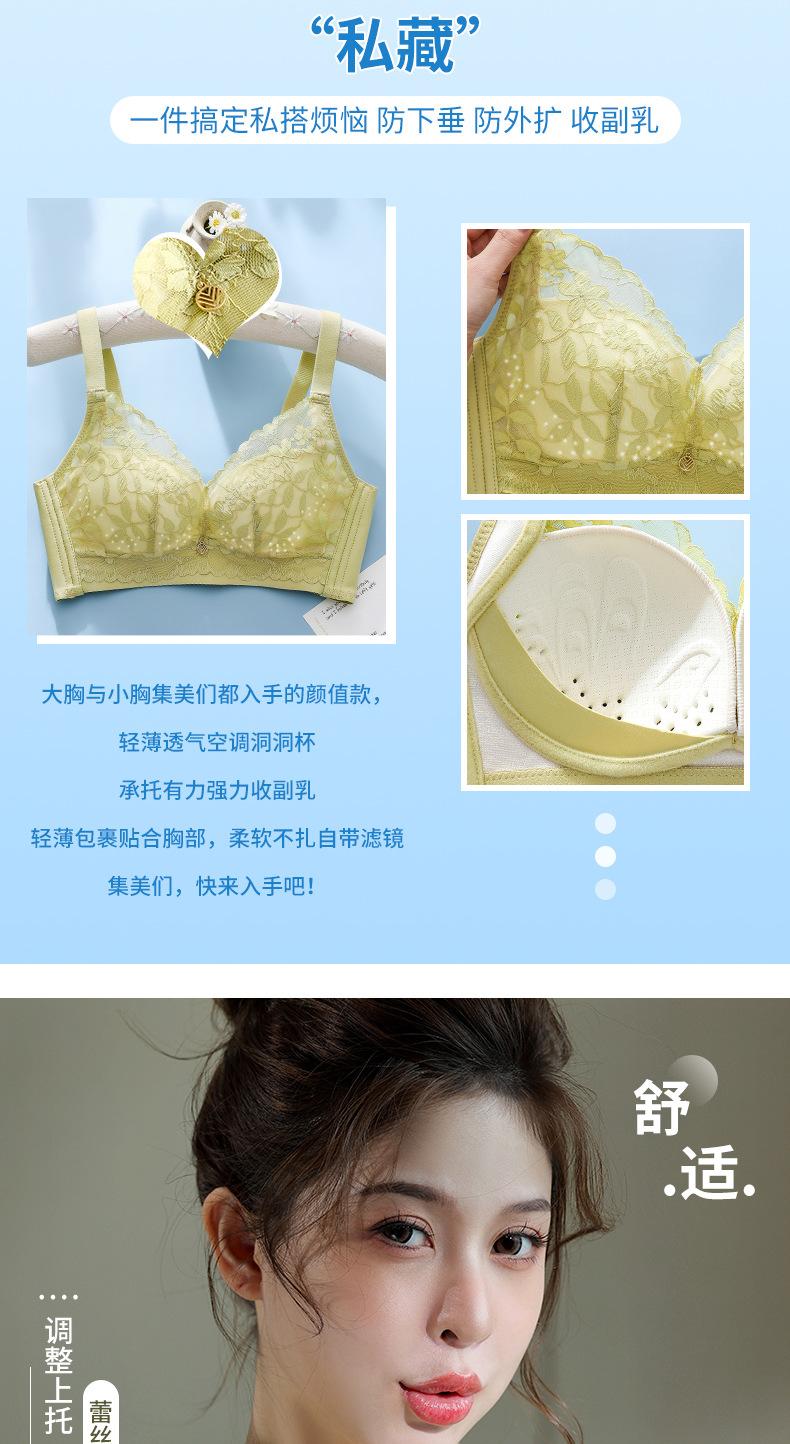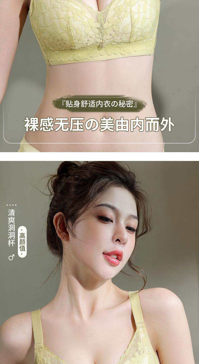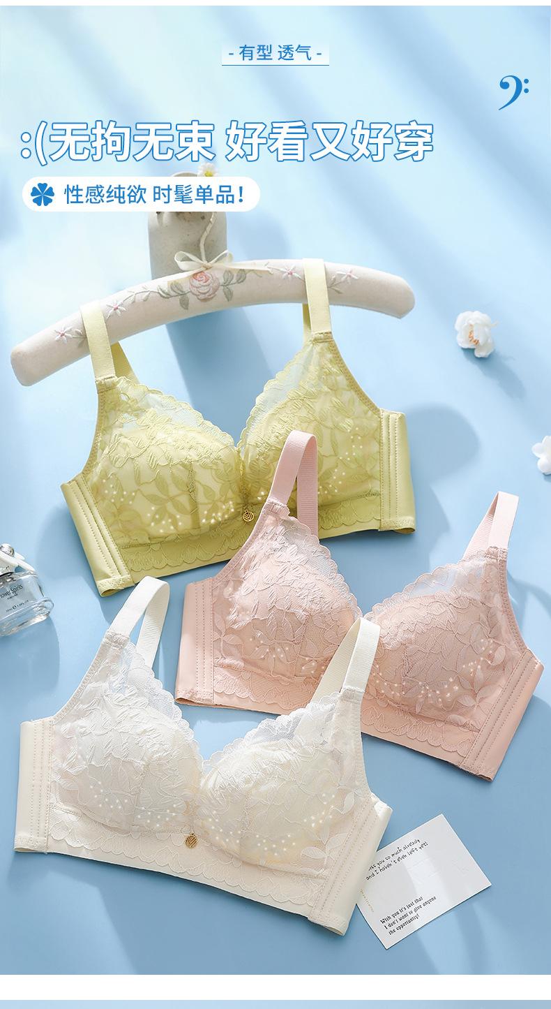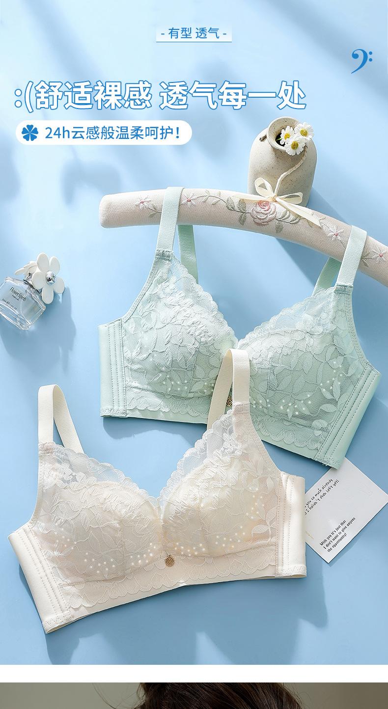 Ropa interior ultrafina transpirable con agujeros en la pared para mujer sin aros push-up anti-caída ajustable con encaje