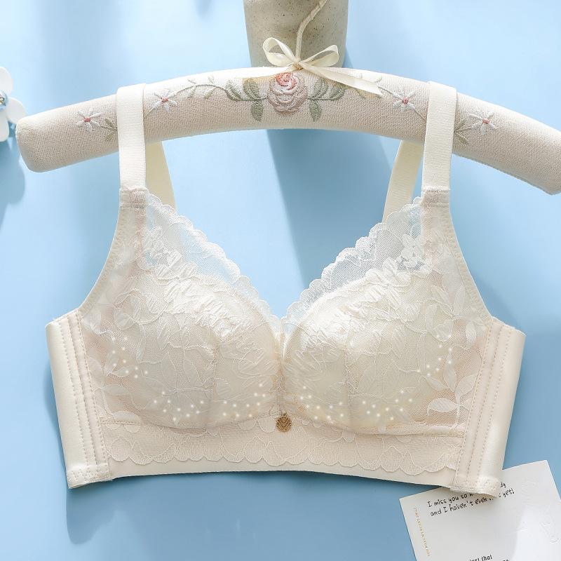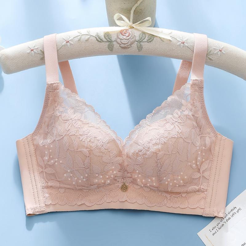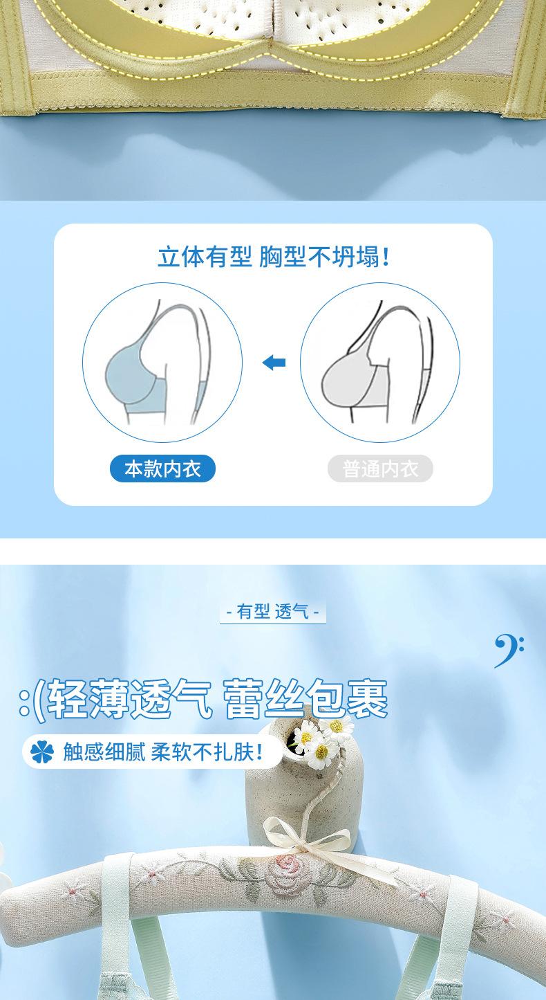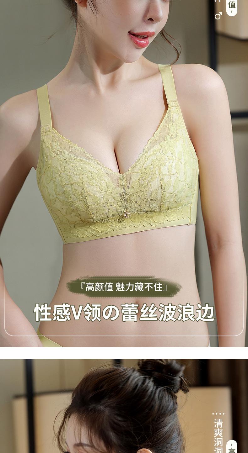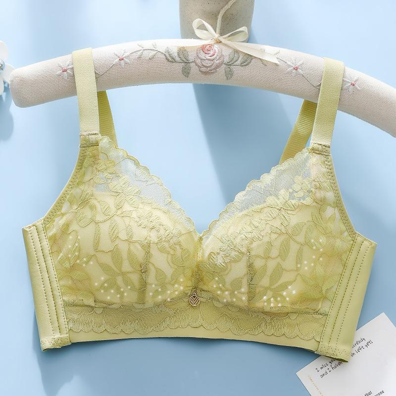 Ropa interior ultrafina transpirable con agujeros en la pared para mujer sin aros push-up anti-caída ajustable con encaje
