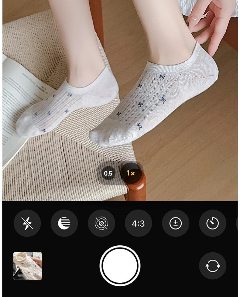 Calcetines de Verano de Malla para Mujer Delgados de Boca Baja Invisibles Calcetines de Algodón para Mujer con Lazo Japonés Calcetines de Barco para Mujer Calcetines Cortos