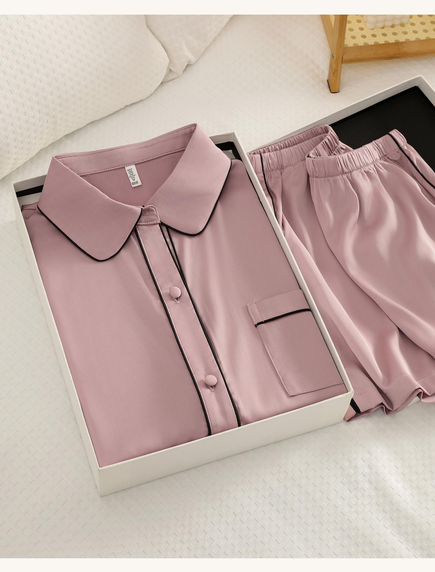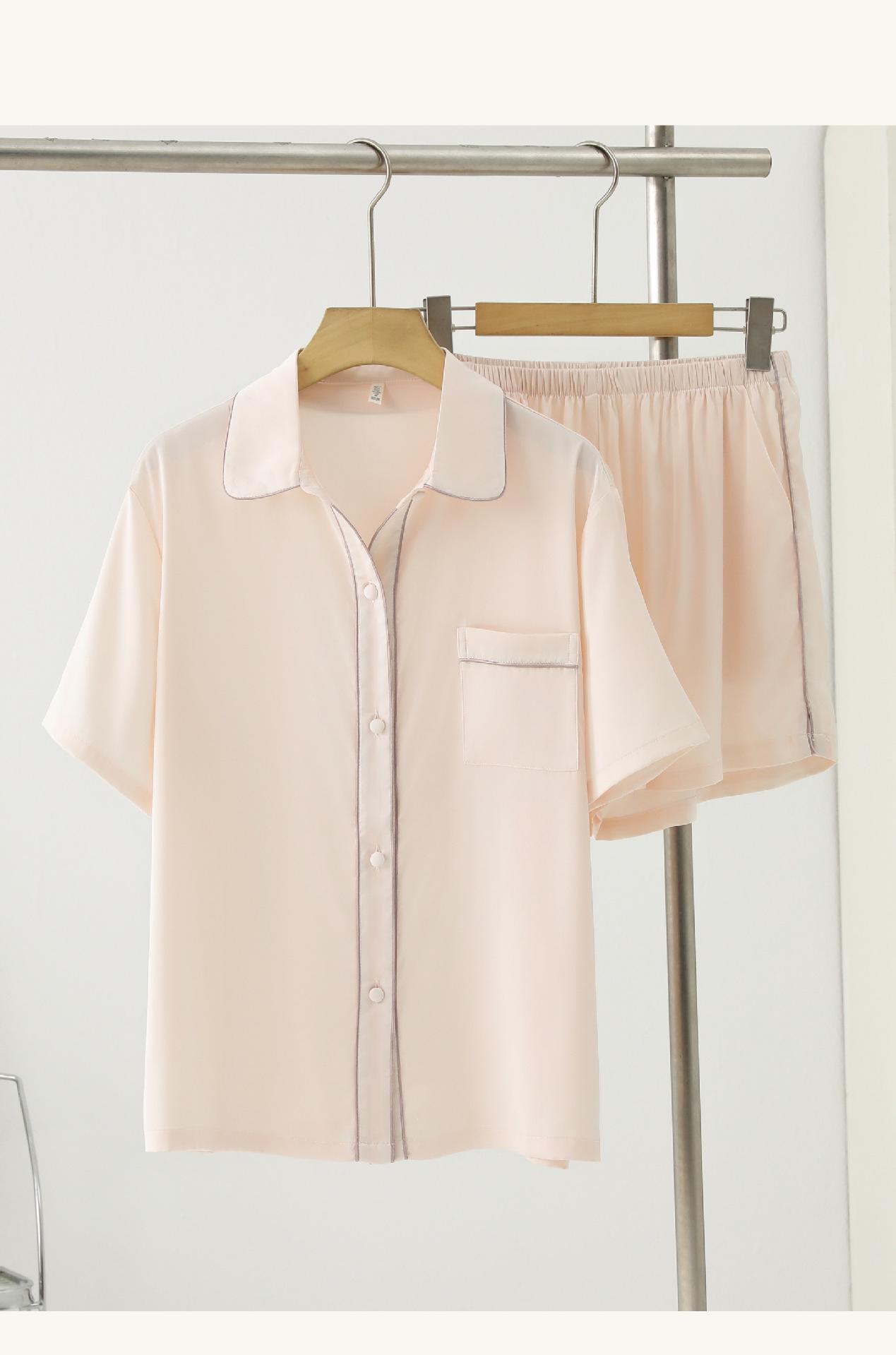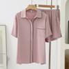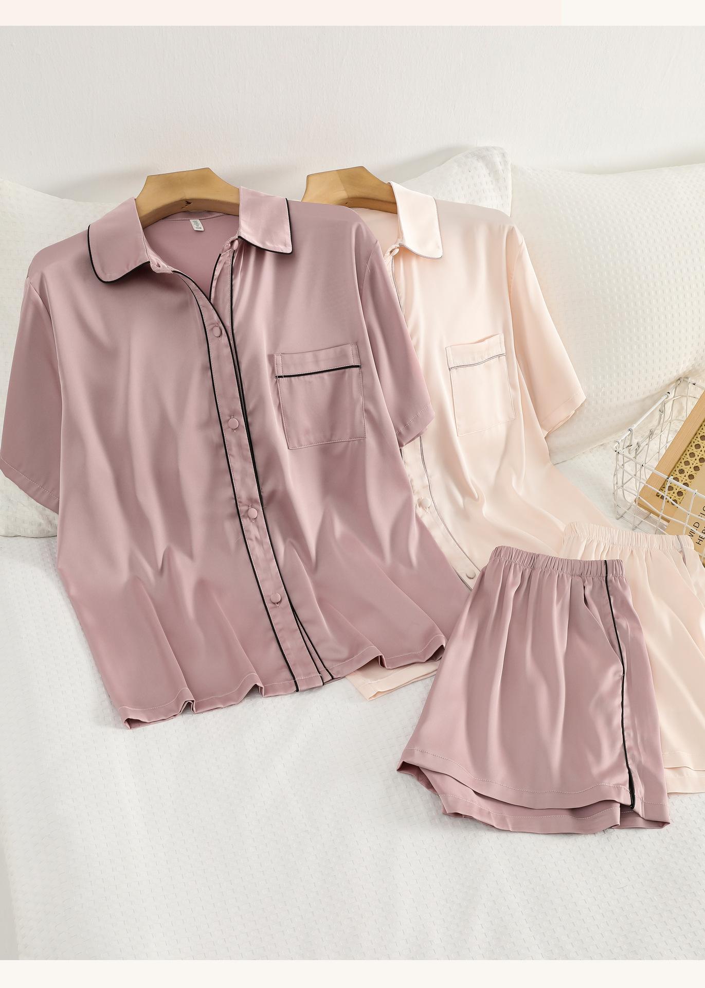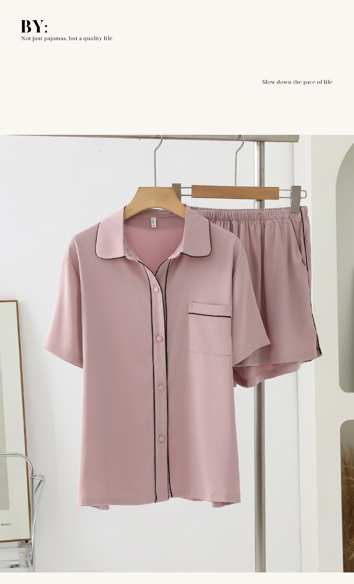 Pijama de Seda de Hielo Nuevo de Verano para Mujer de Manga Corta y Pantalones Cortos, Conjunto de Dos Piezas, Moda de Lujo Ligero de Alta Gama, Ropa de Casa Delgada que se Puede Usar Afuera